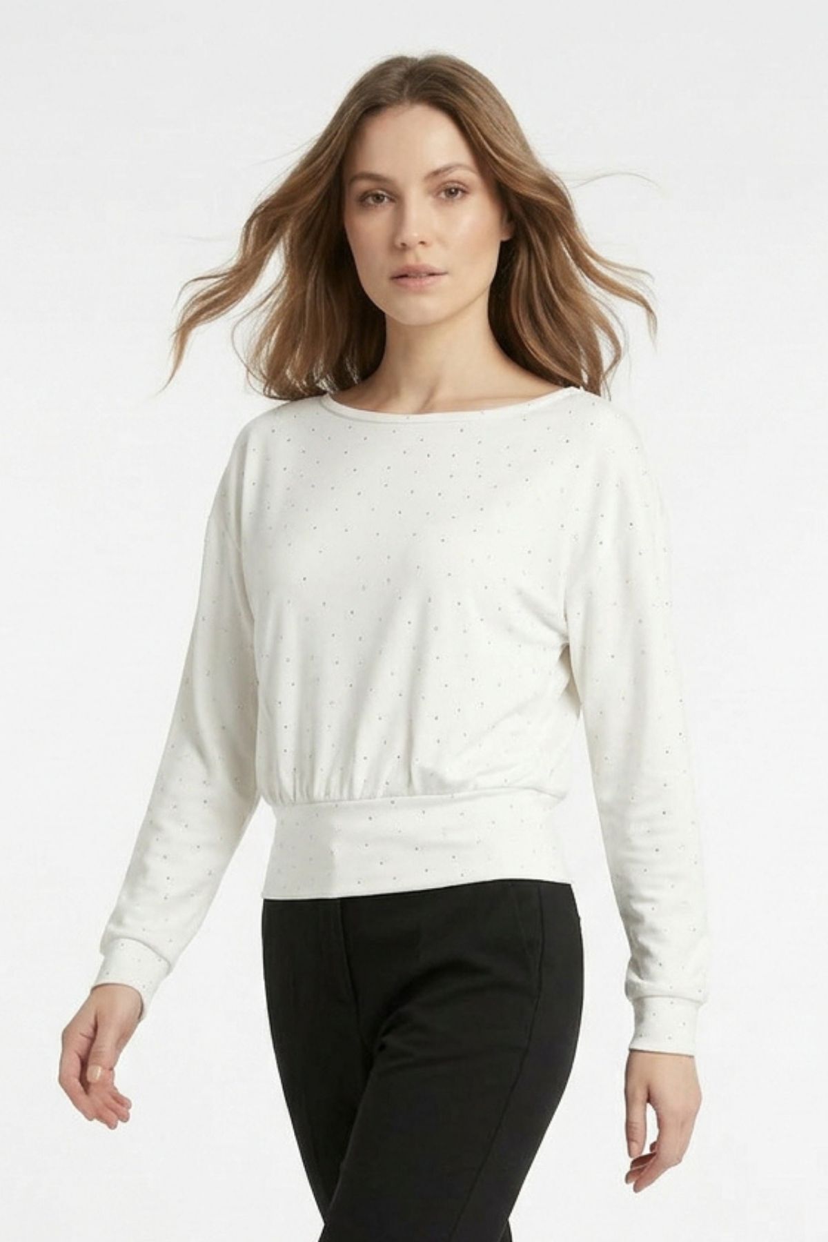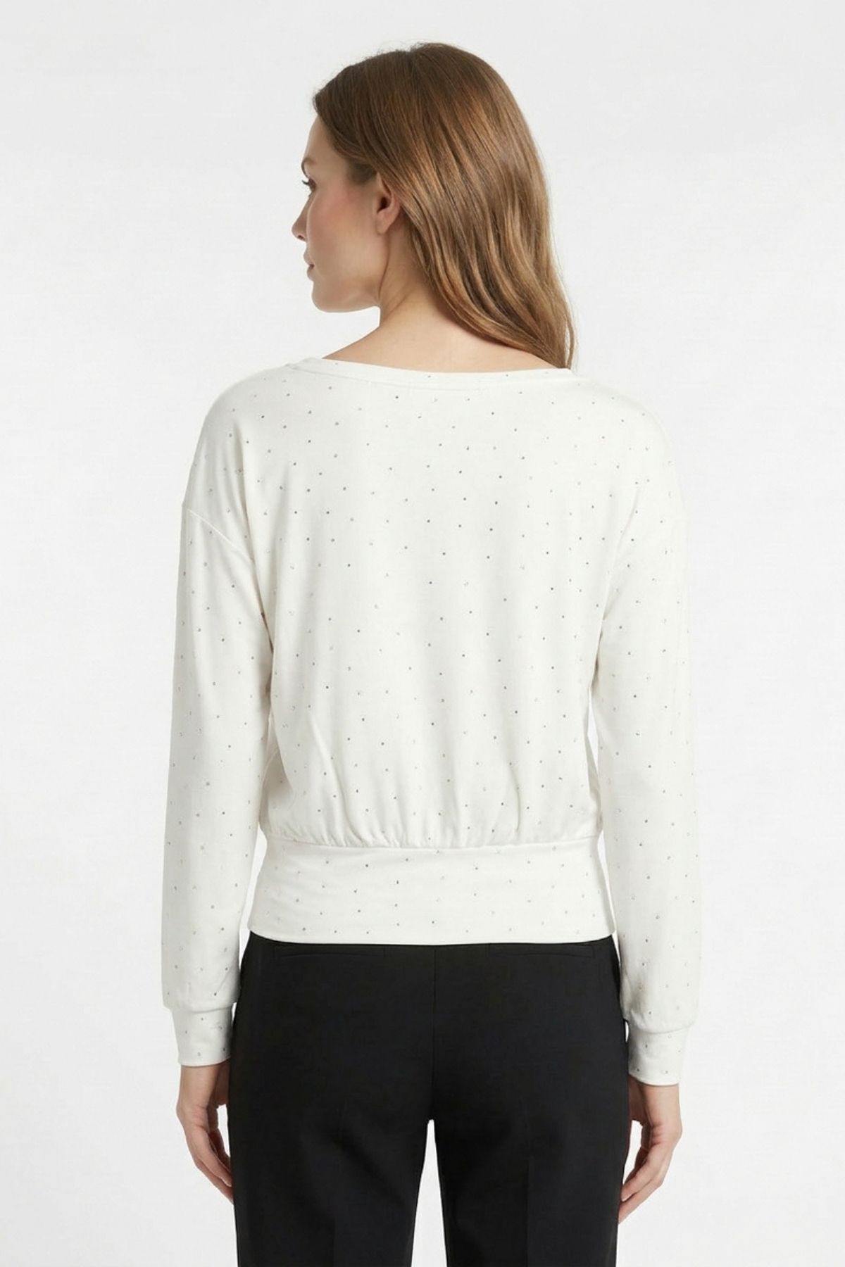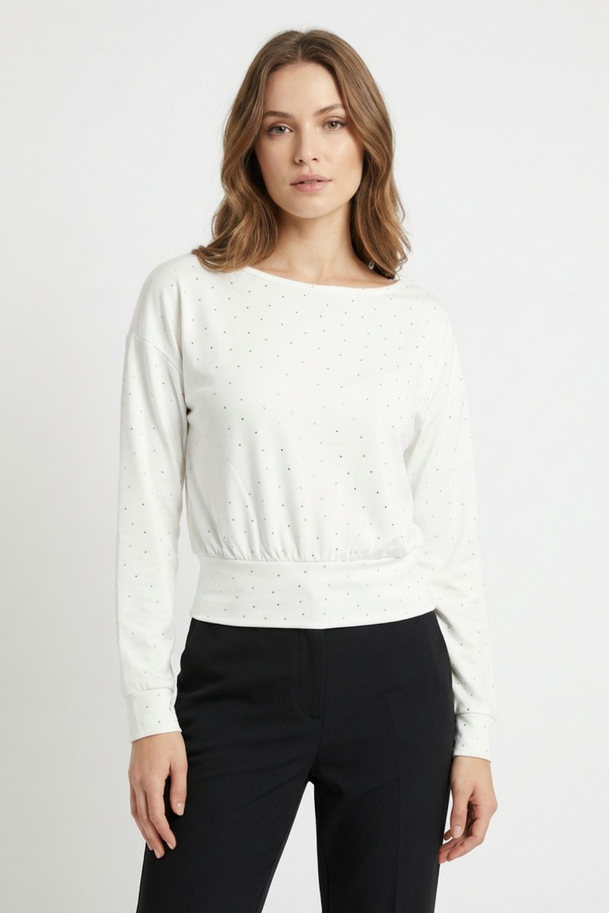 8364 Kayık Yaka Taş Detaylı Bluz