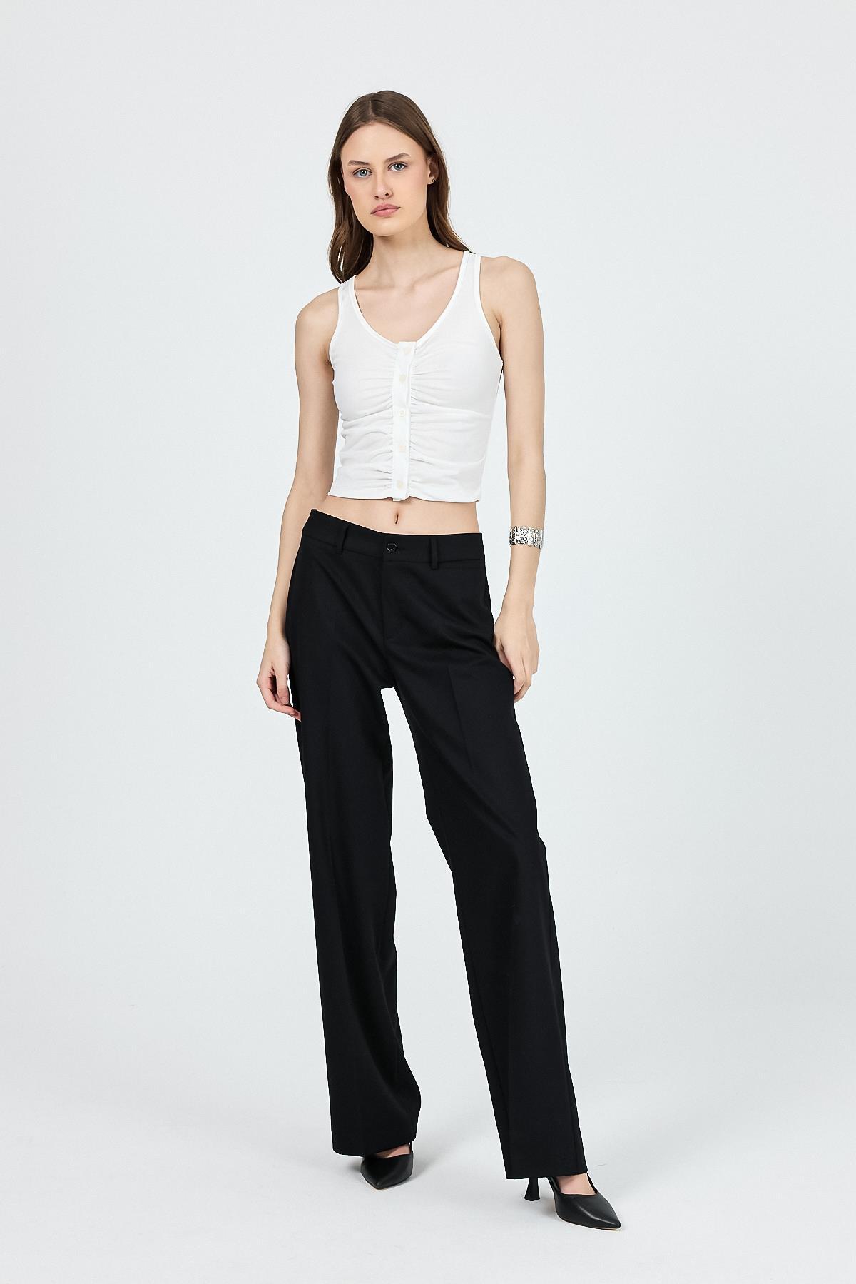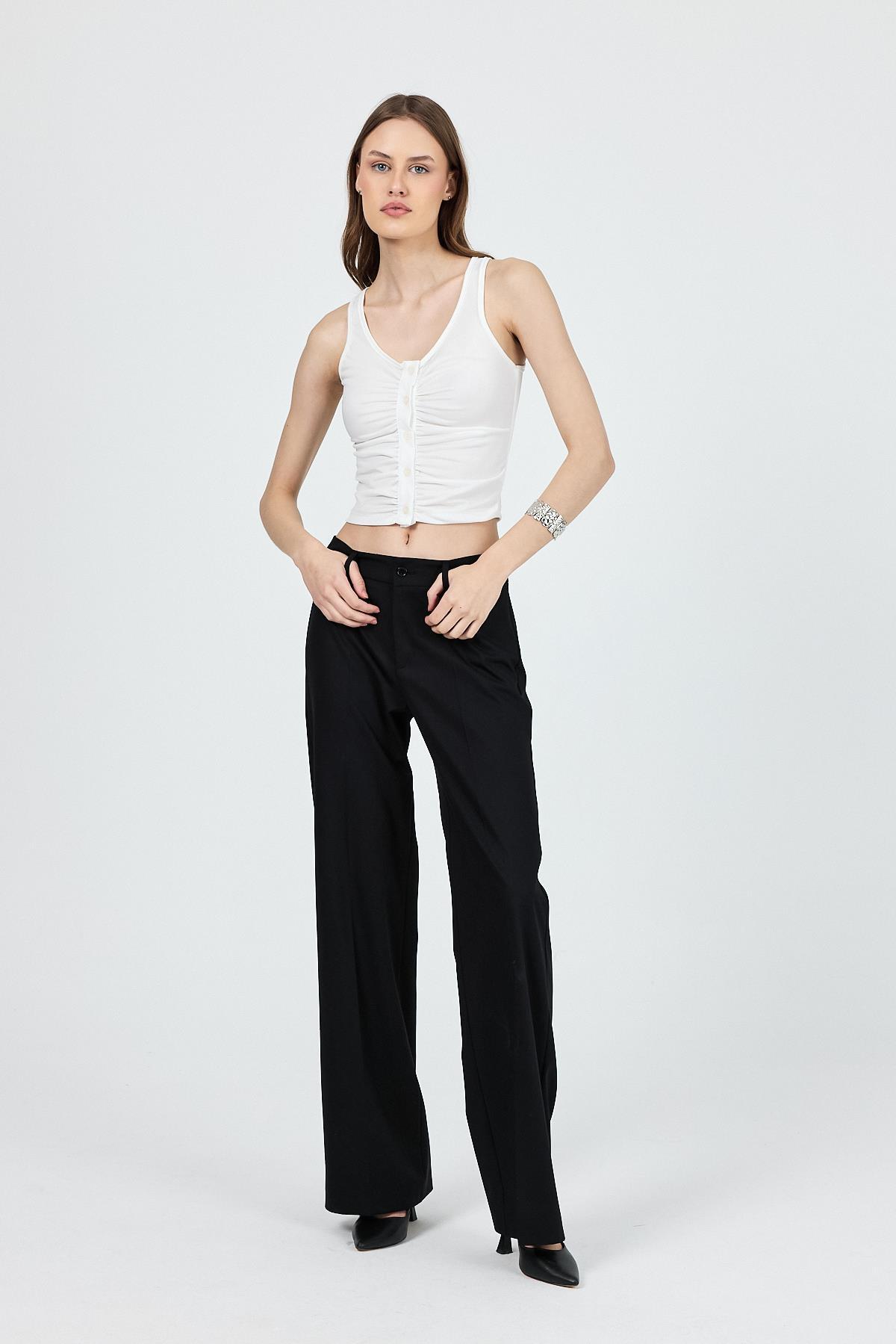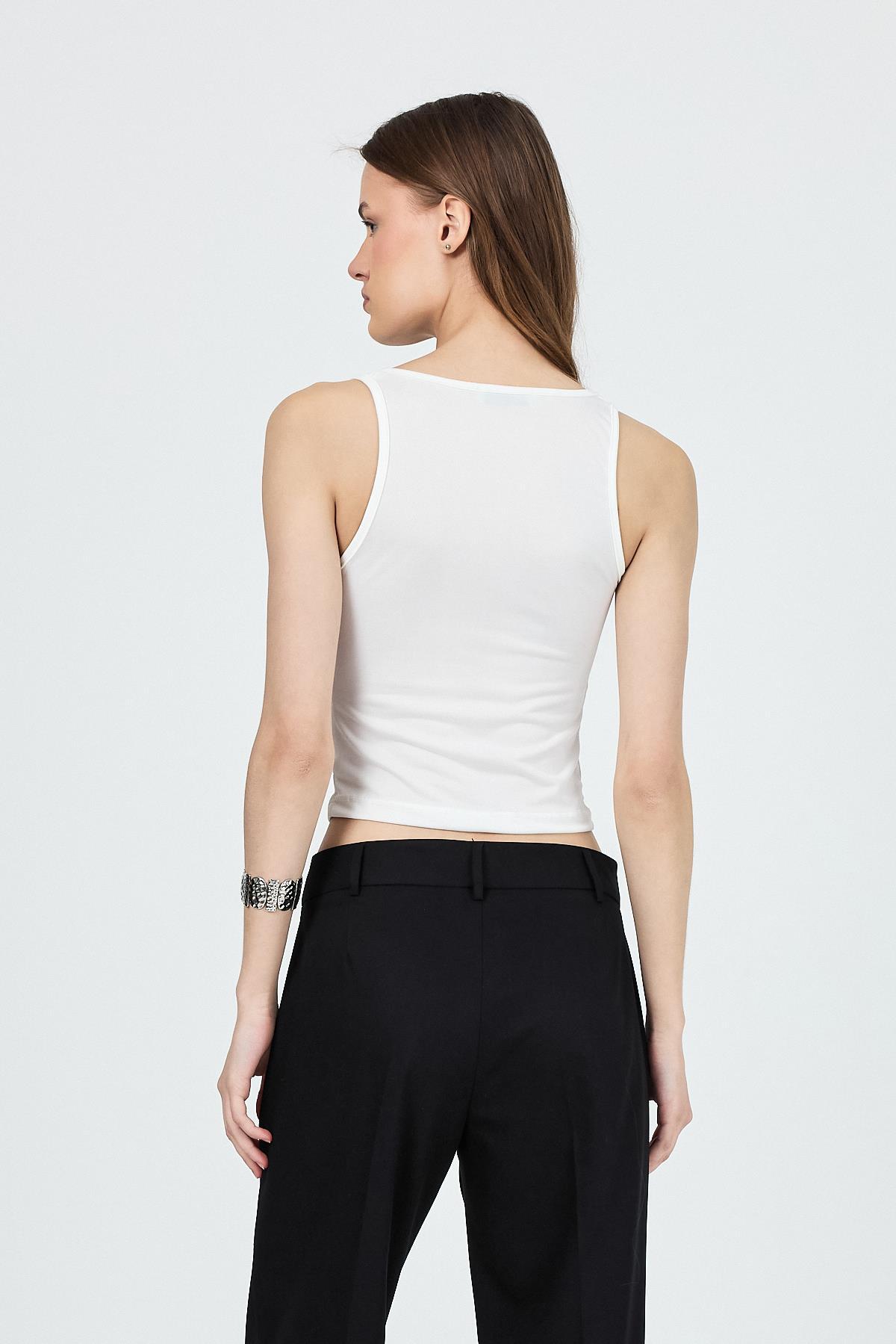 Ekru U Yaka Büzgülü Düğmeli Atlet 13298