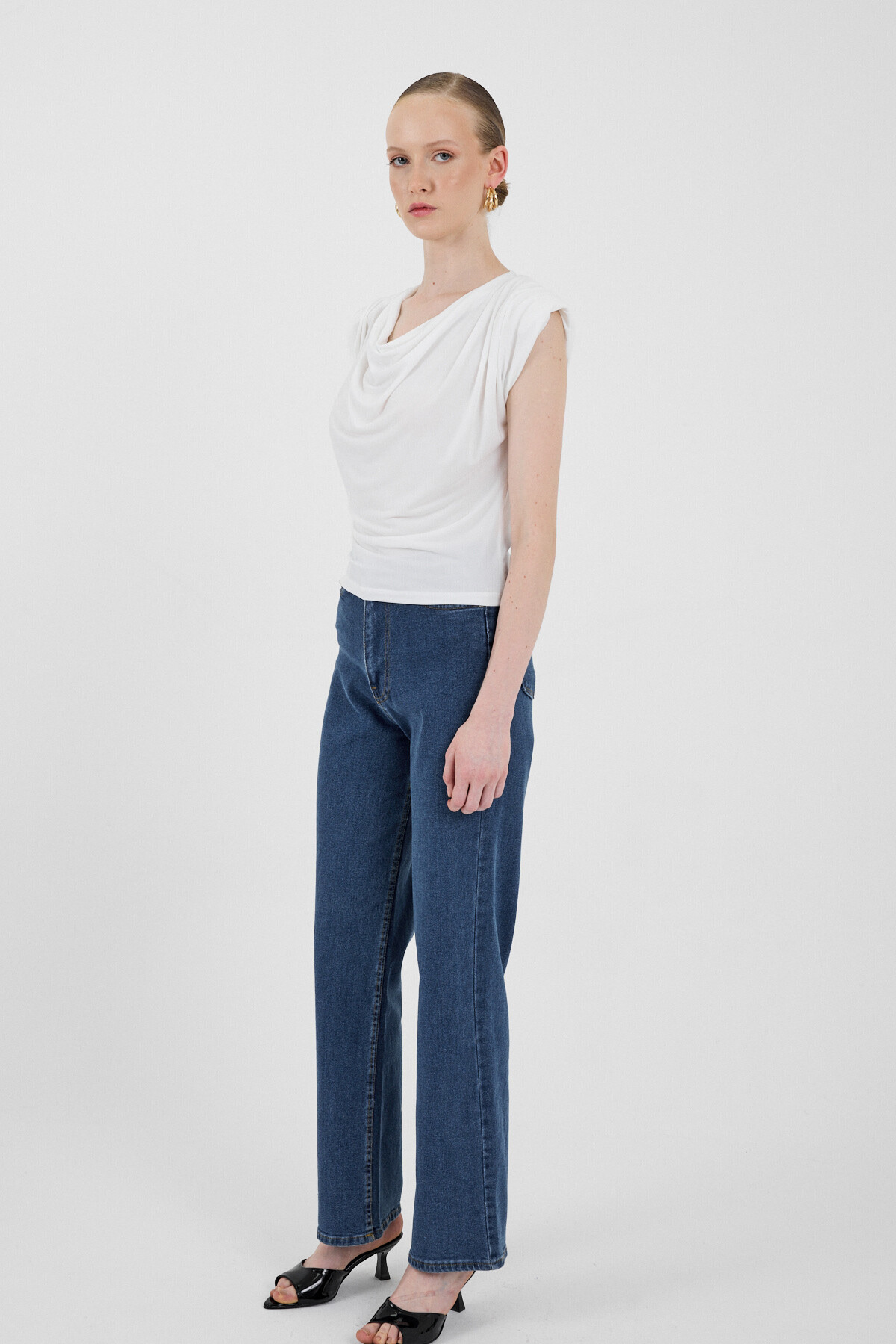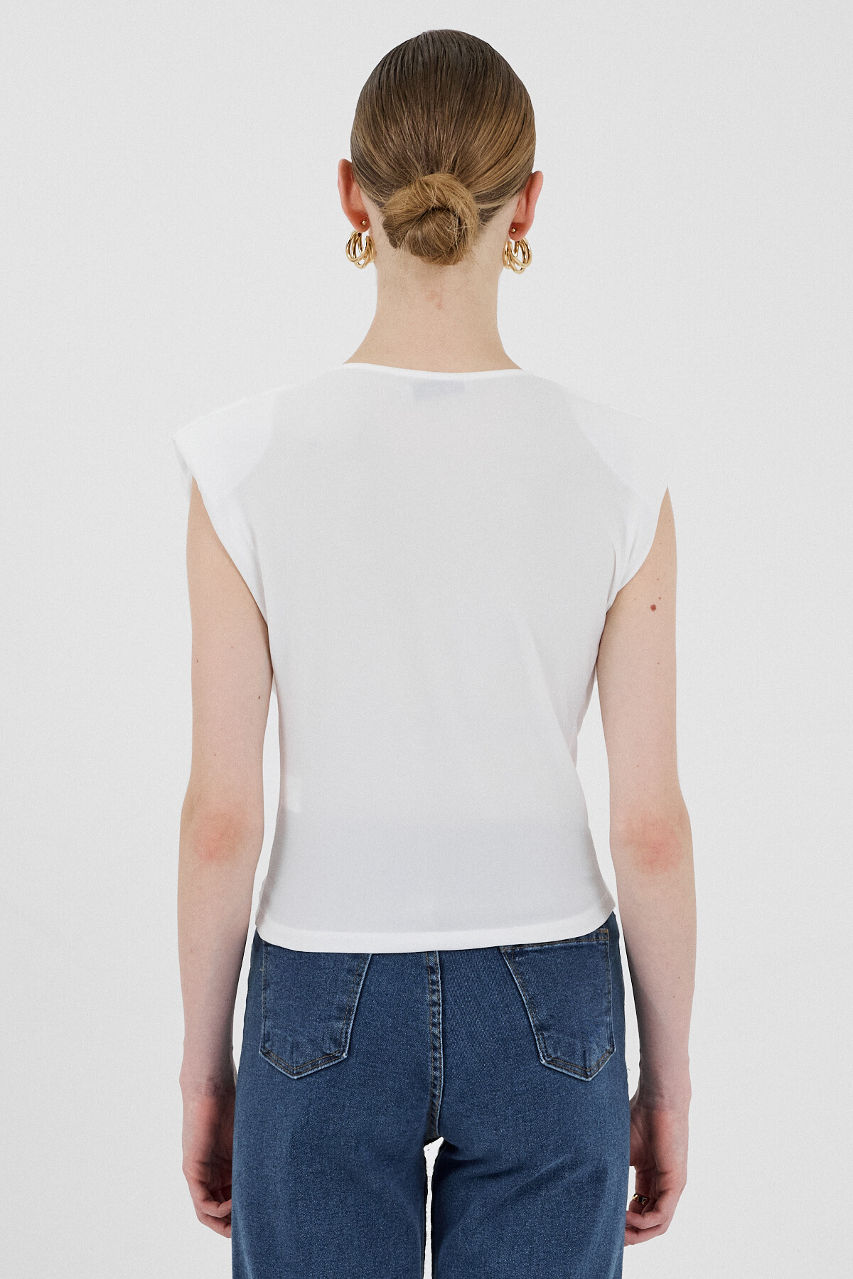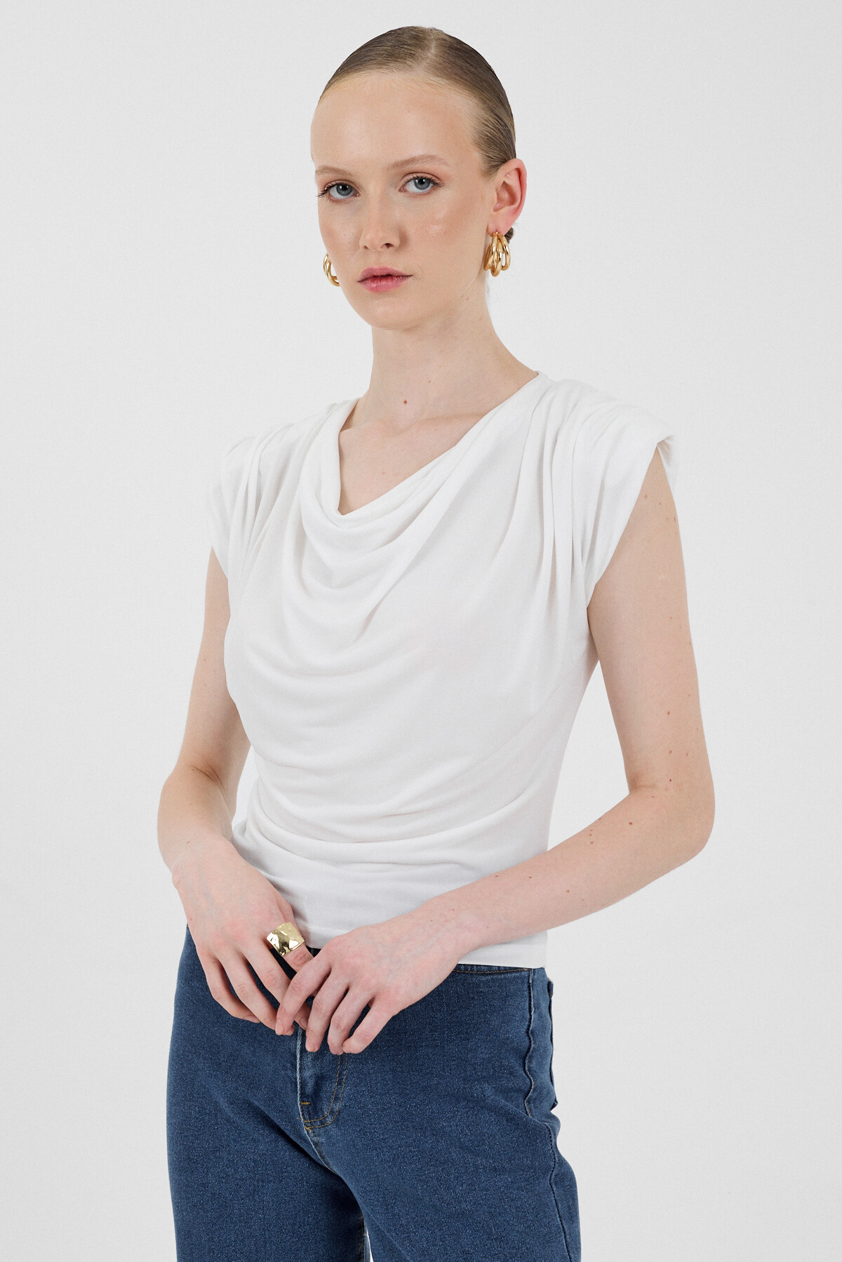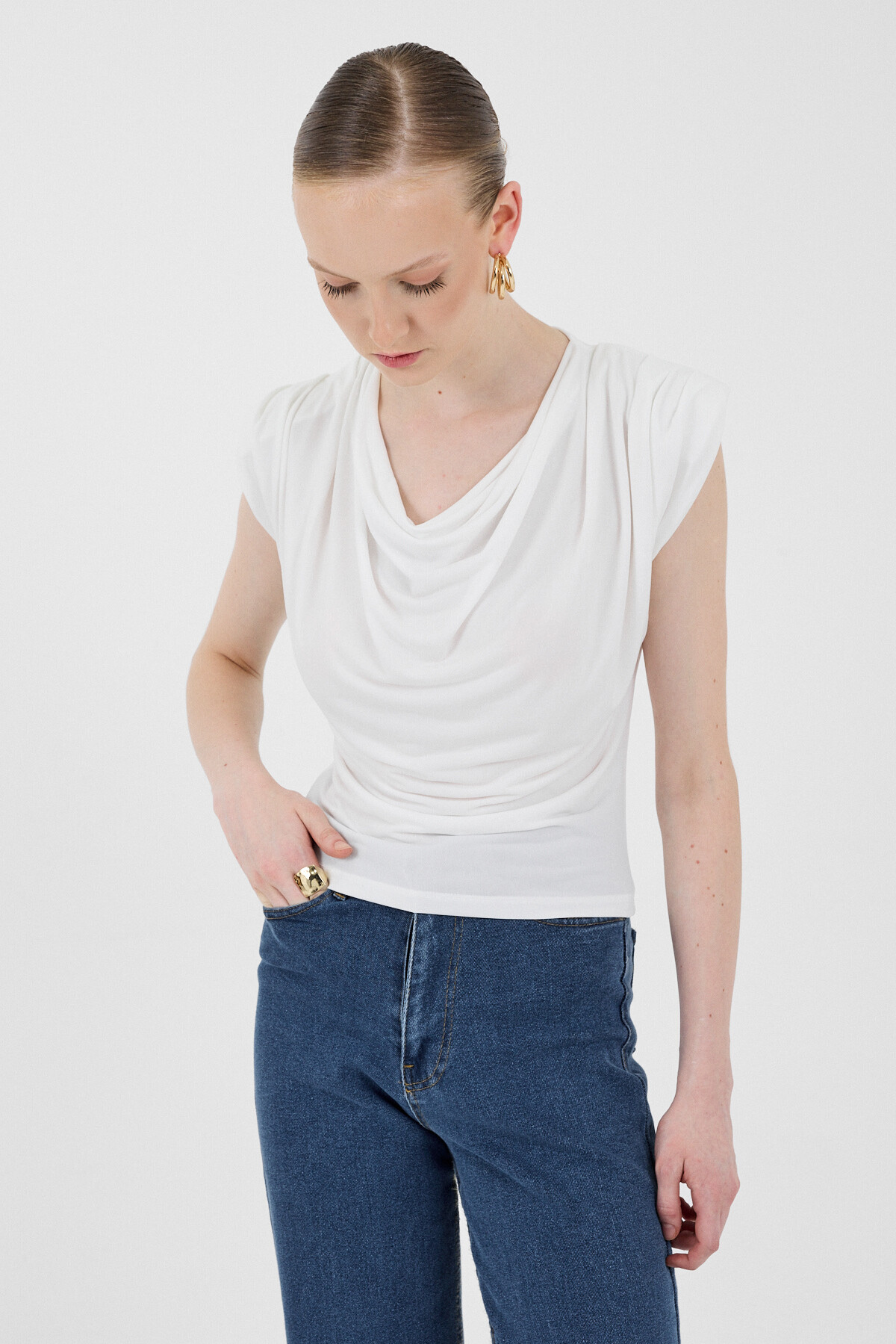 Ekru Vatkalı Degaje Yaka Bluz 2509