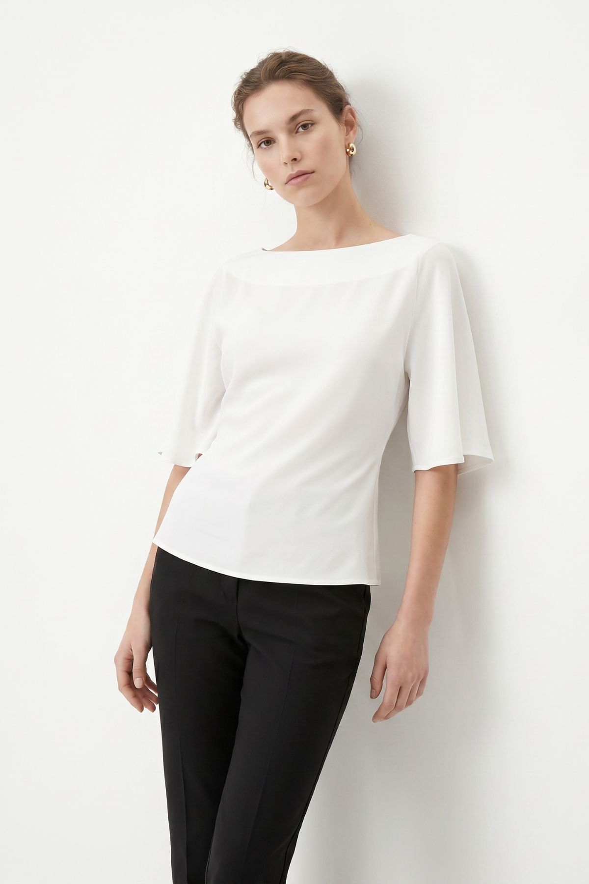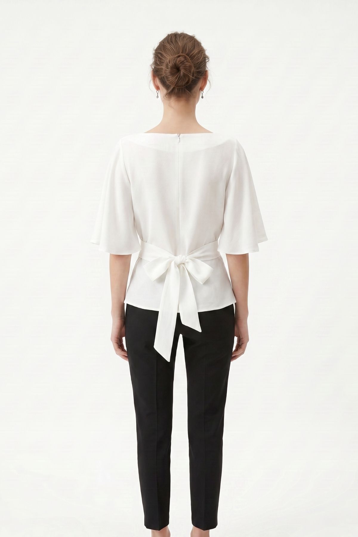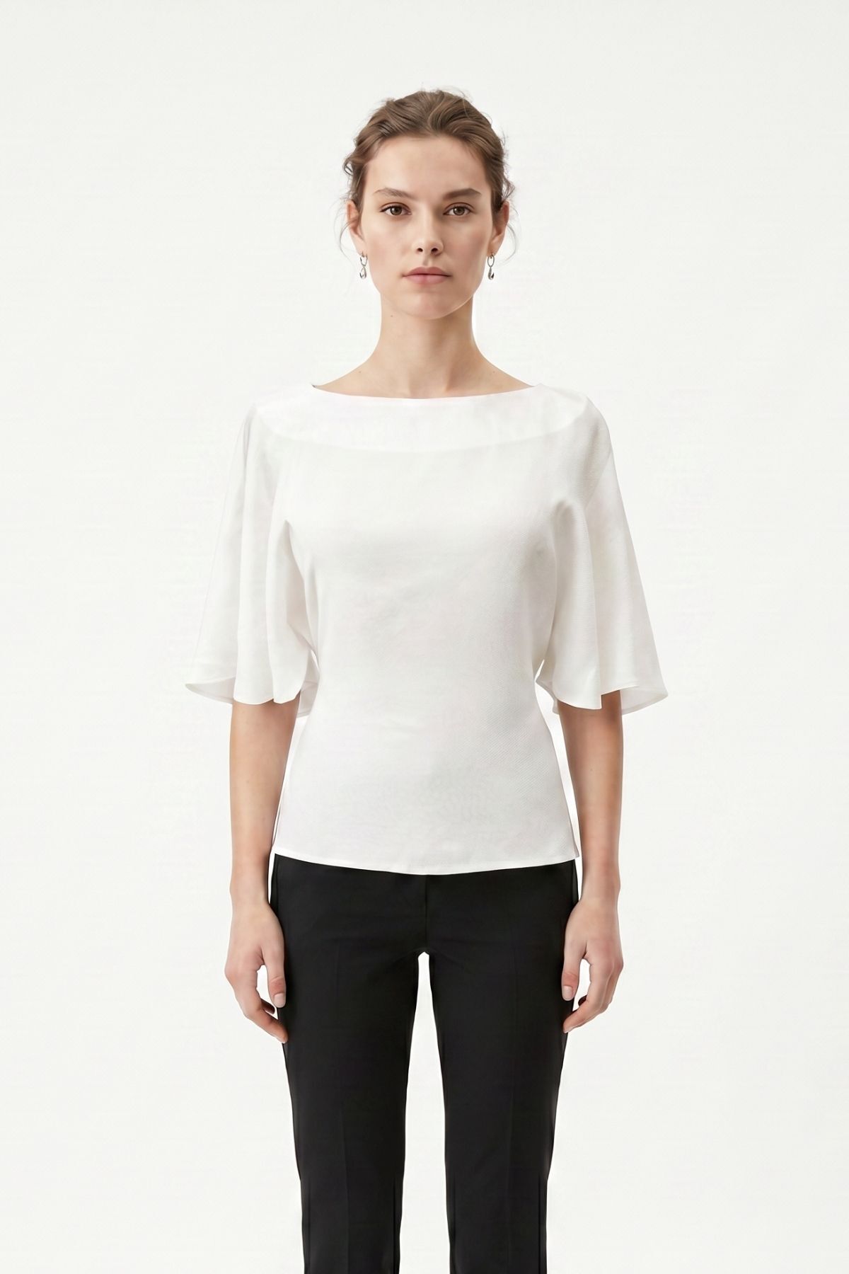 Ekru Volan Kollu Sırt Bağlamalı Bluz 261128