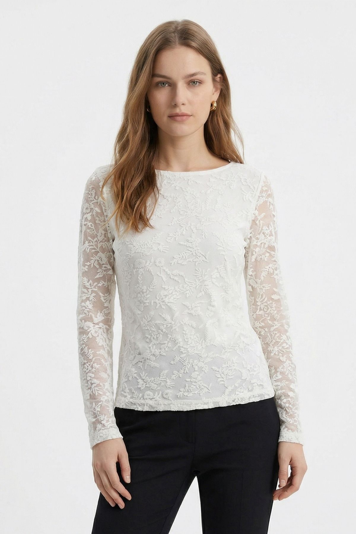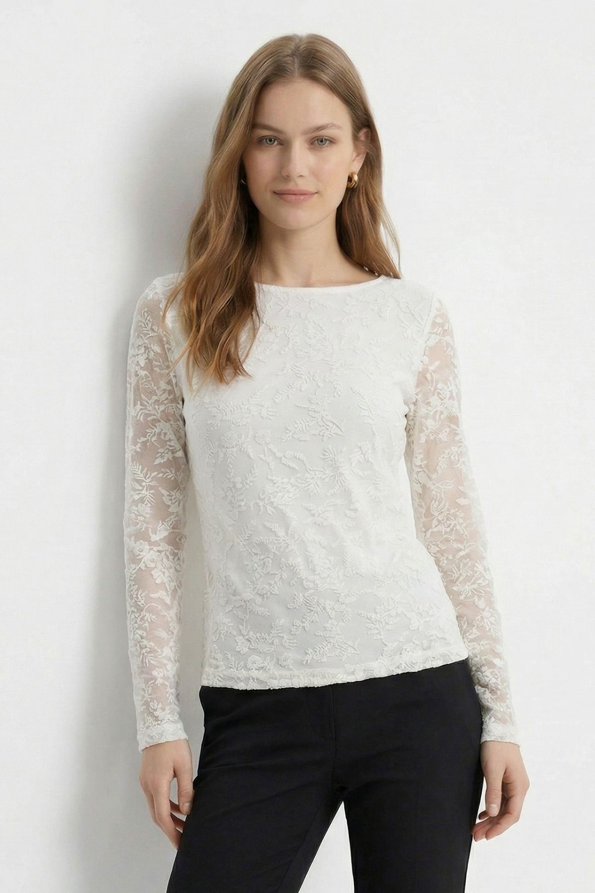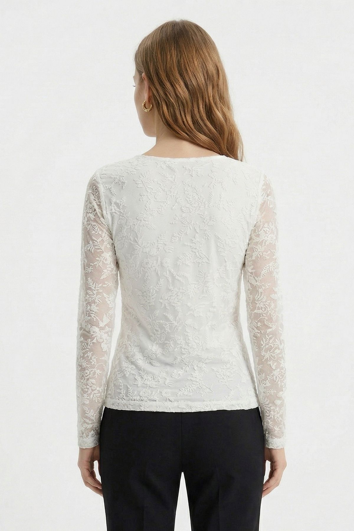 Ekru Yandan Büzgülü Desenli Bluz 8476A