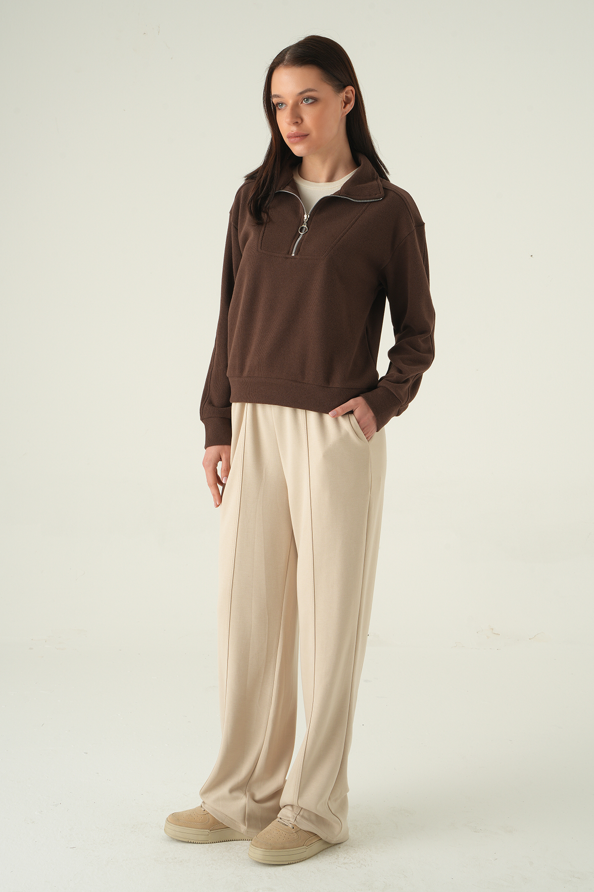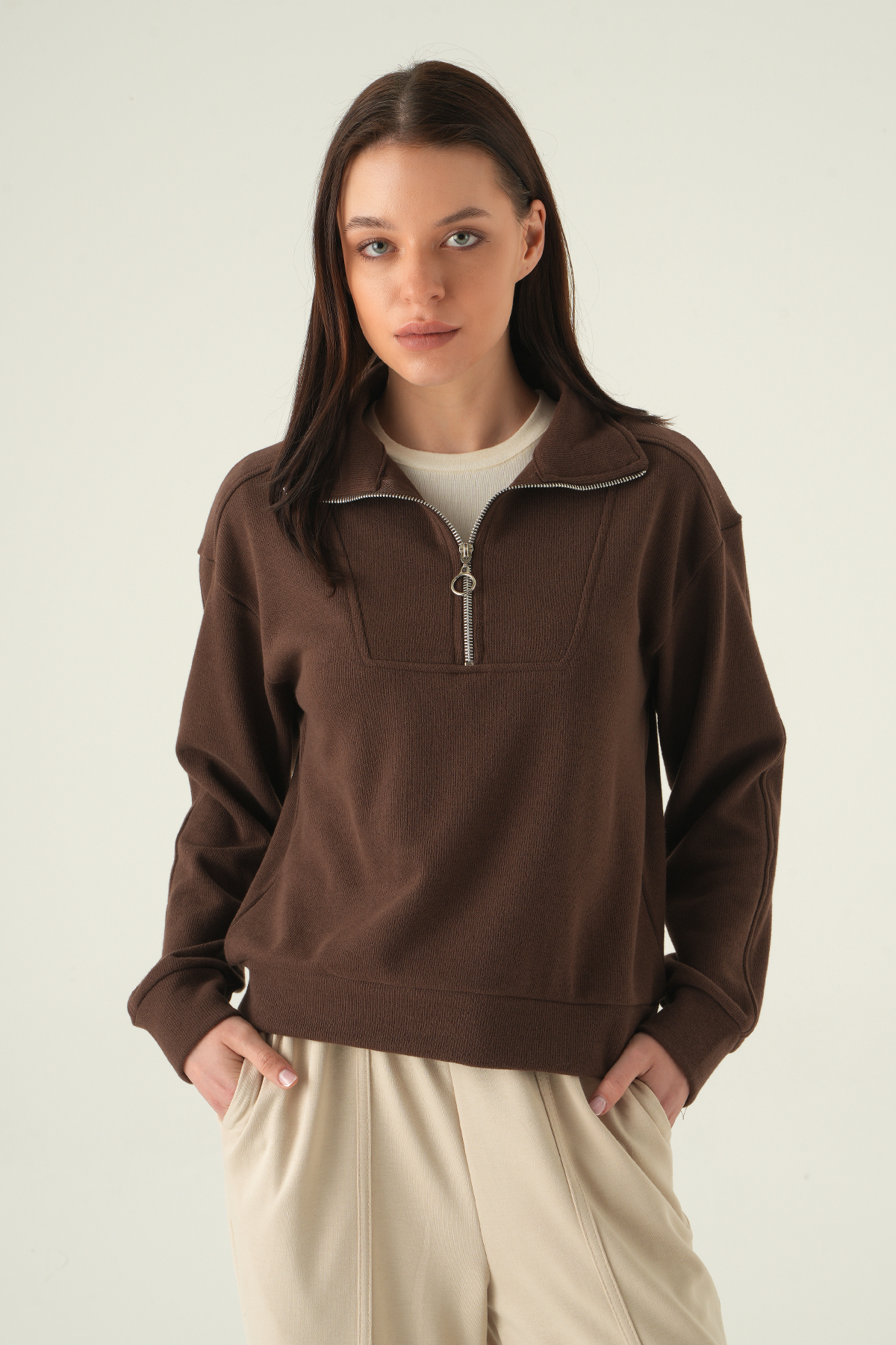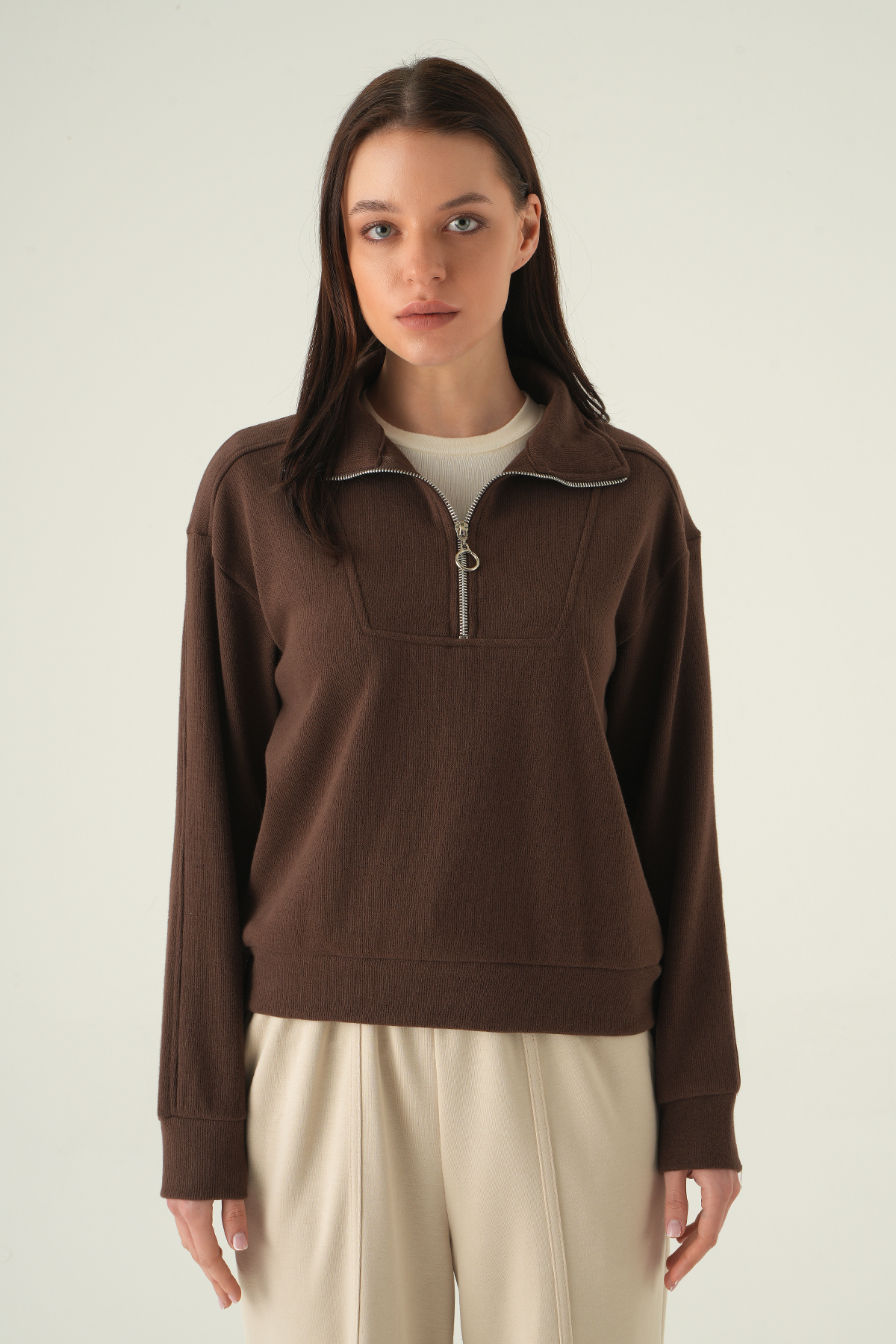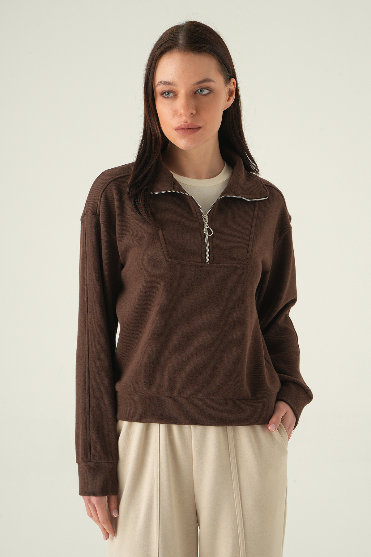 Fermuar Detay Kazak Kahve 3065A