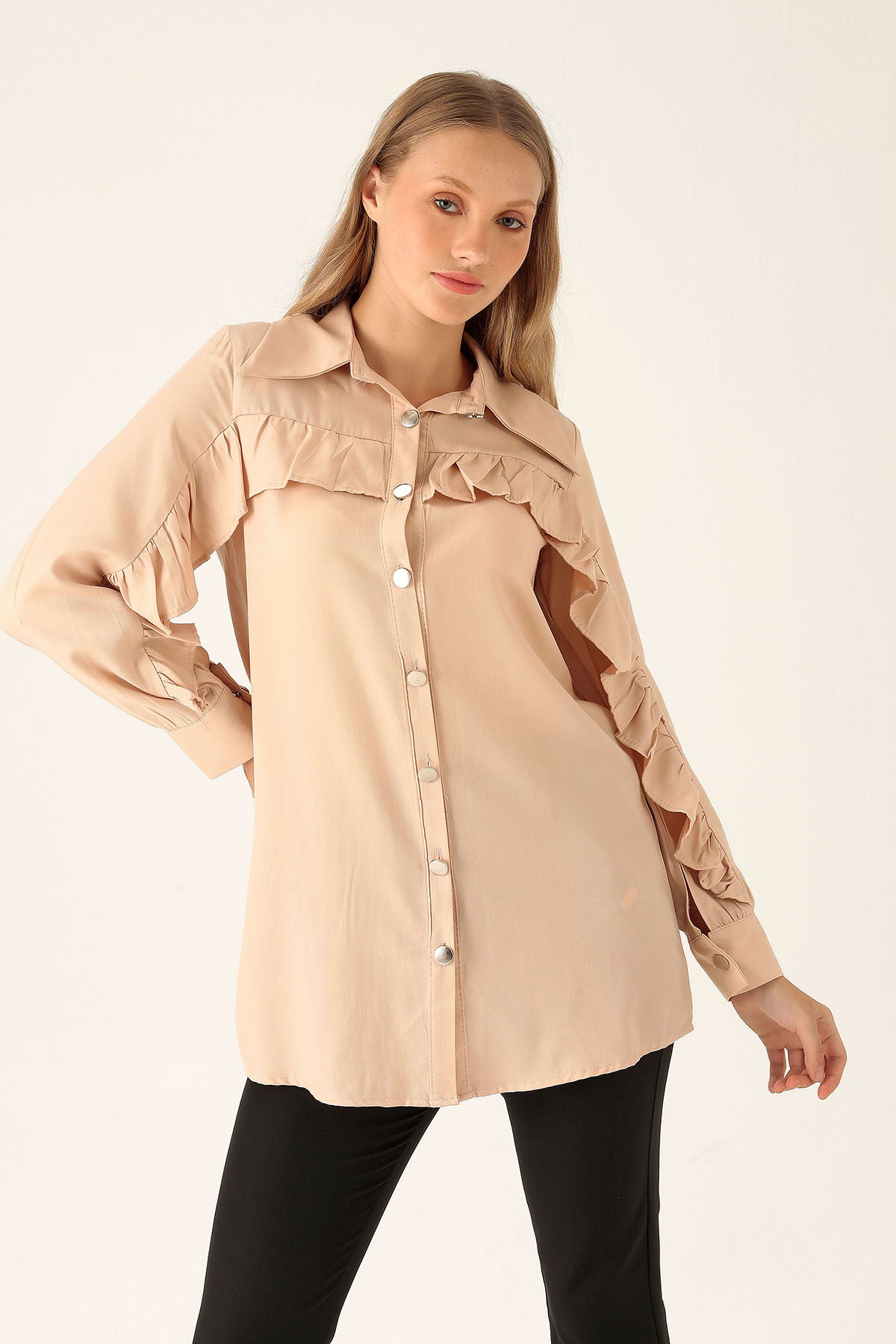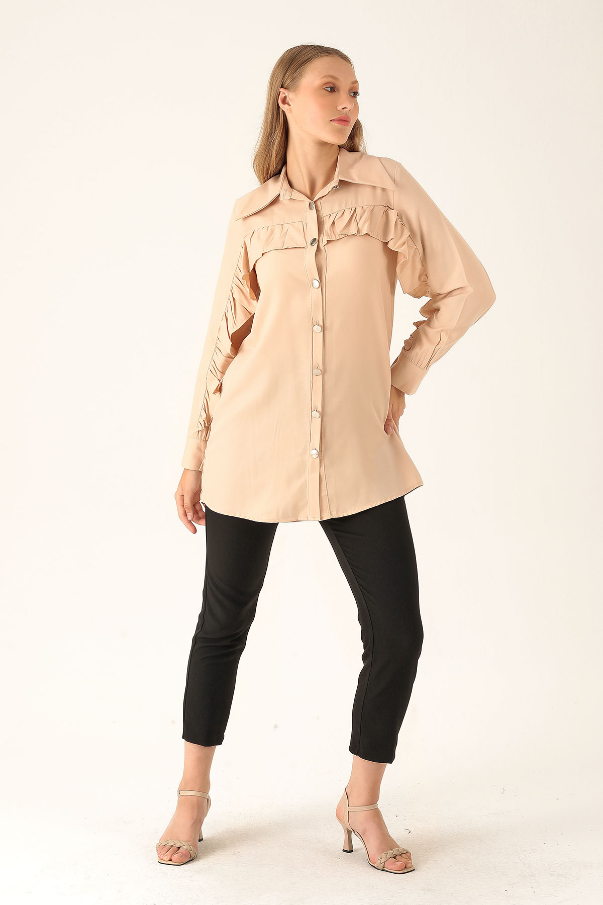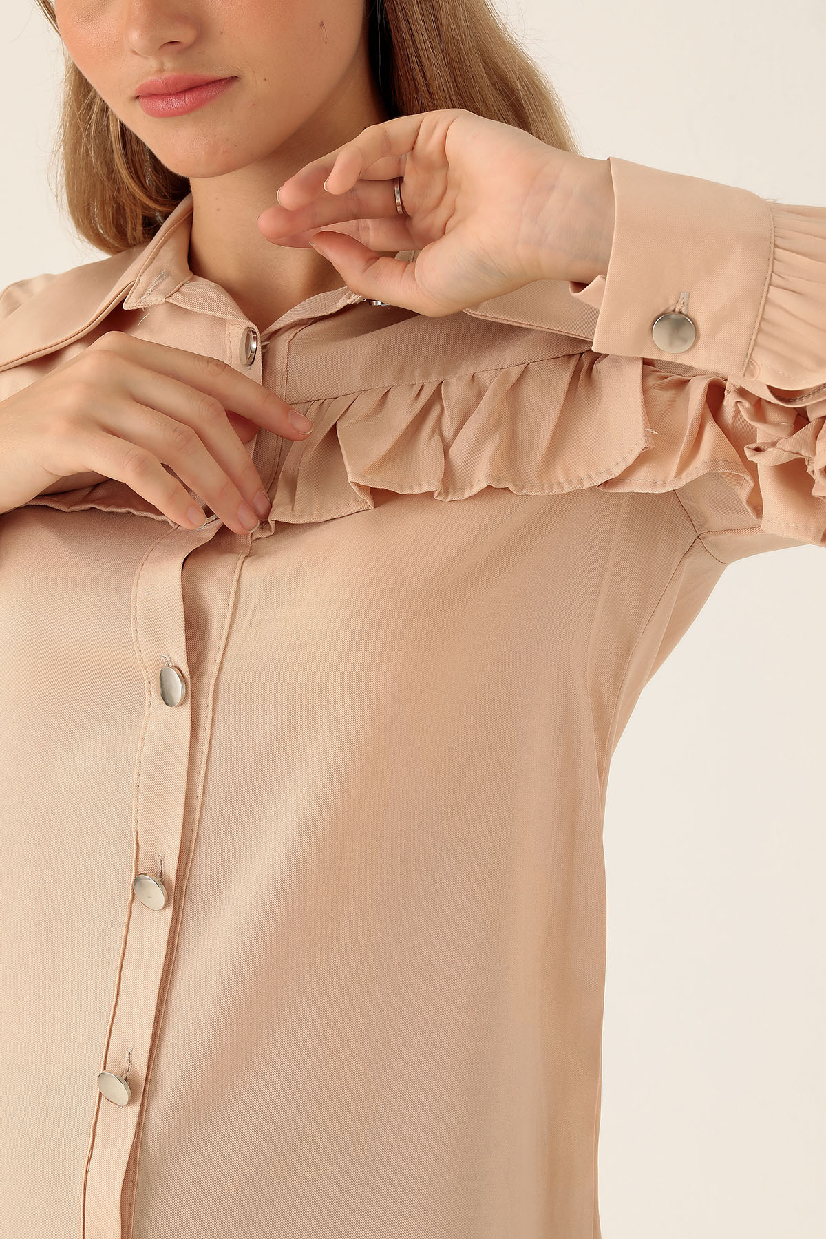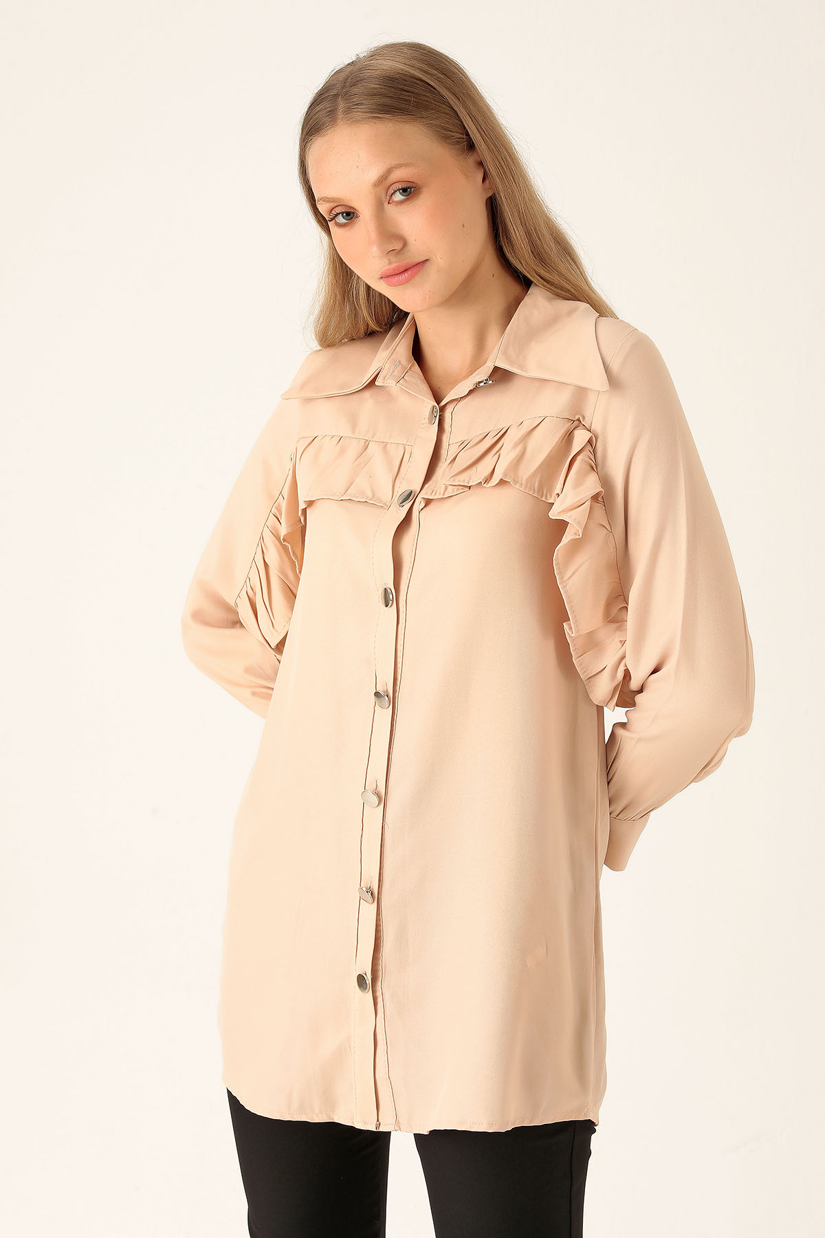 Fırfır Detay Bayan Gömlek - 6731A Bej
