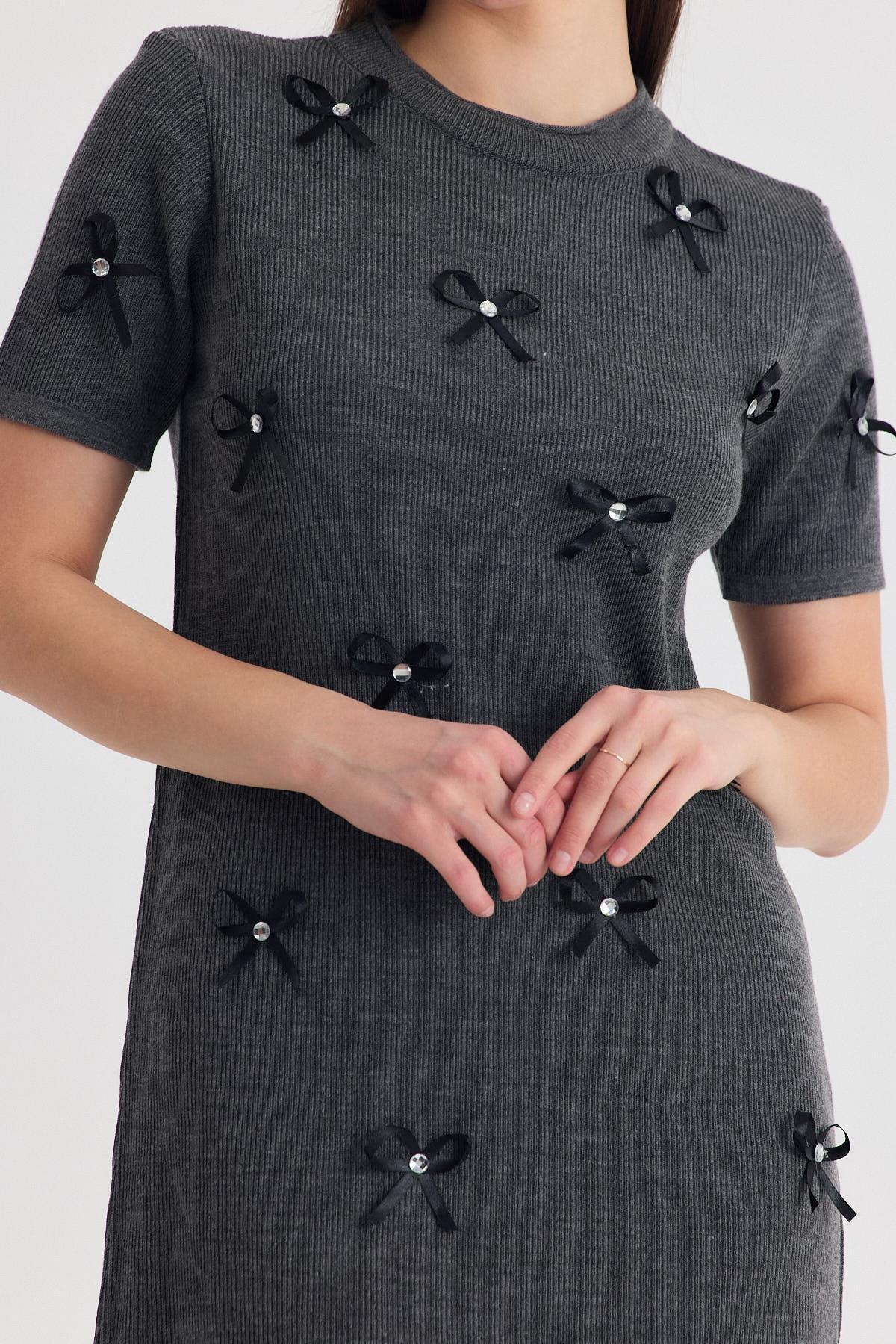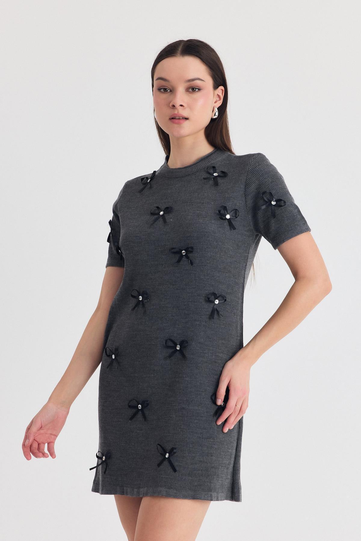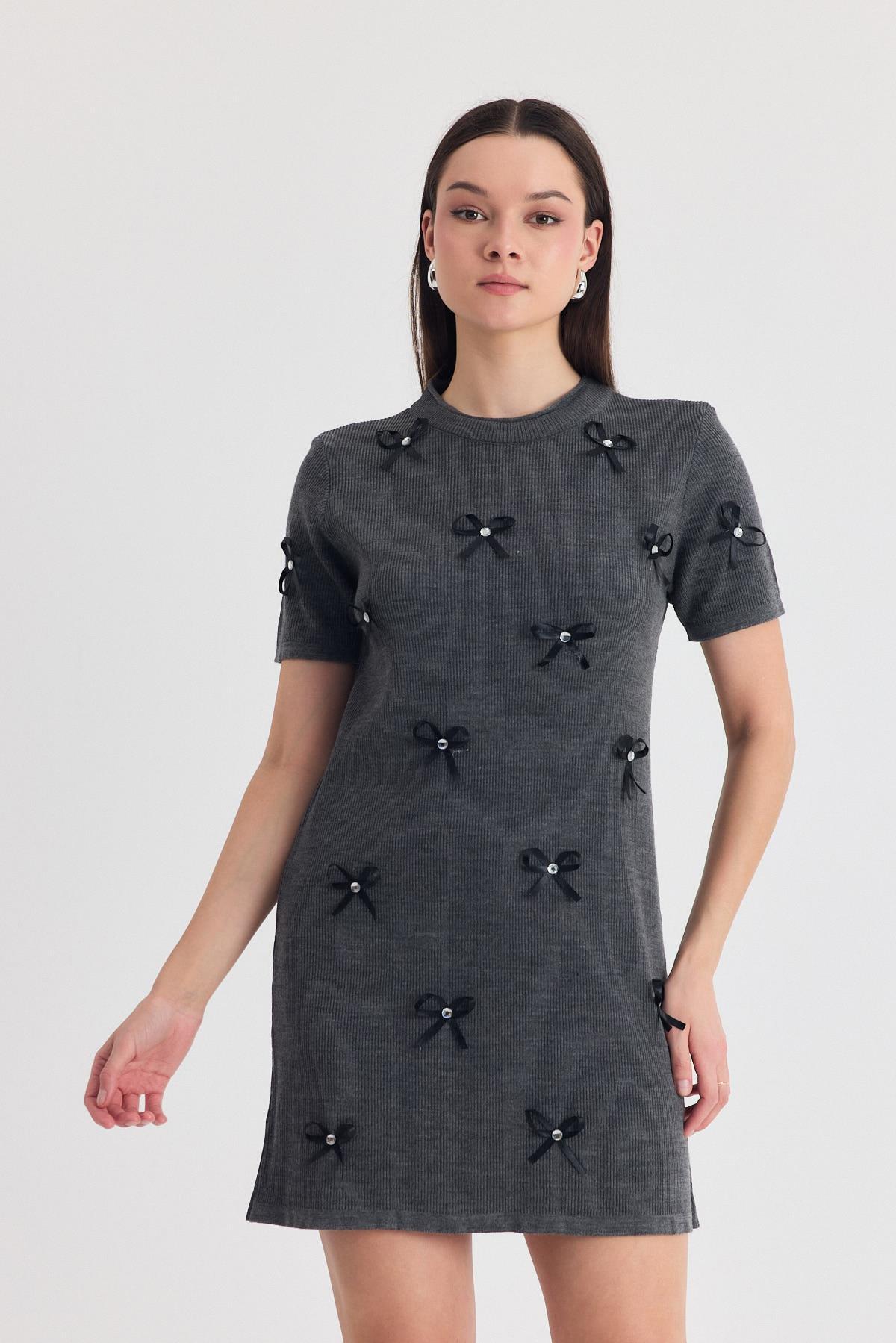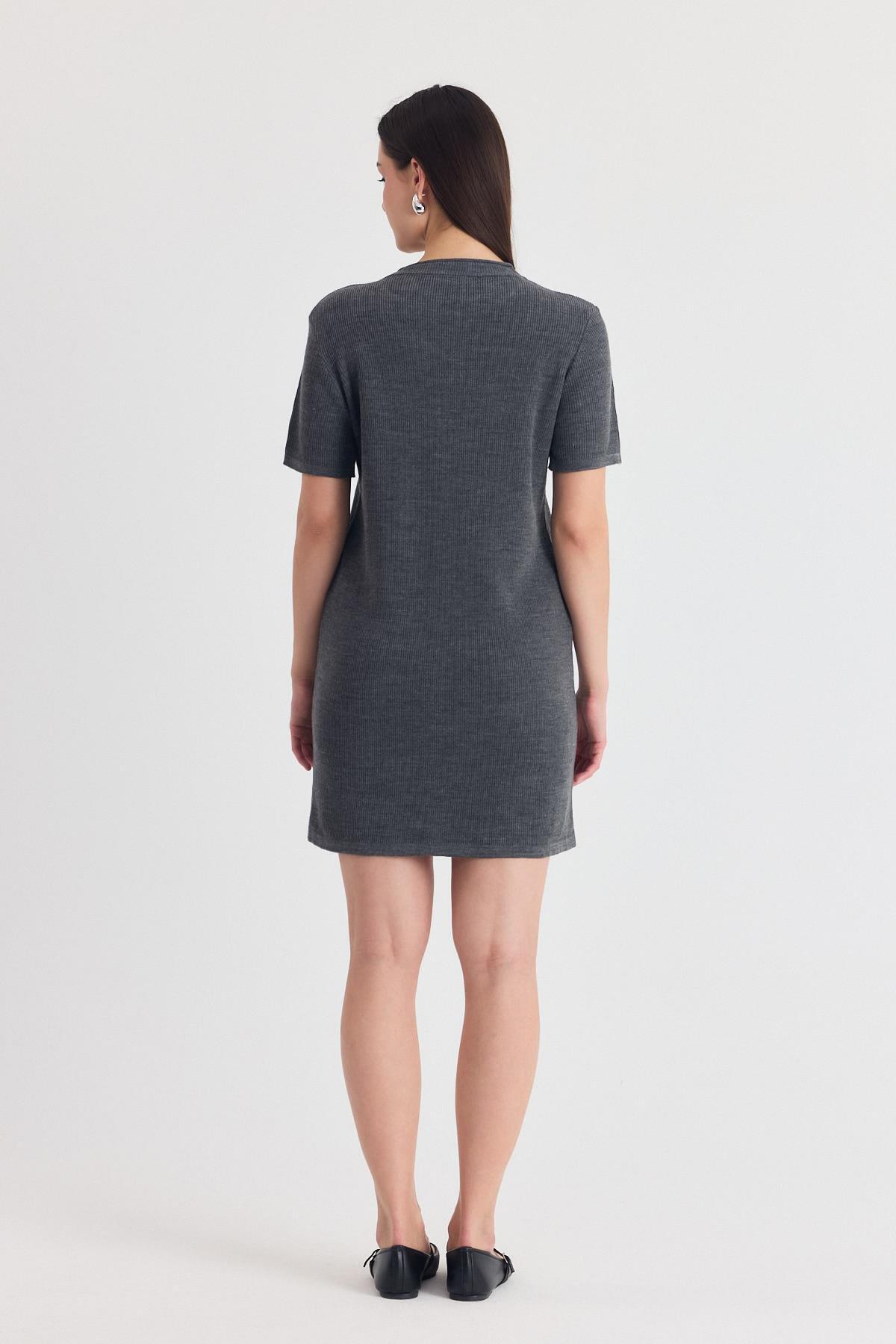 24171 U Yaka Kısa Kol Triko Elbise Taş - RAYS