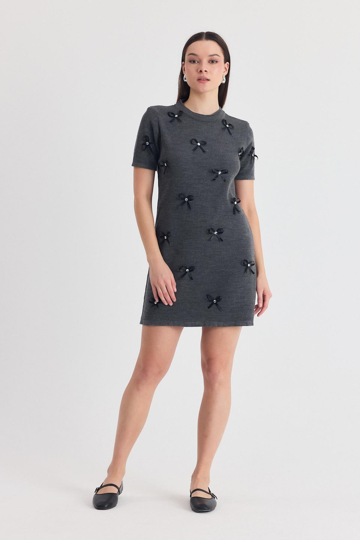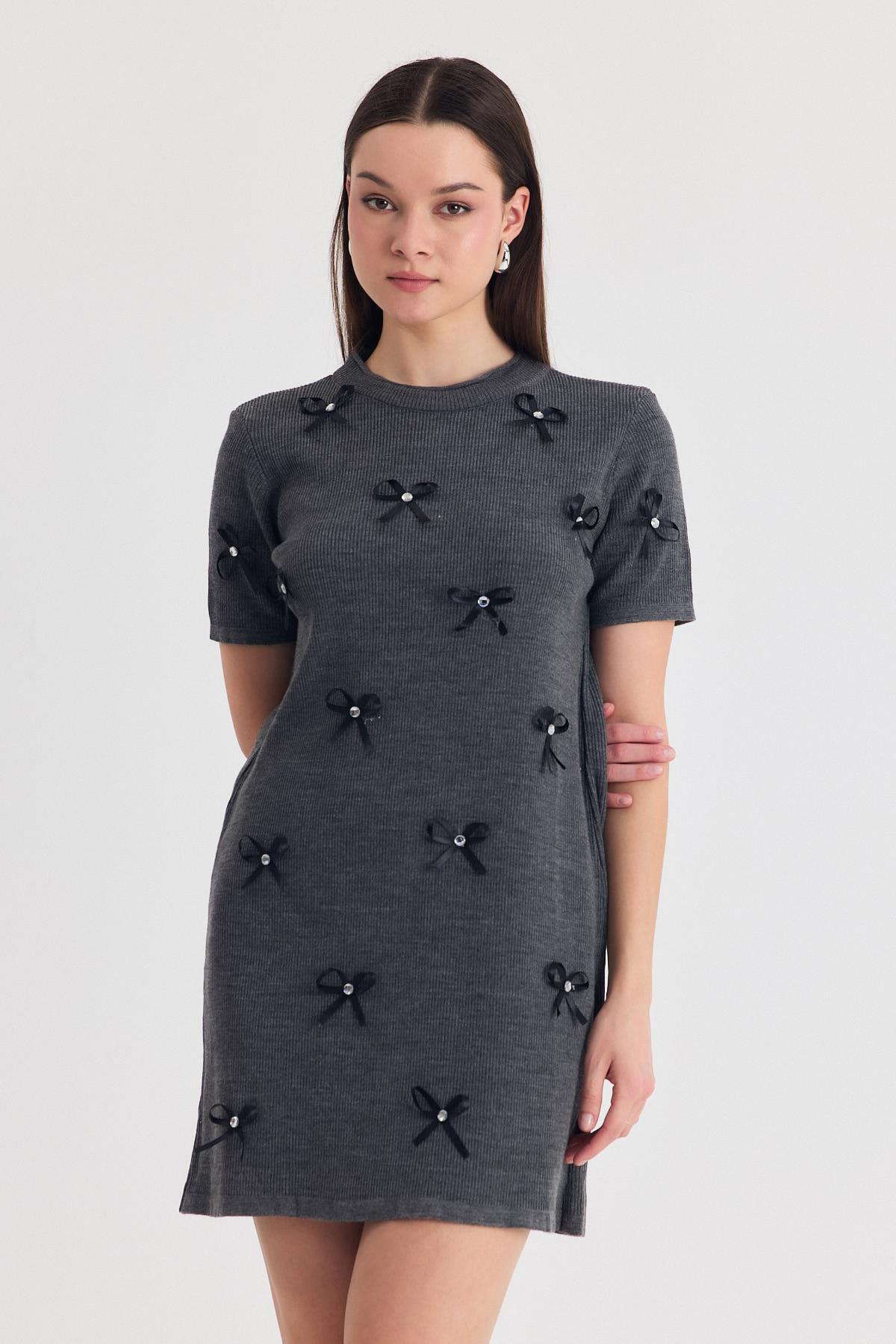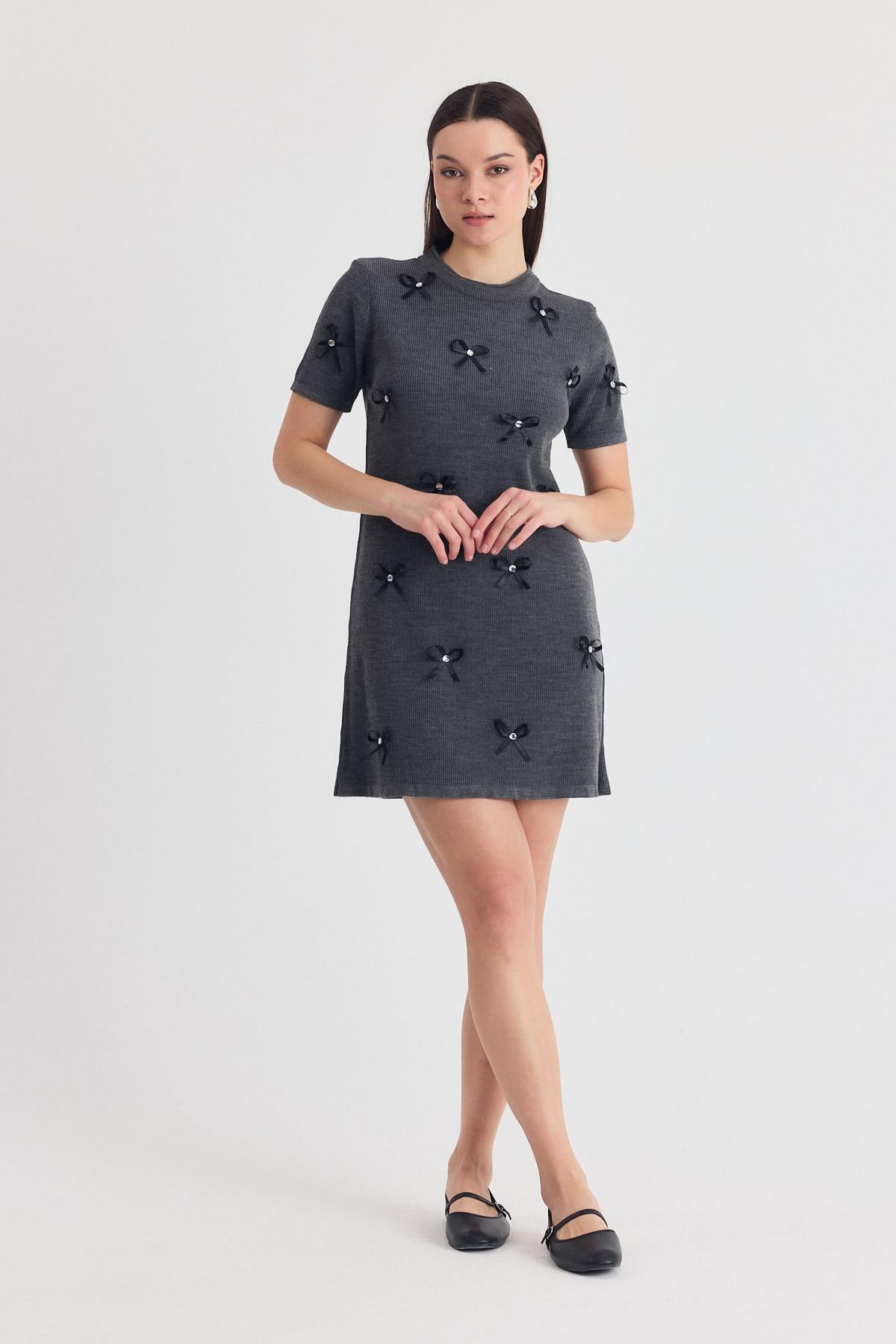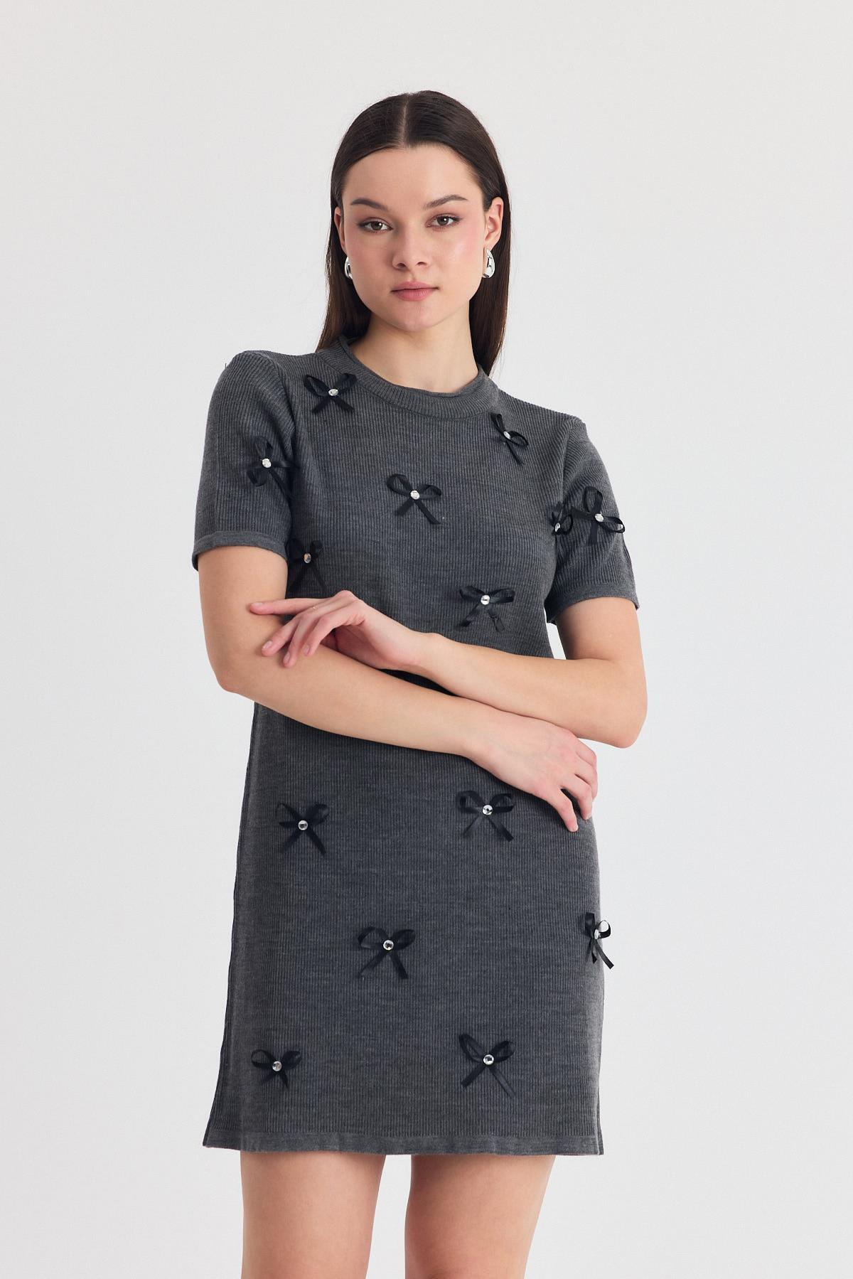 24171 U Yaka Kısa Kol Triko Elbise Taş - RAYS