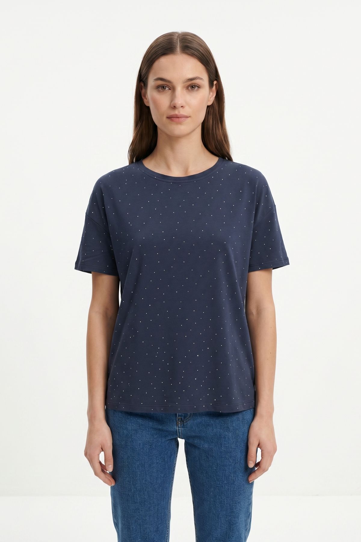 1762 Taşlı Bisiklet Yaka Tişört