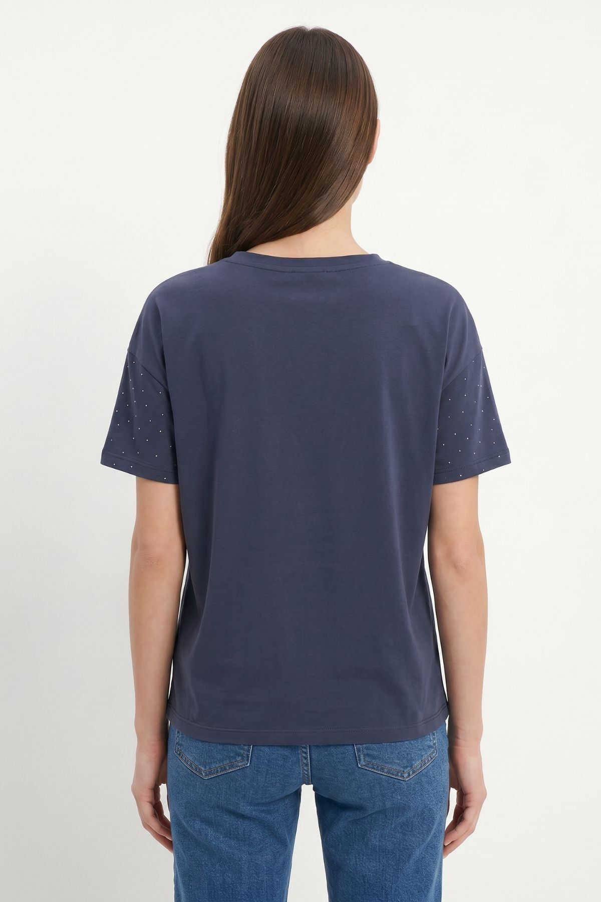 Füme Taşlı Bisiklet Yaka Tişört 1762