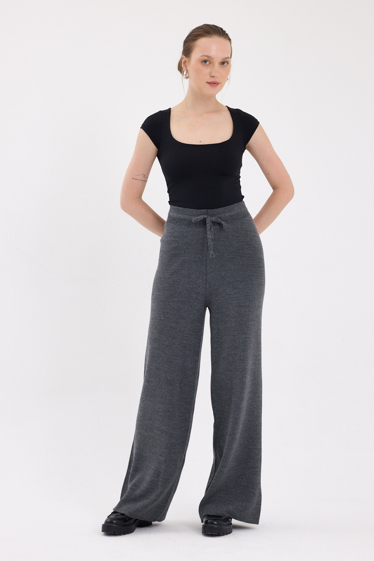 Füme Yüksek Bel Triko Palazzo Kadın Pantolon 2251