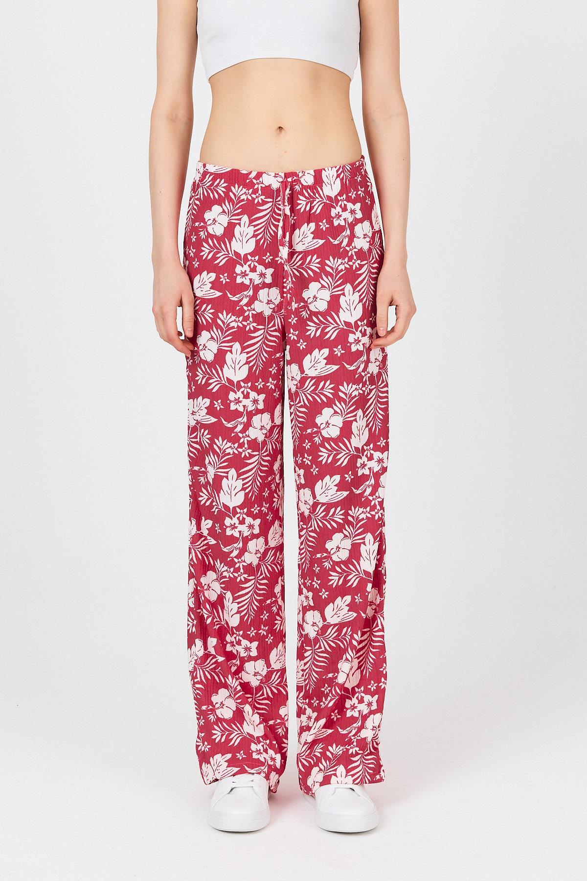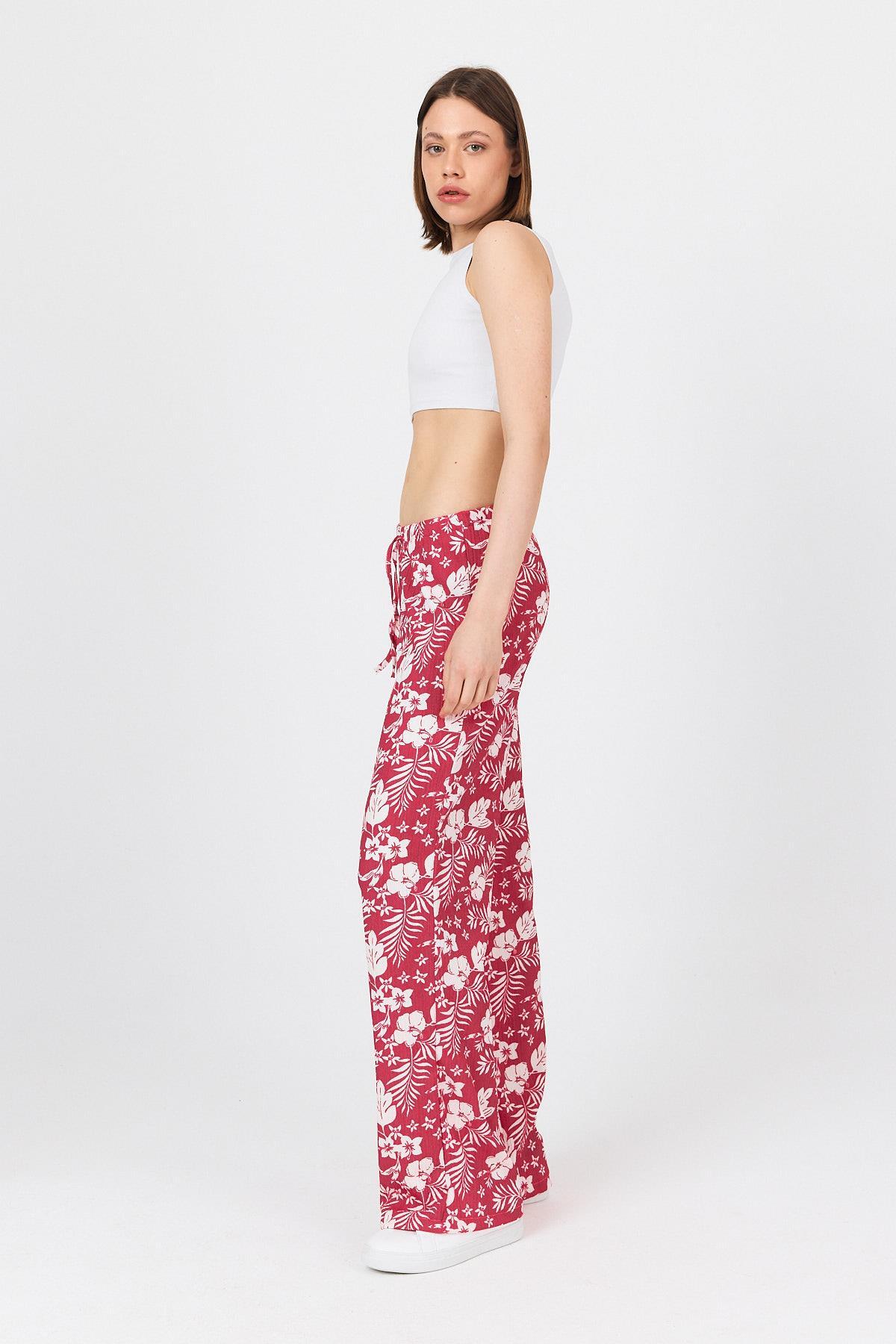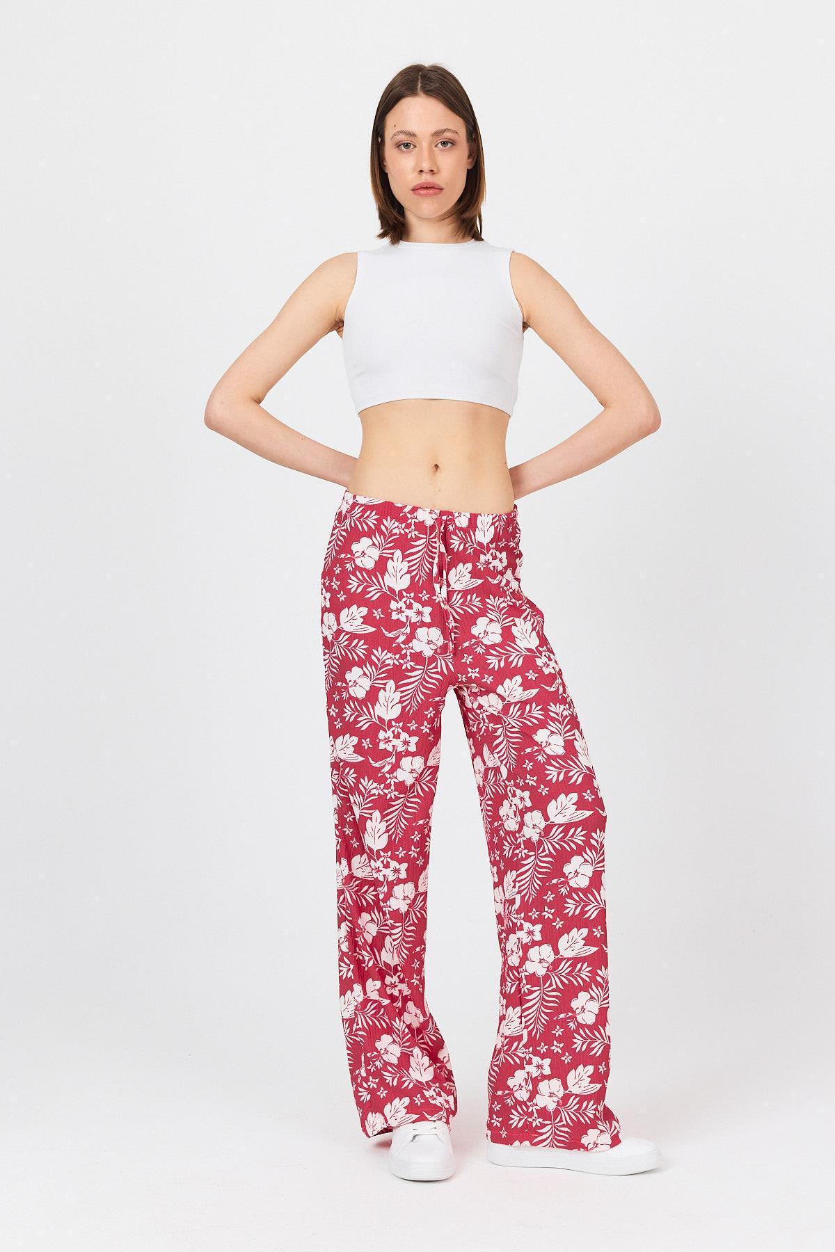 Fuşya Bel Lastikli Desenli Pantolon 4725A
