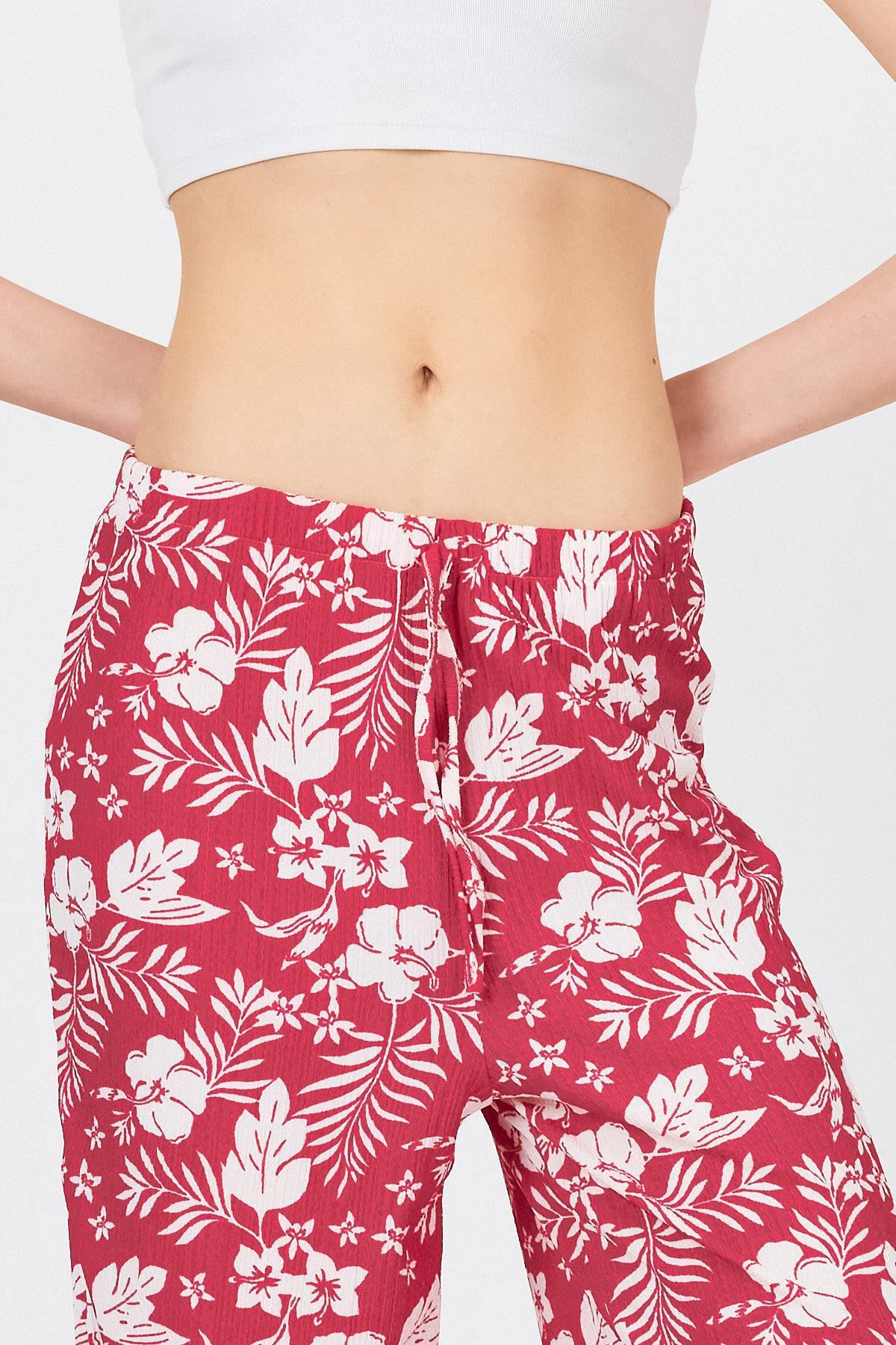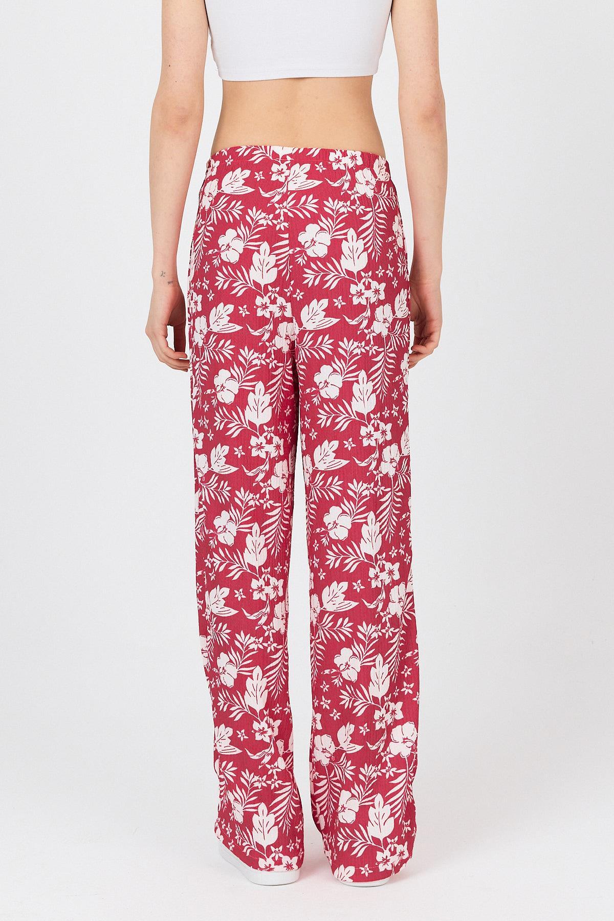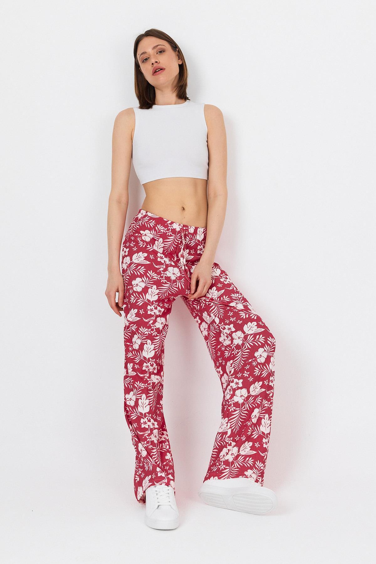 Fuşya Bel Lastikli Desenli Pantolon 4725A