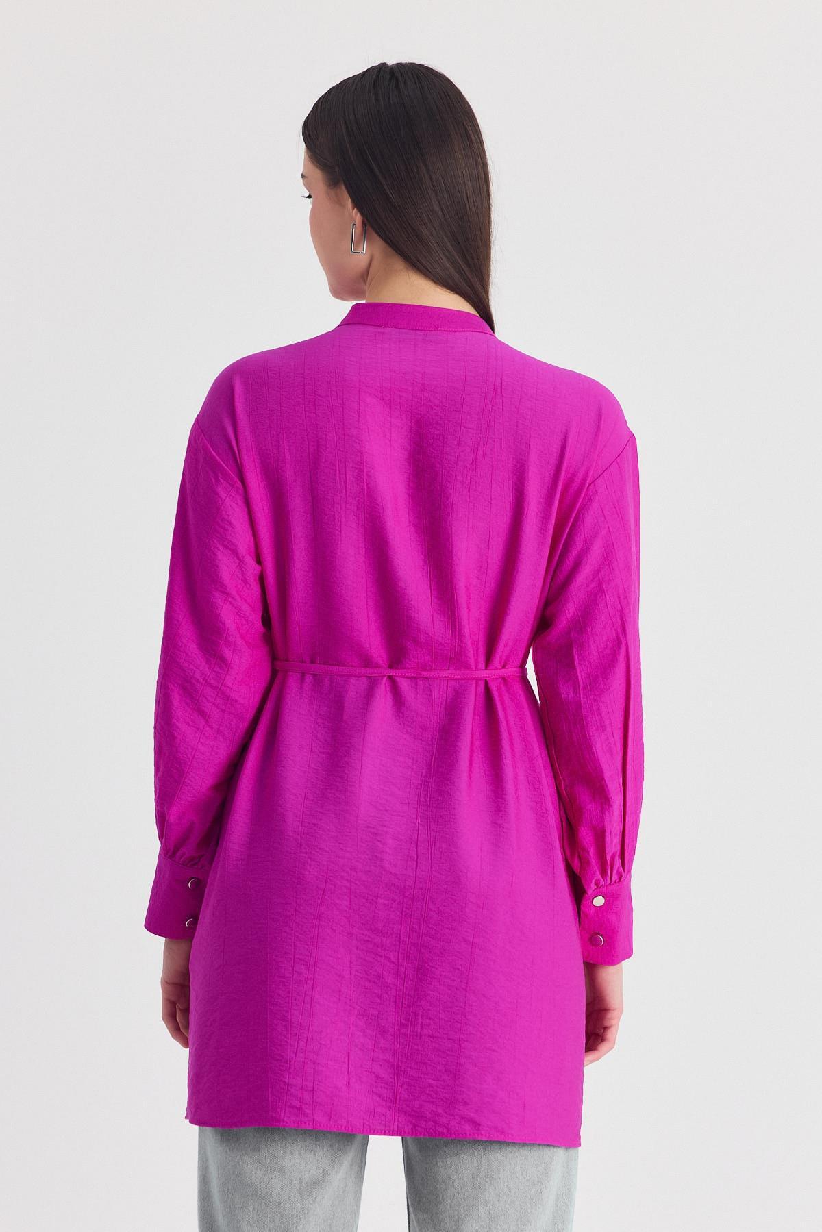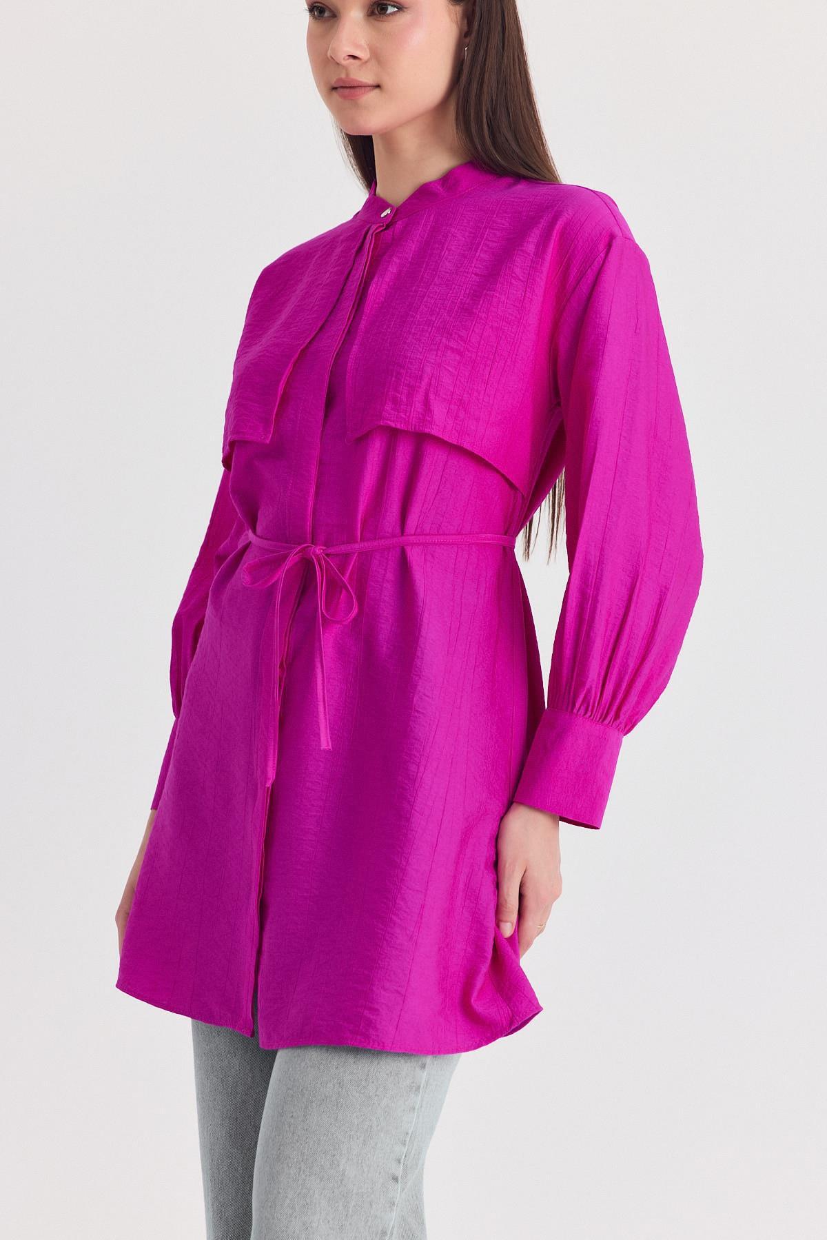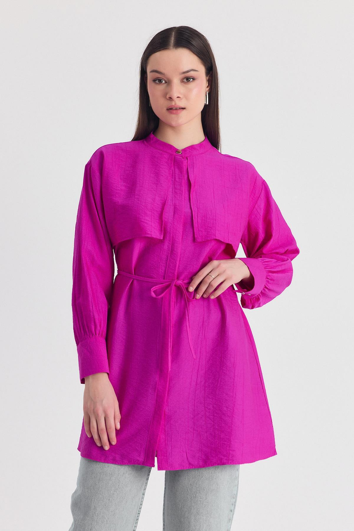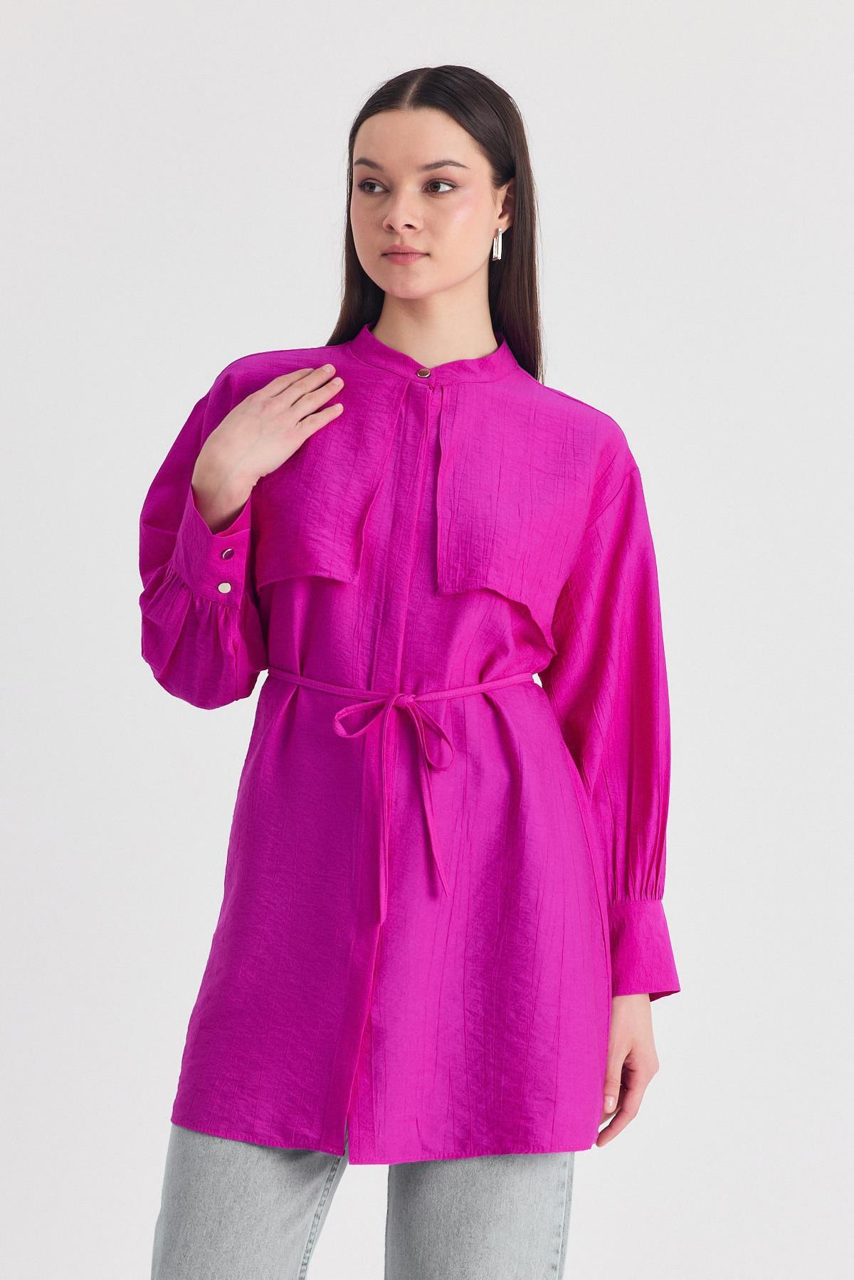 Fuşya Parça Detaylı İp Bağcıklı Gömlek 4553A