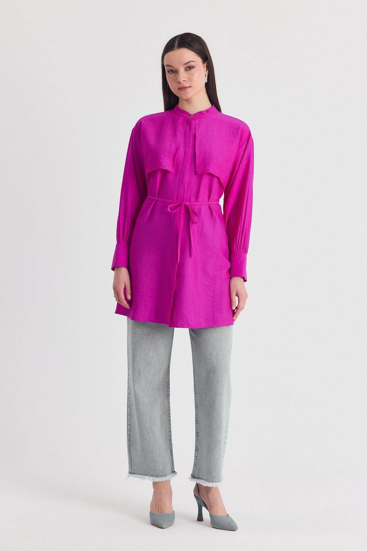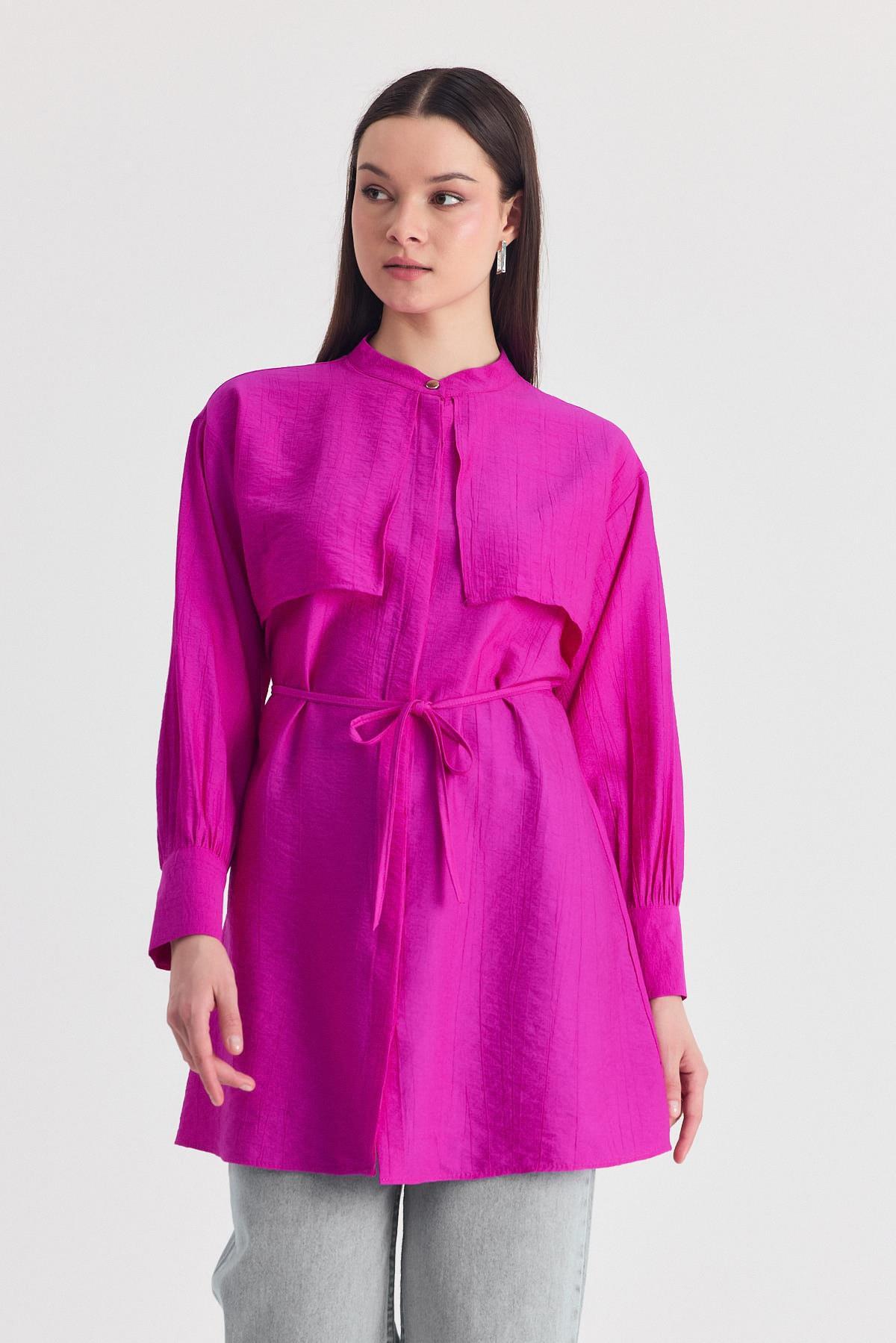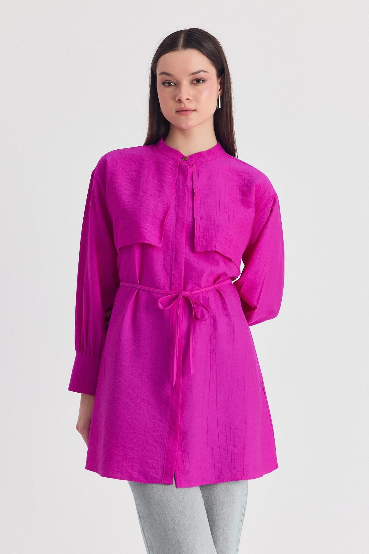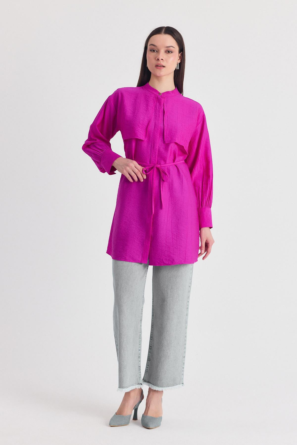 Fuşya Parça Detaylı İp Bağcıklı Gömlek 4553A