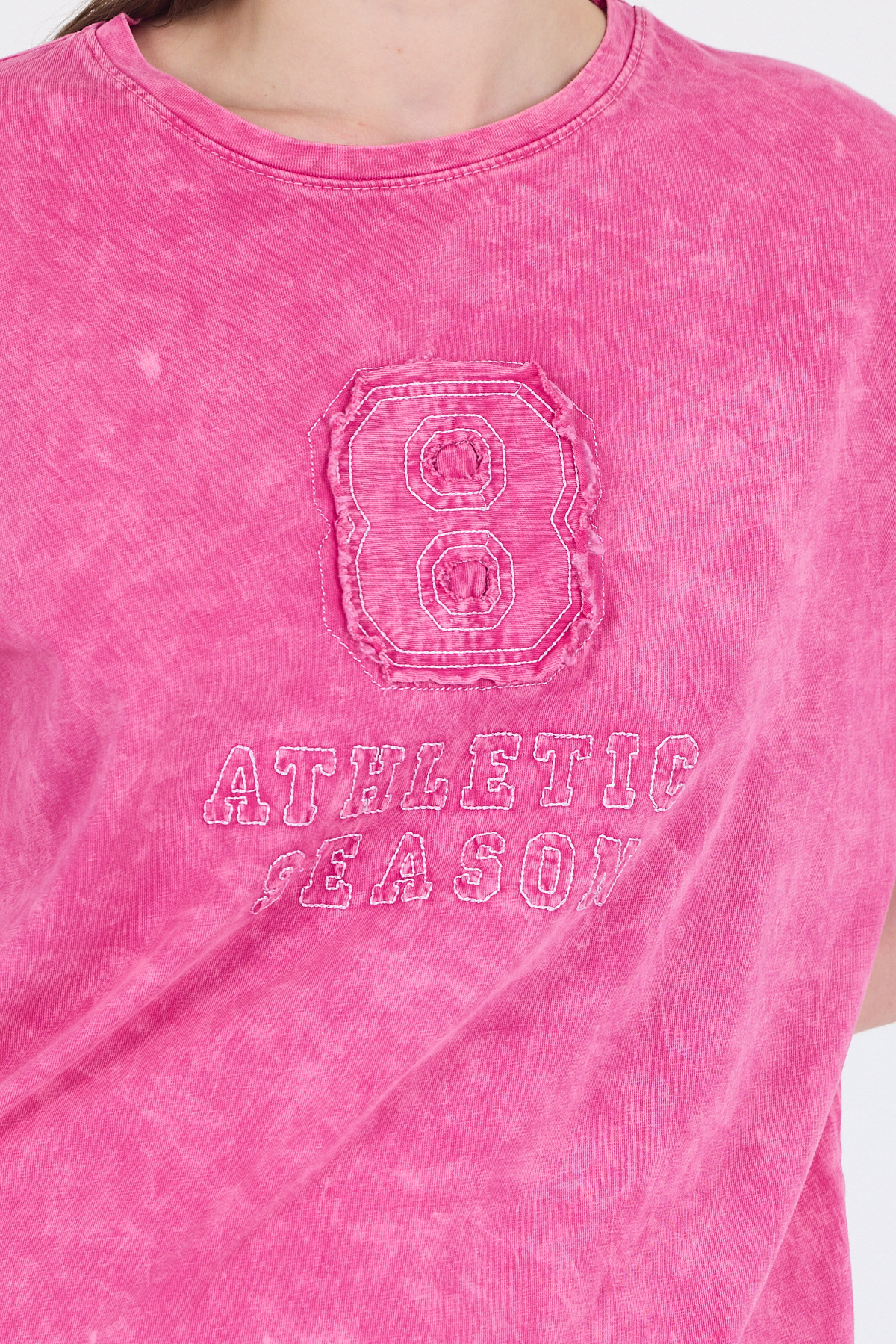 Fuşya Yazı Nakışlı Oversize Tişört 253017