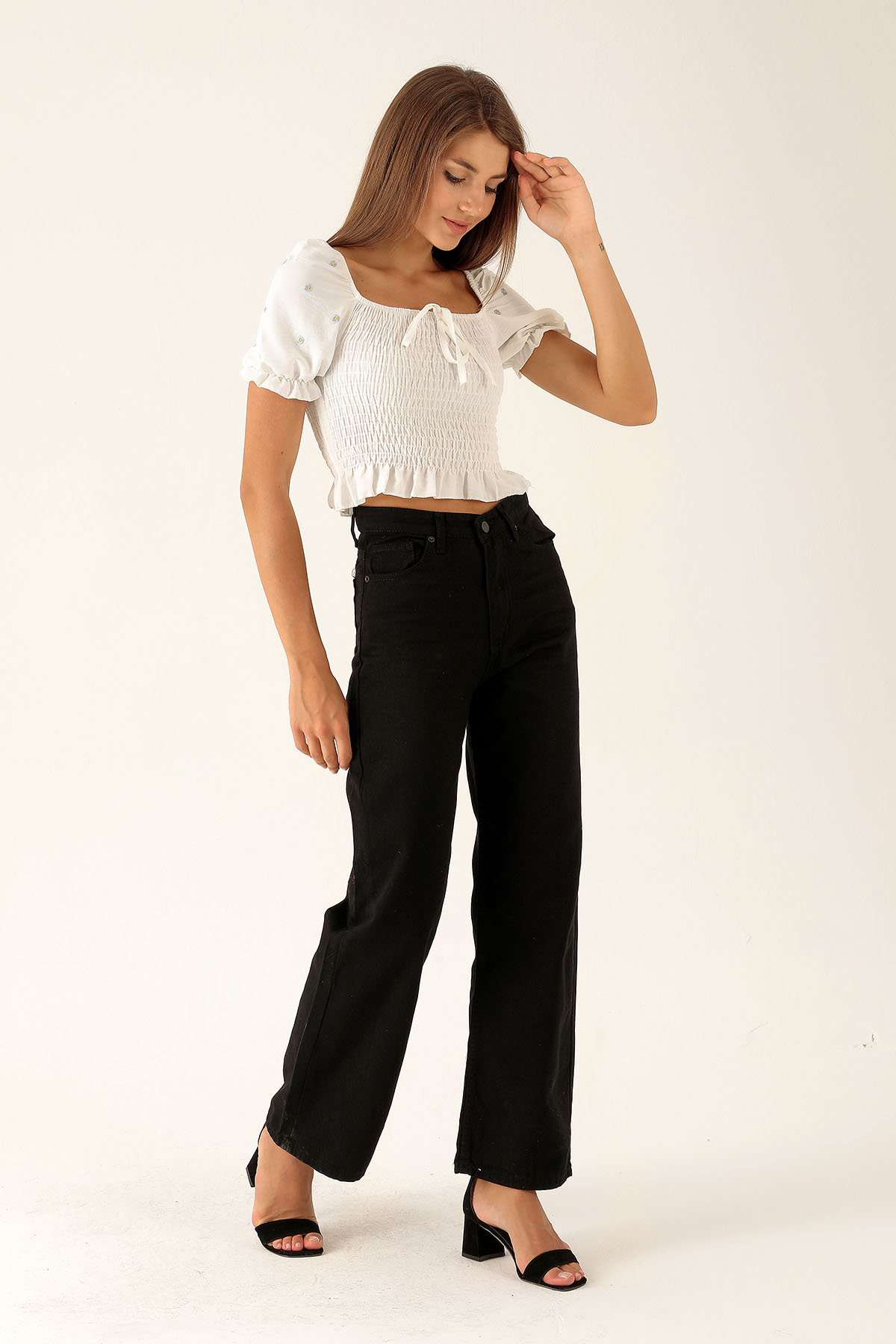 Siyah Pileli Geniş Paça Pantolon 3867 - RAYS Siyah Pileli Geniş Paça Pantolon 3867 - RAYS (1)