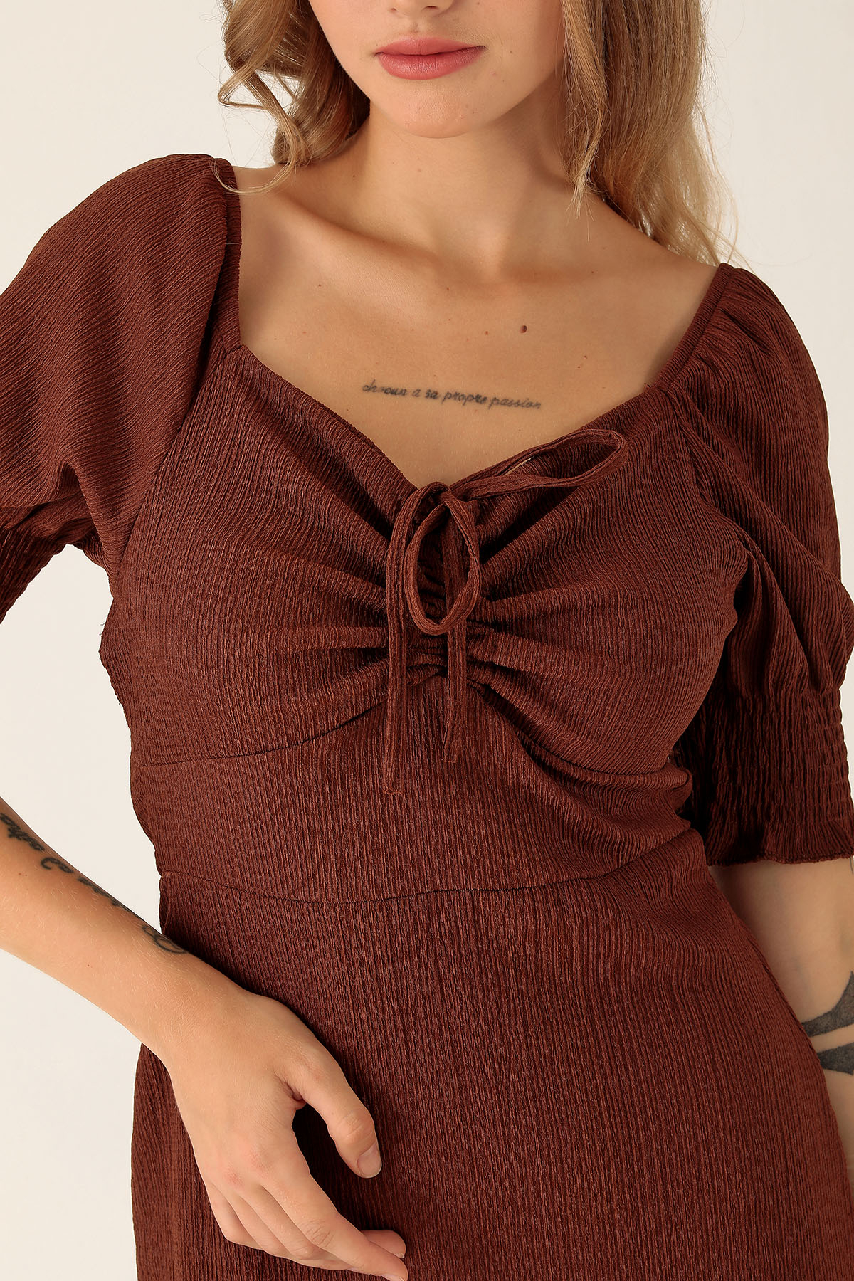 Göğüs Büzgü Detay Elbise - 1263 Acı Kahve