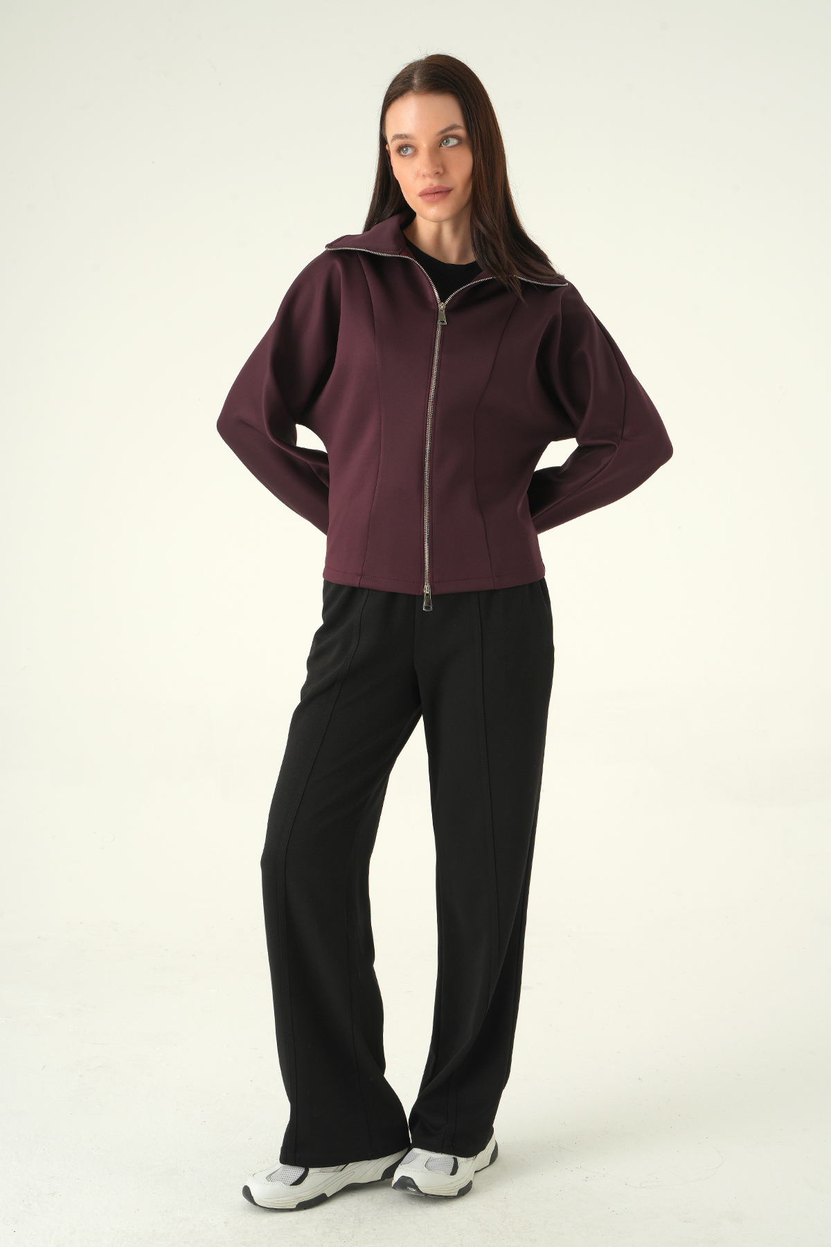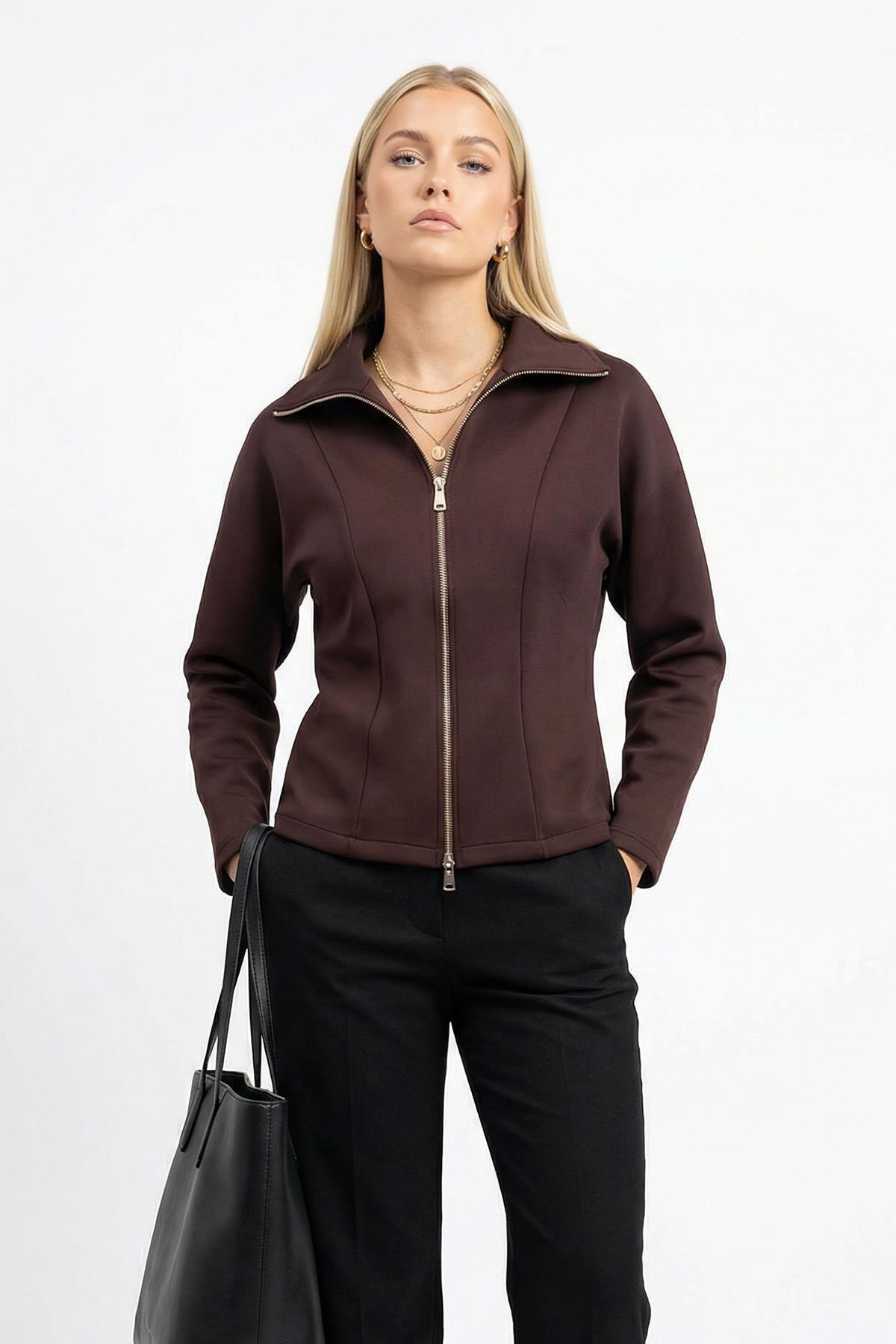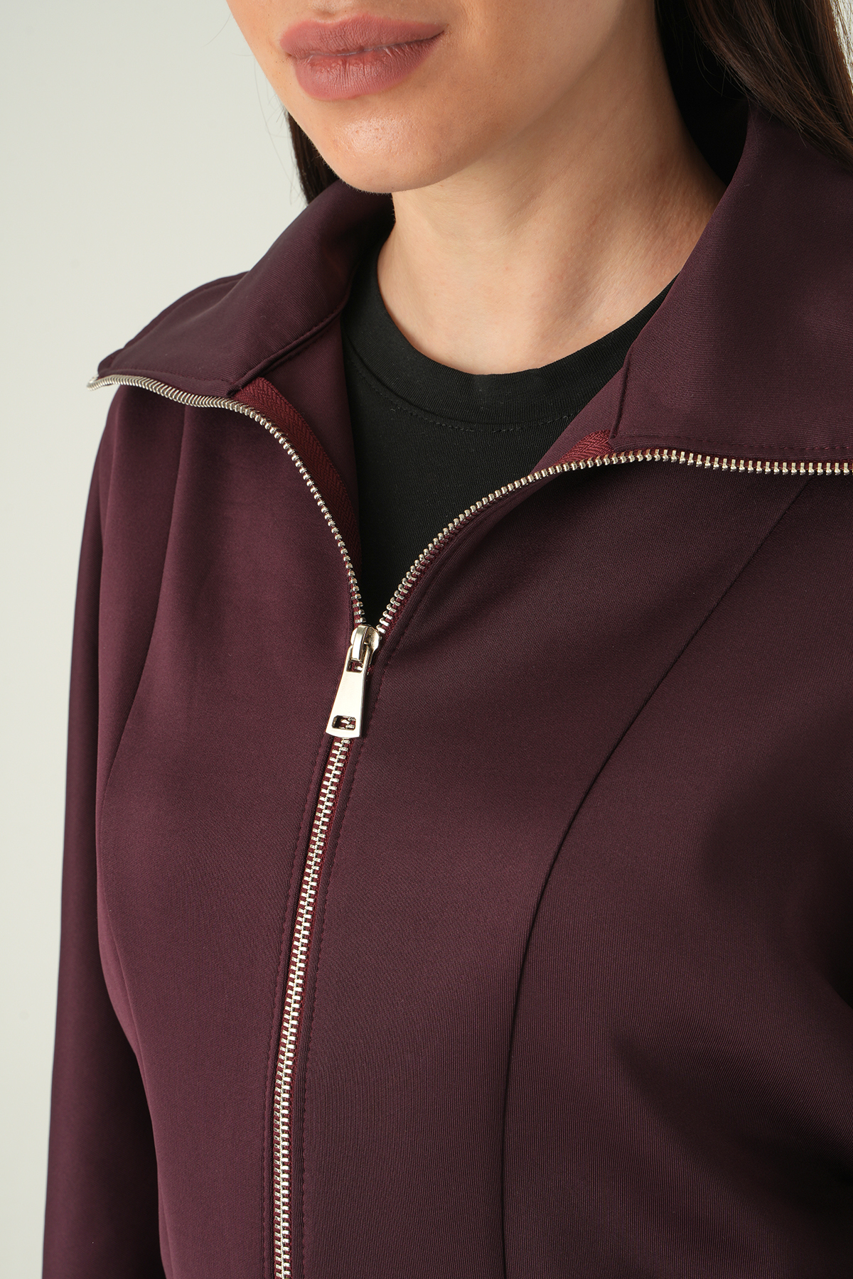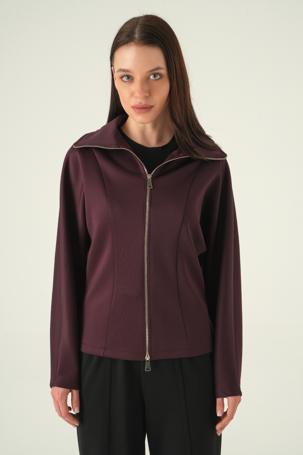 Gömlek Yaka Fermuarlı Hırka Mürdüm 8366A