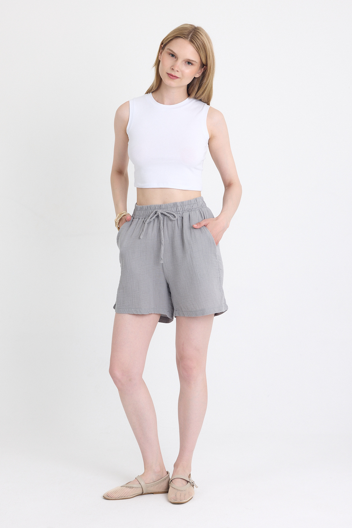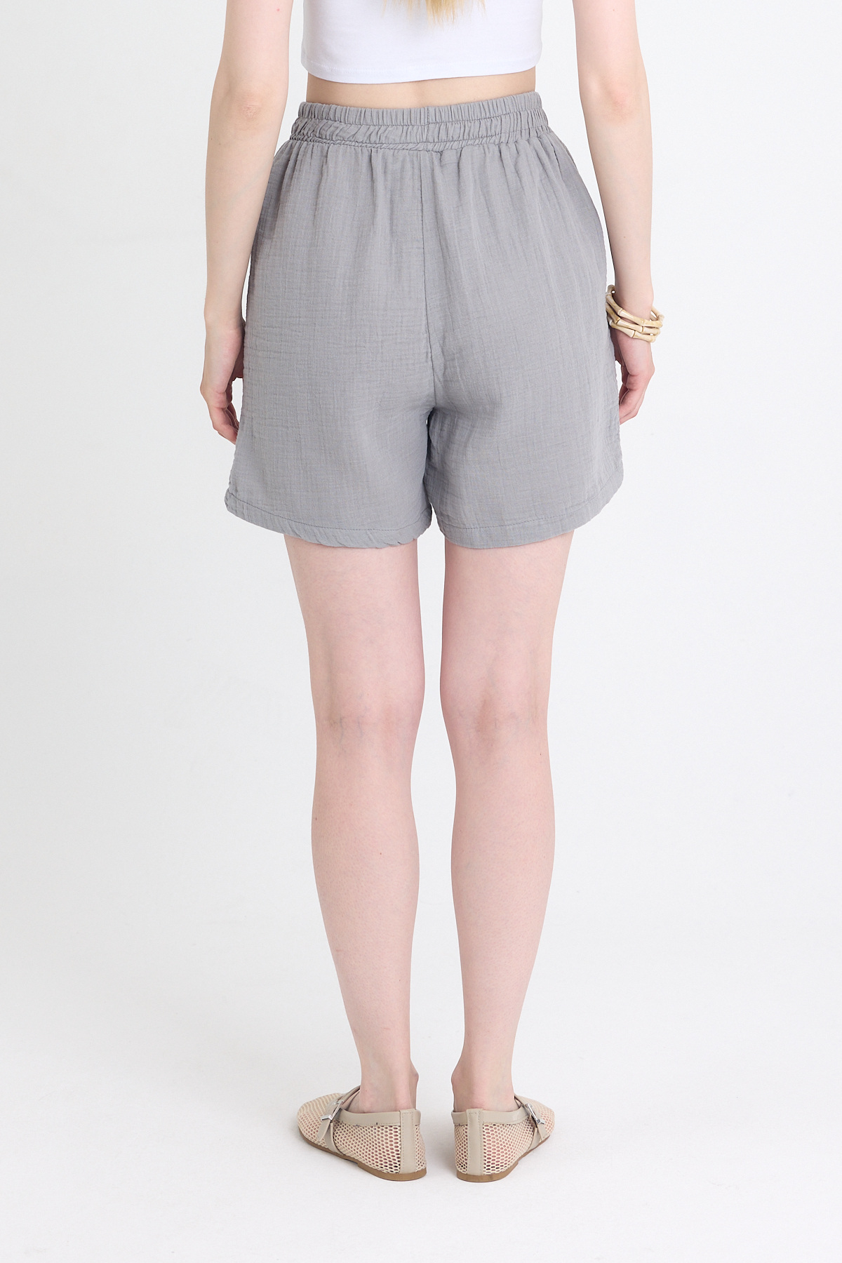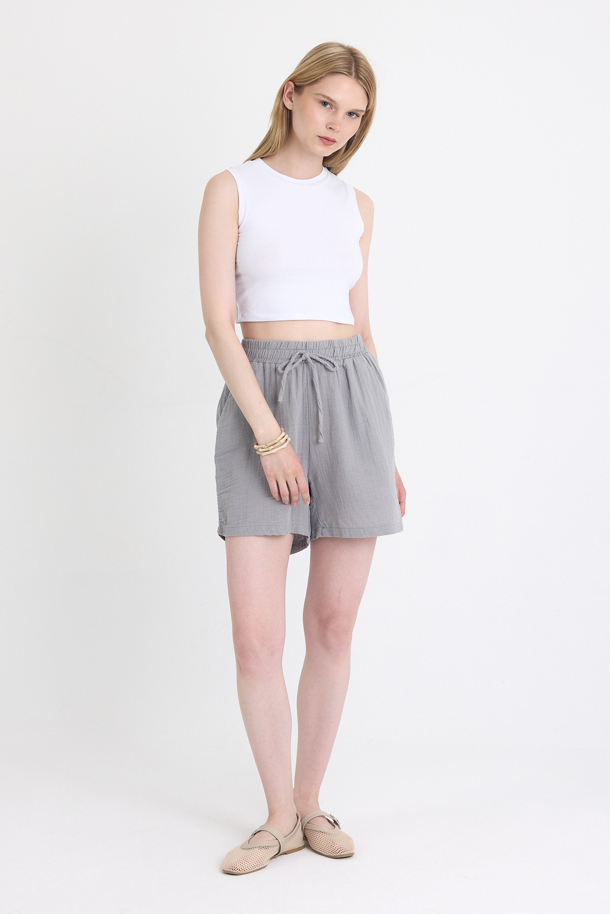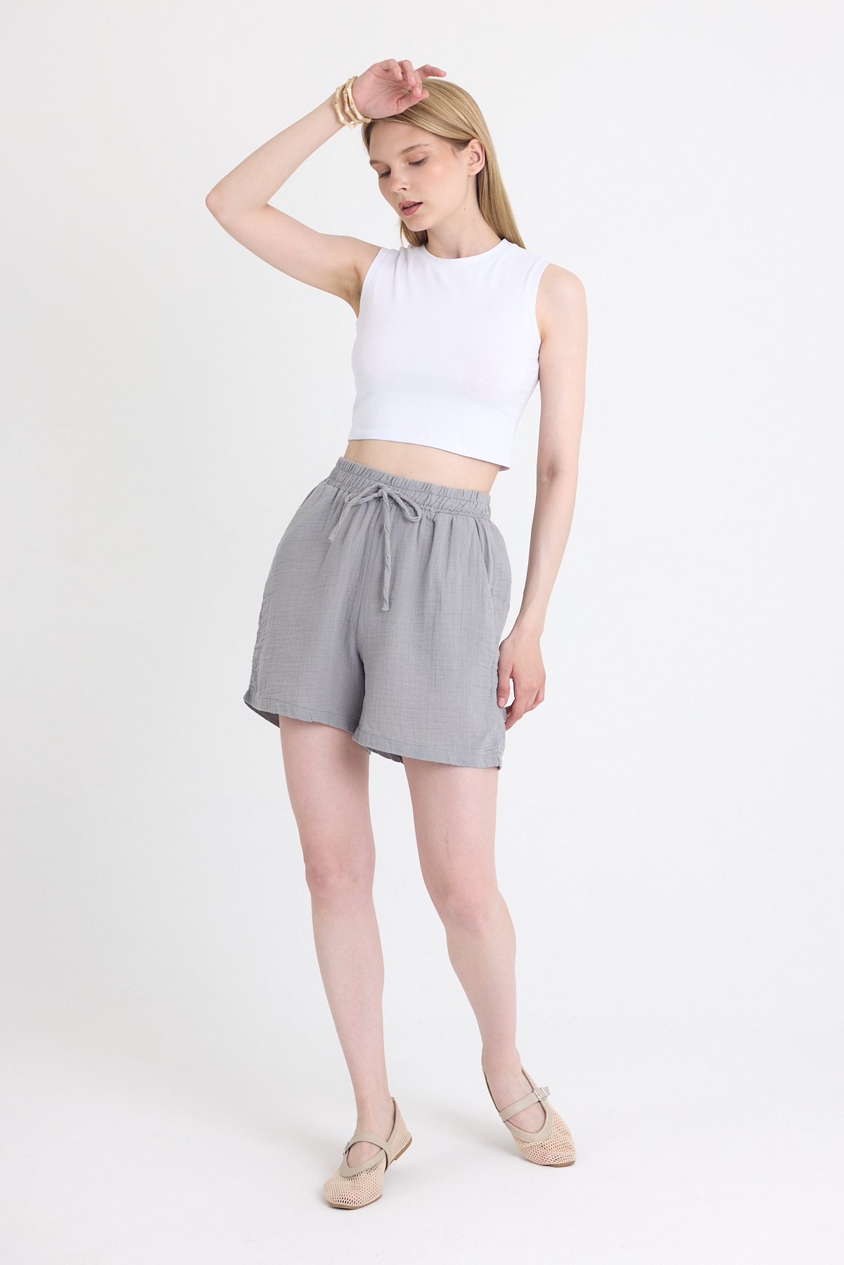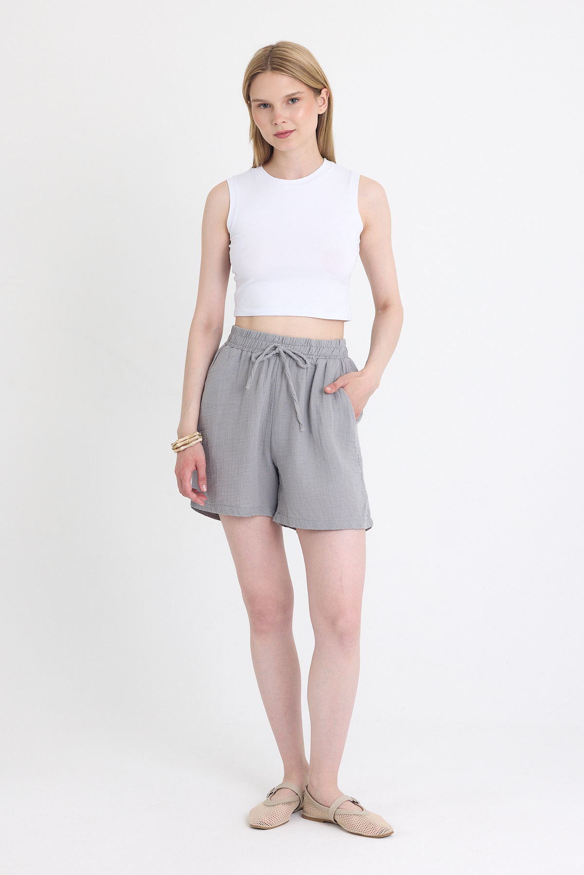 Gri Beli Lastikli %100 Pamuk Müslin Şort 4769A