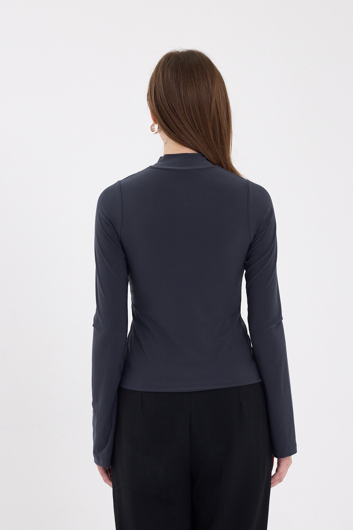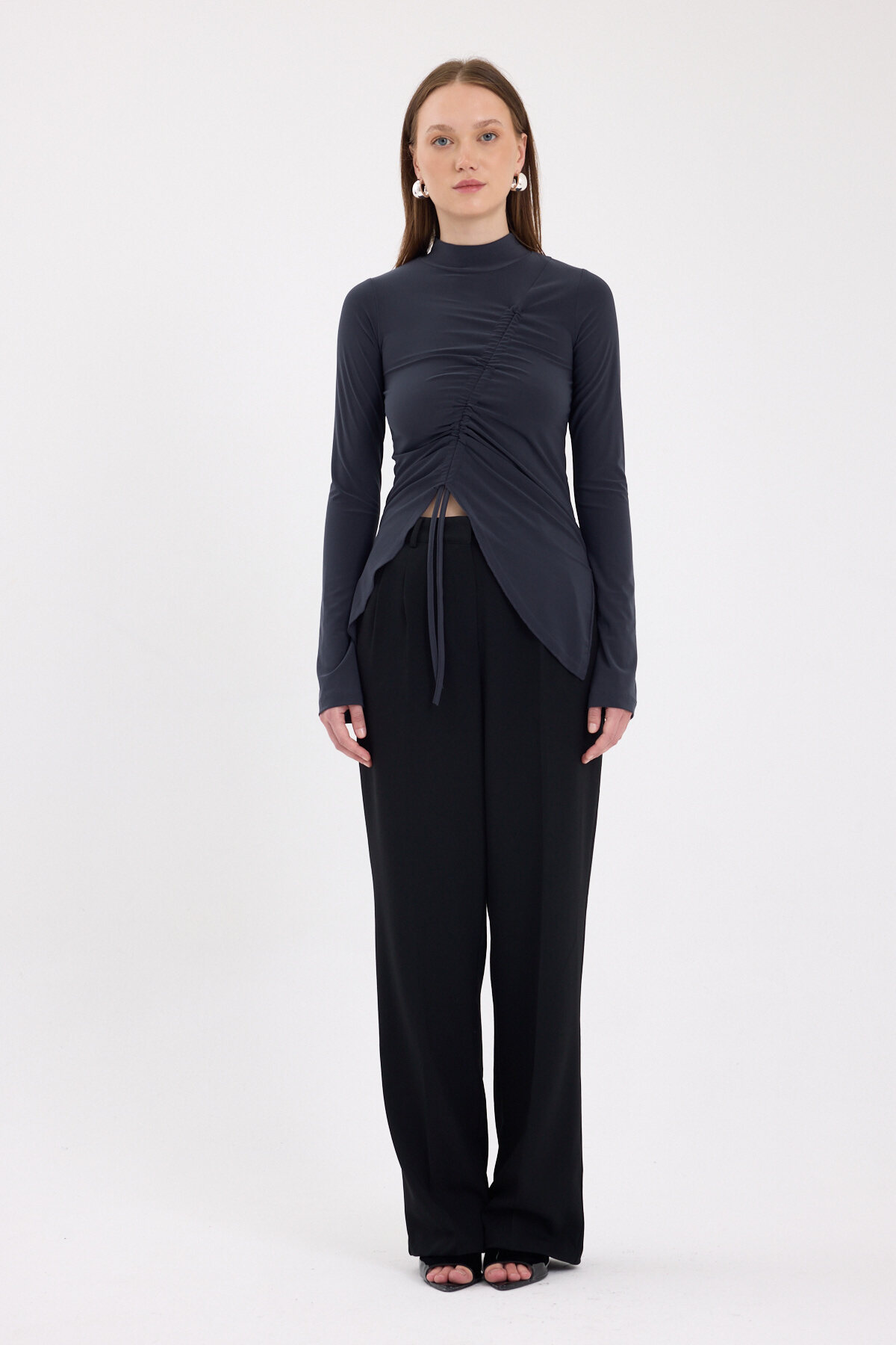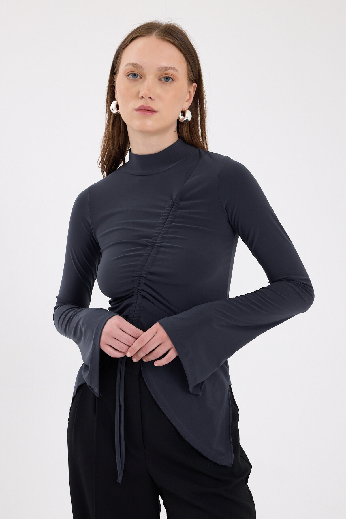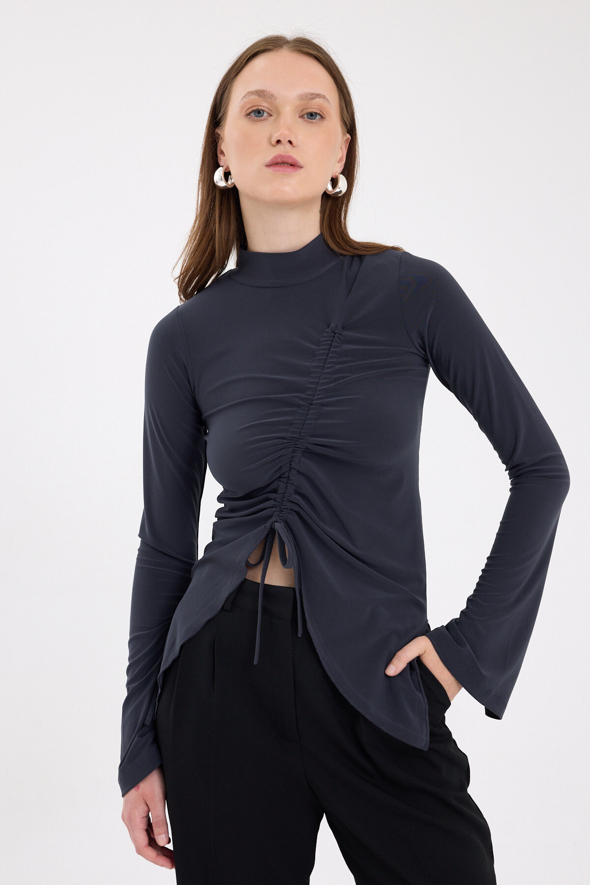 Gri Büzgü Detaylı Balıkçı Yaka Bluz 2458