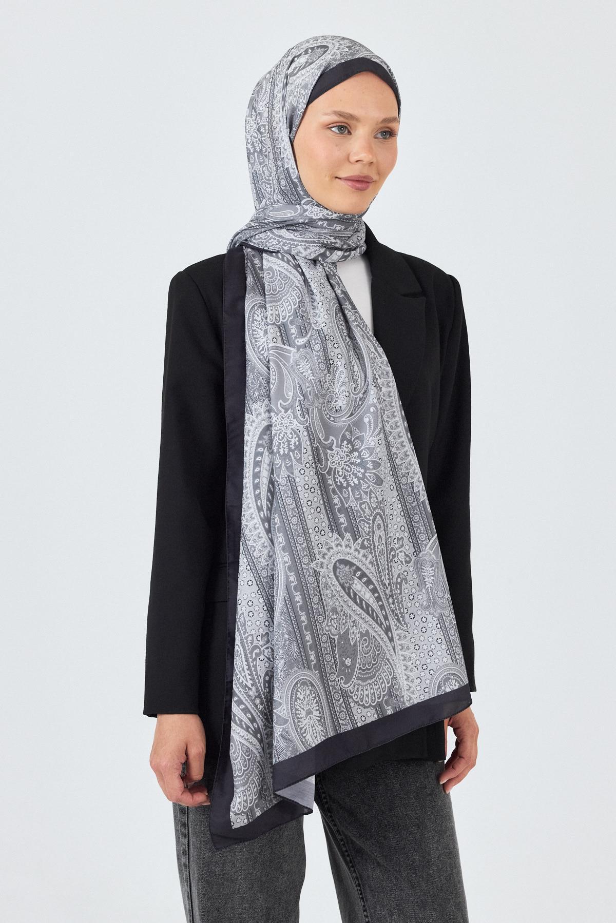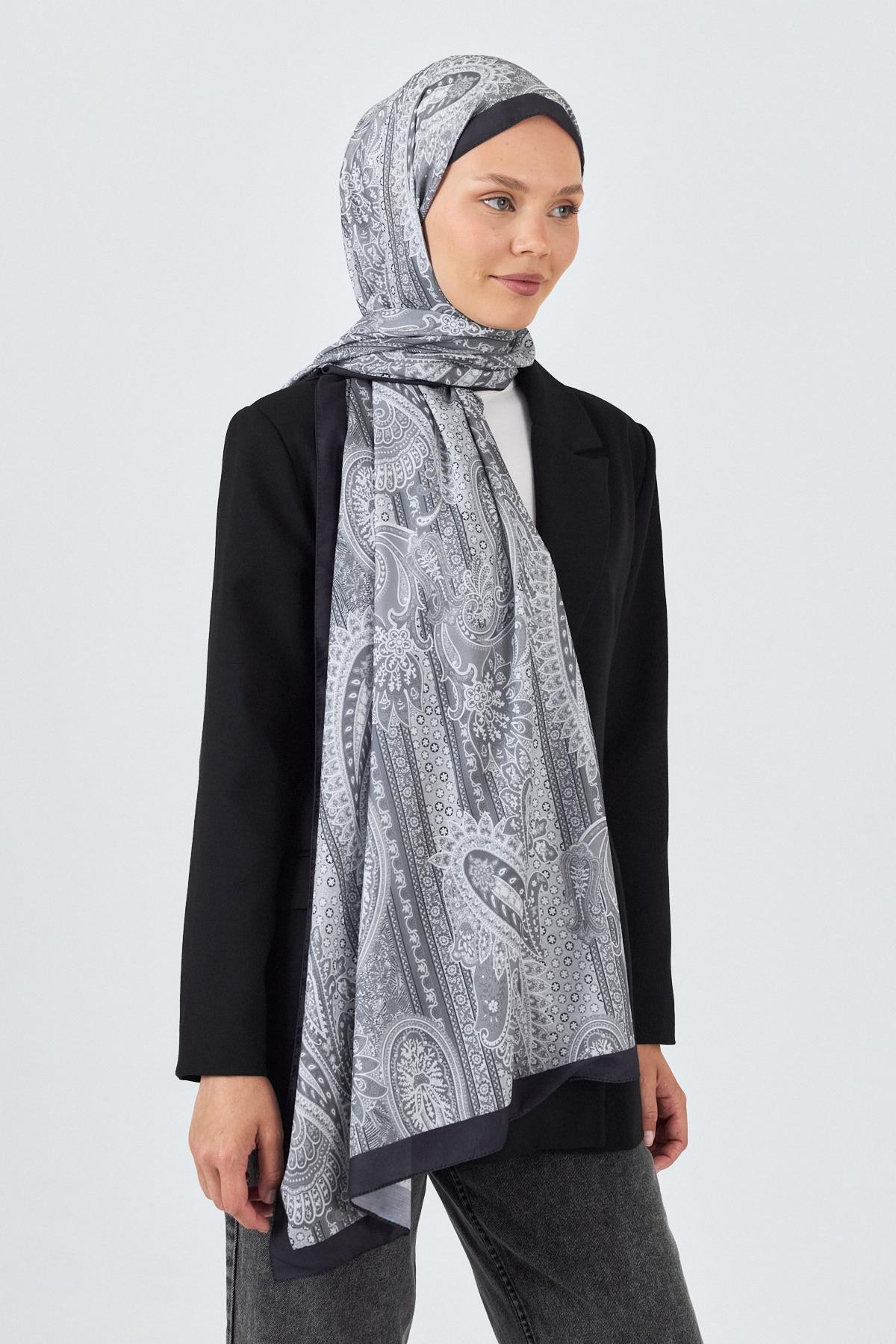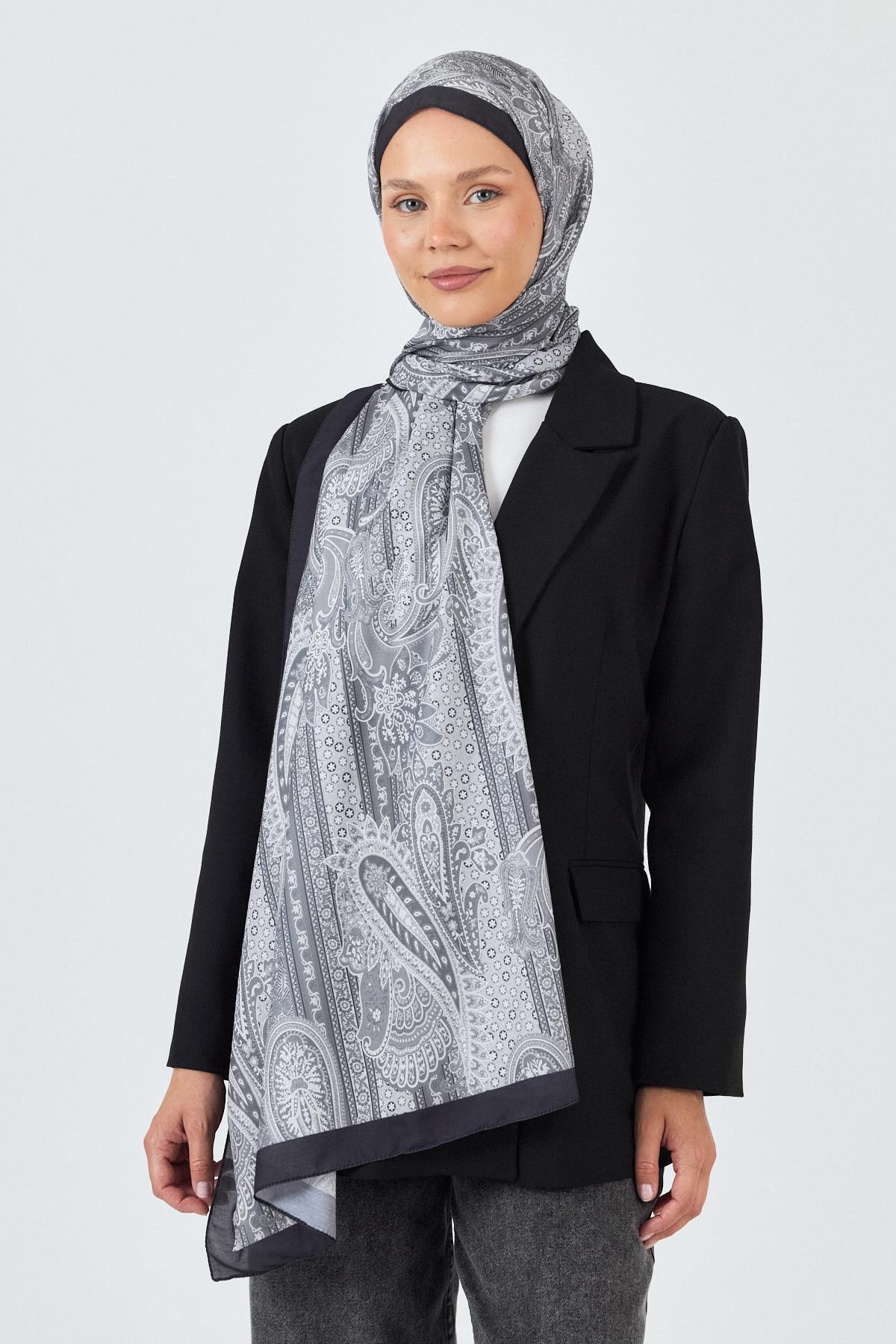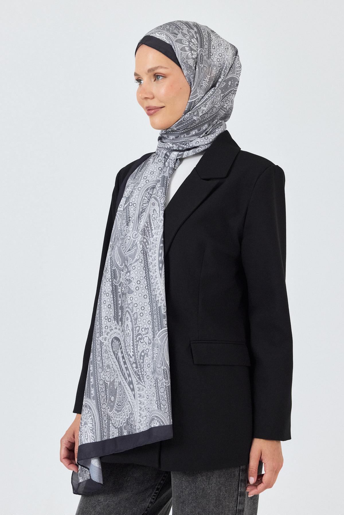 Gri Etnik Desenli Şal 4012