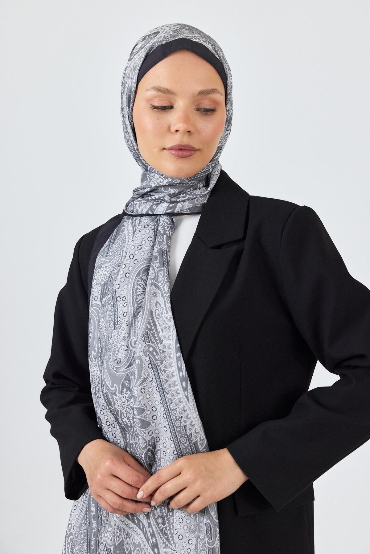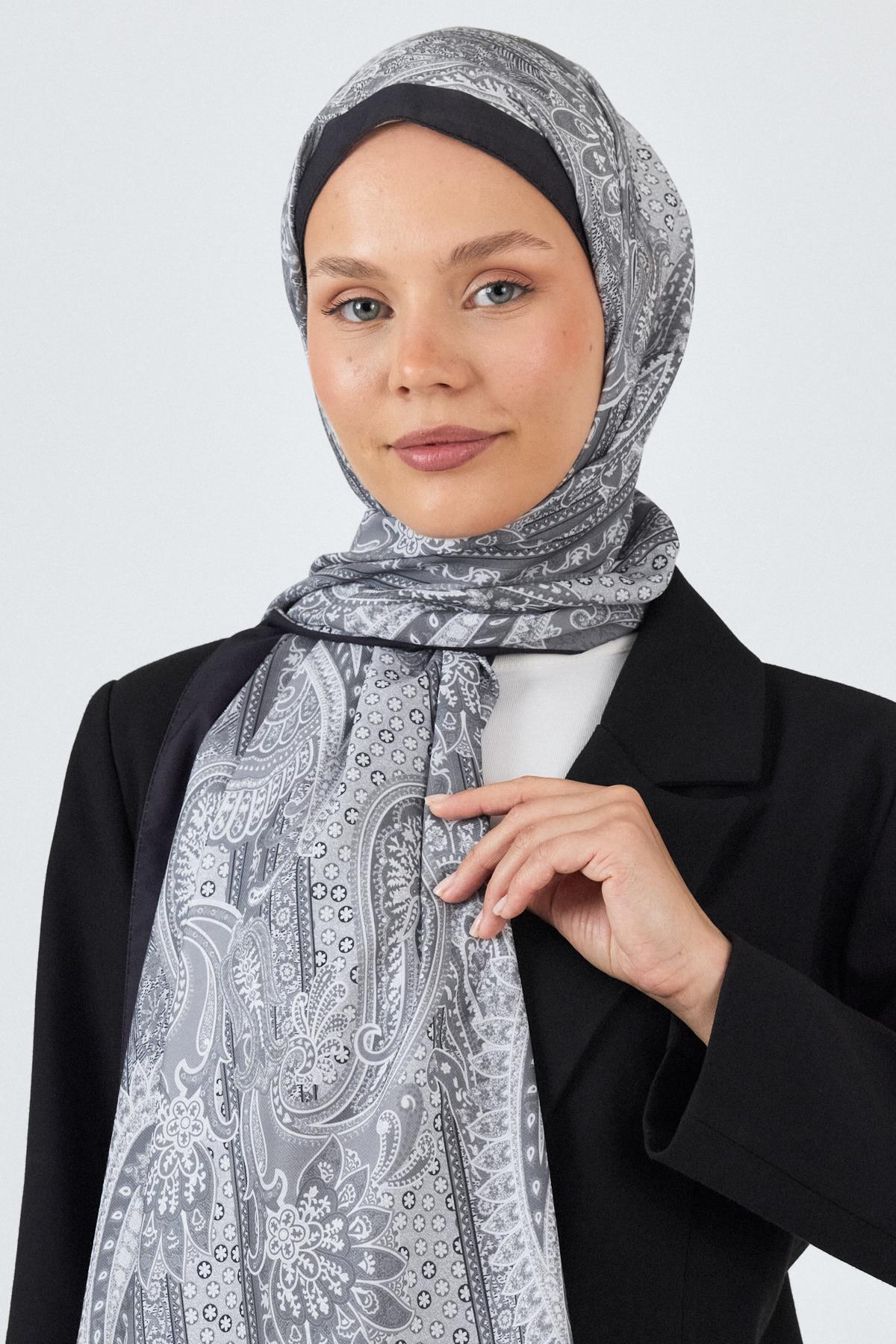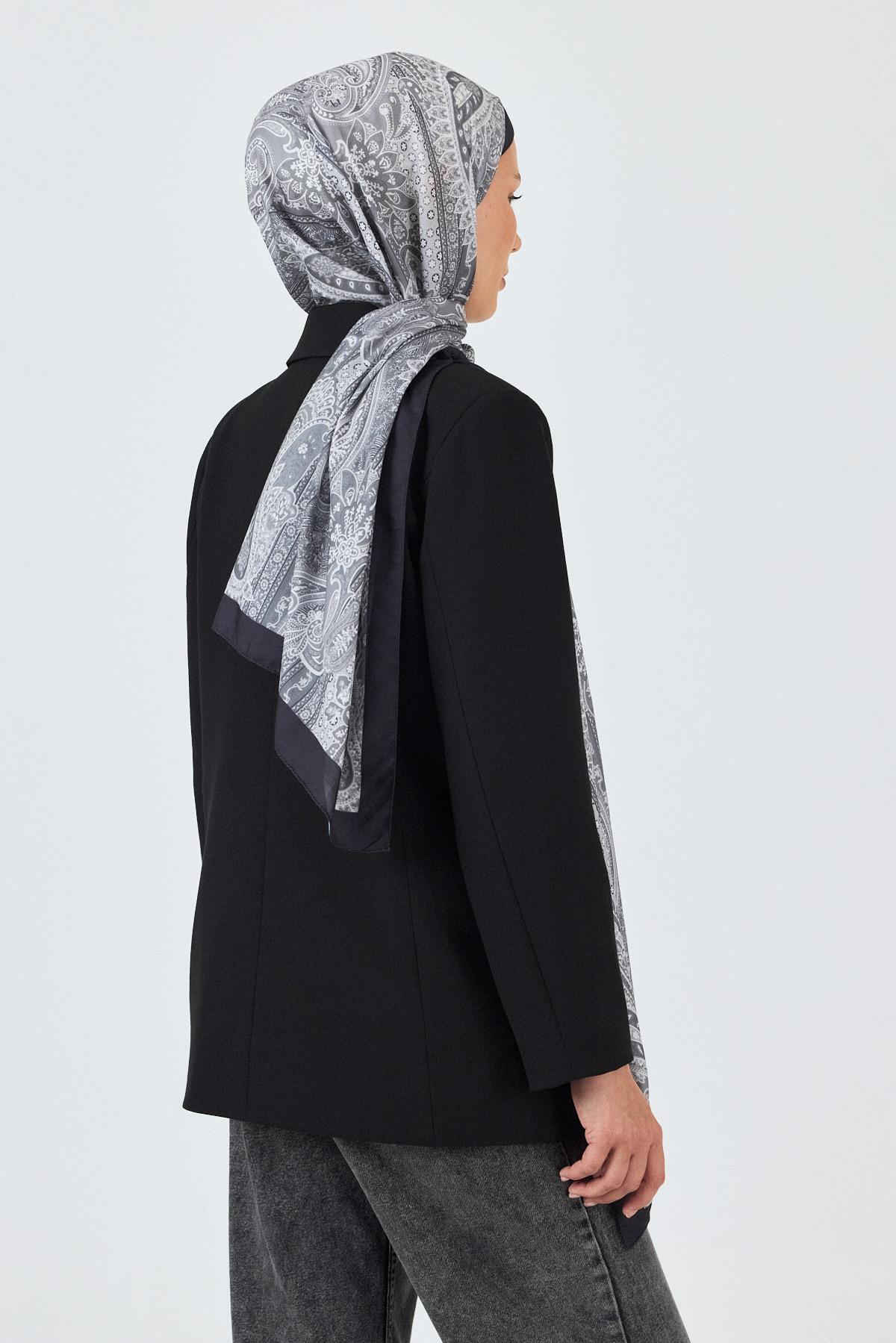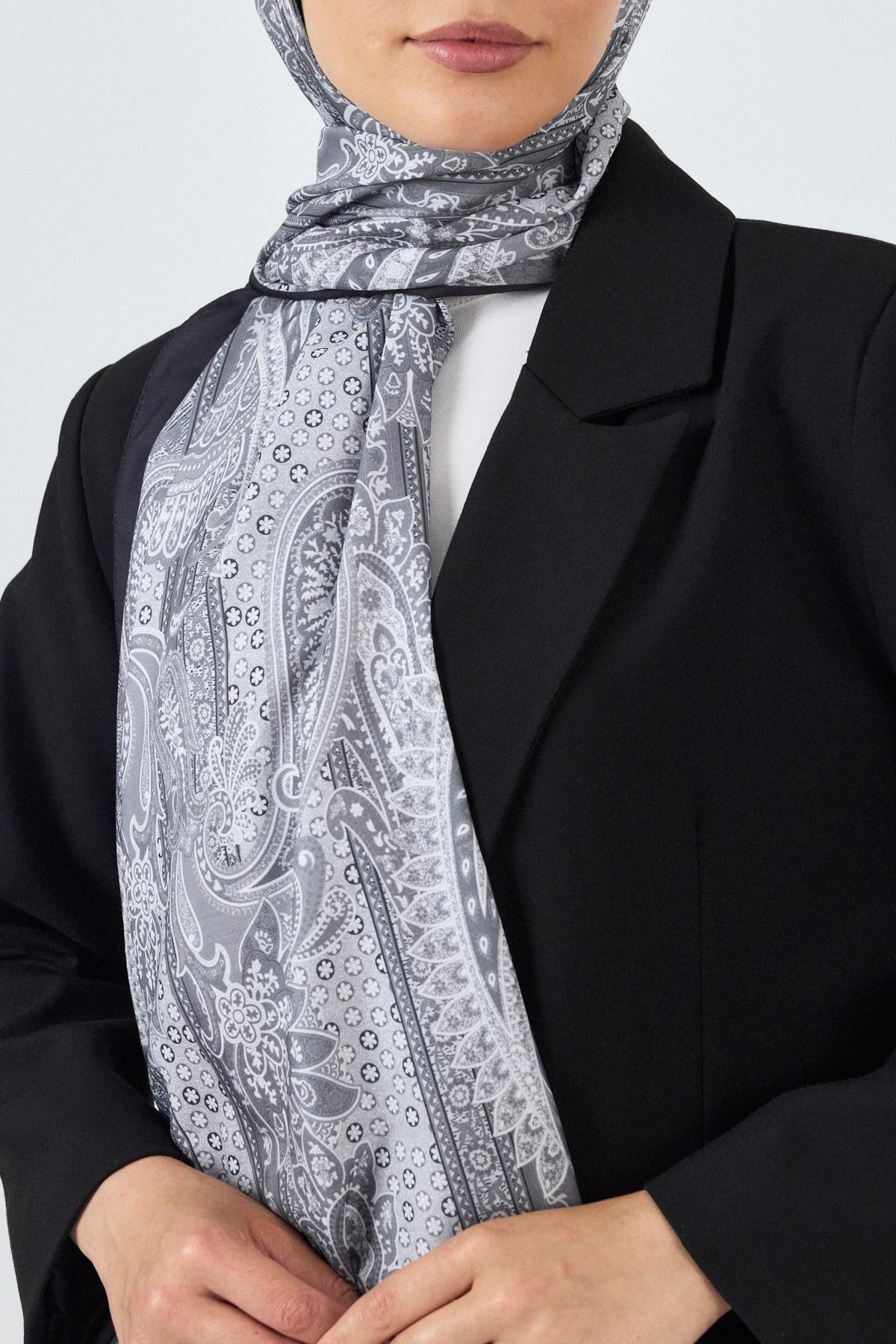 Gri Etnik Desenli Şal 4012