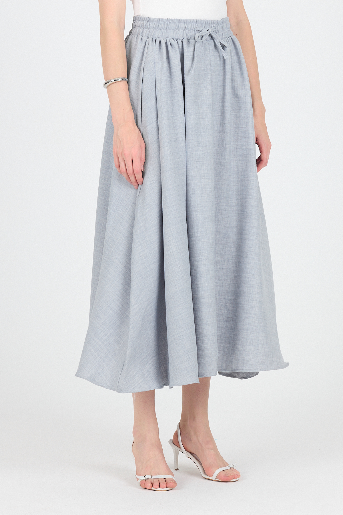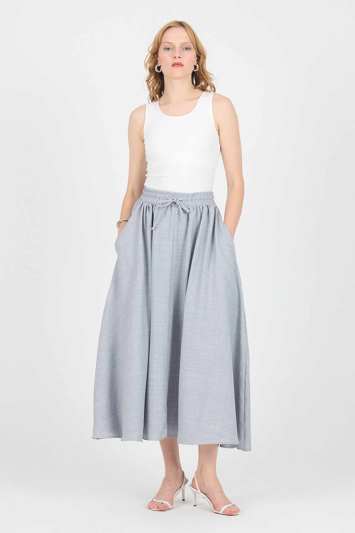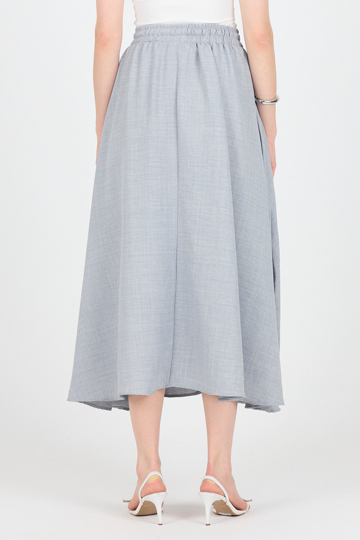 Gri Pamuklu Beli Lastikli Midi Etek 8024A