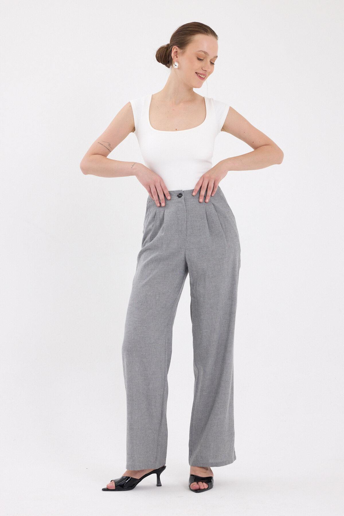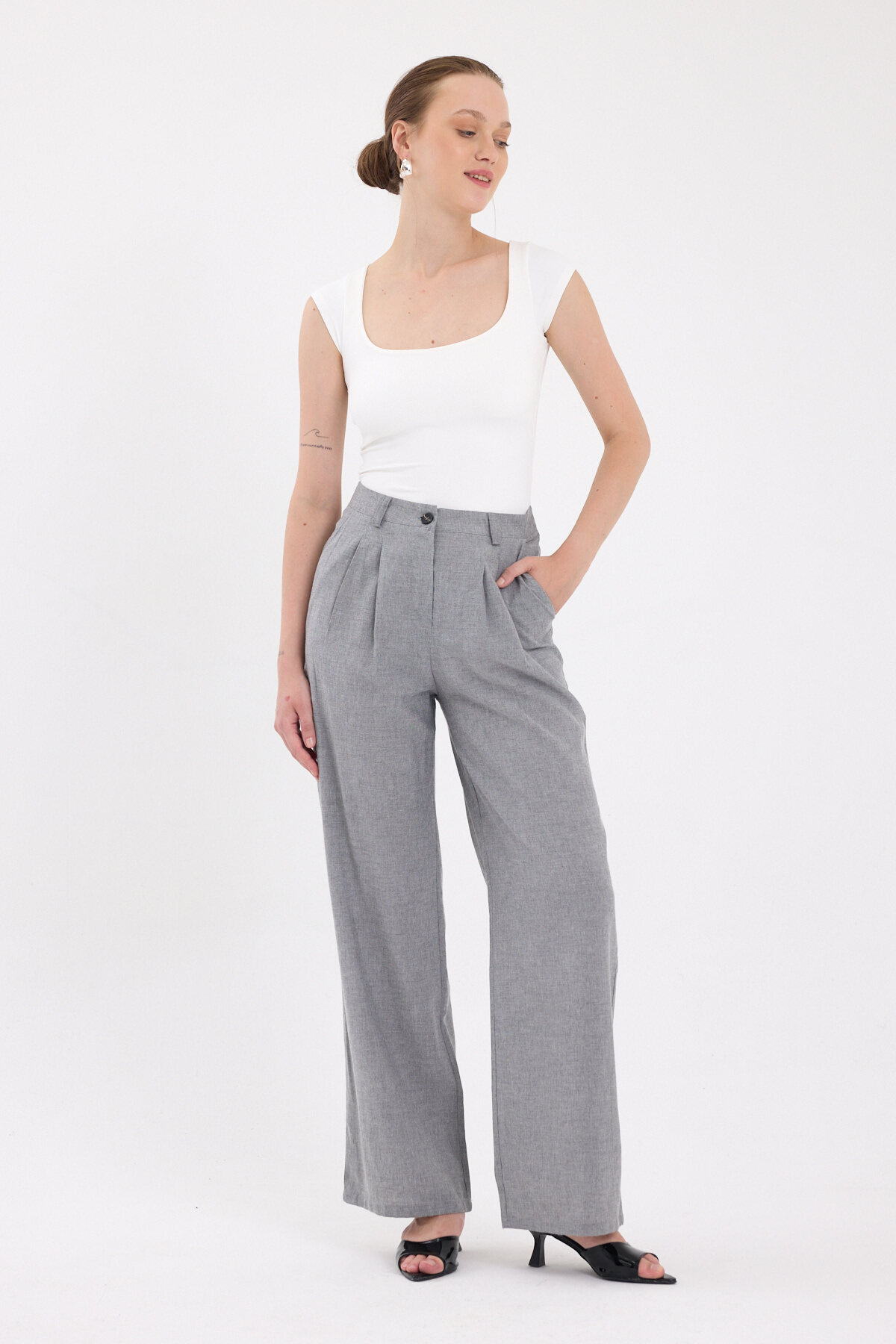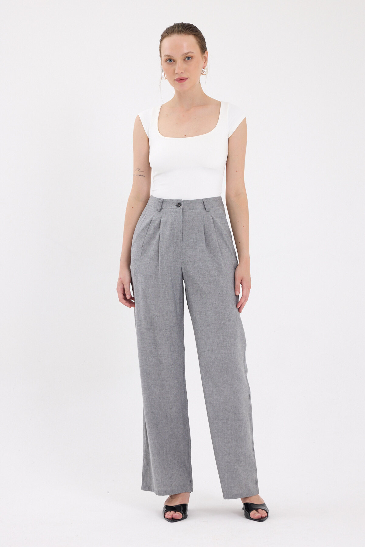 Gri Pileli Palazzo Bol Paça Kadın Pantolon 4755A