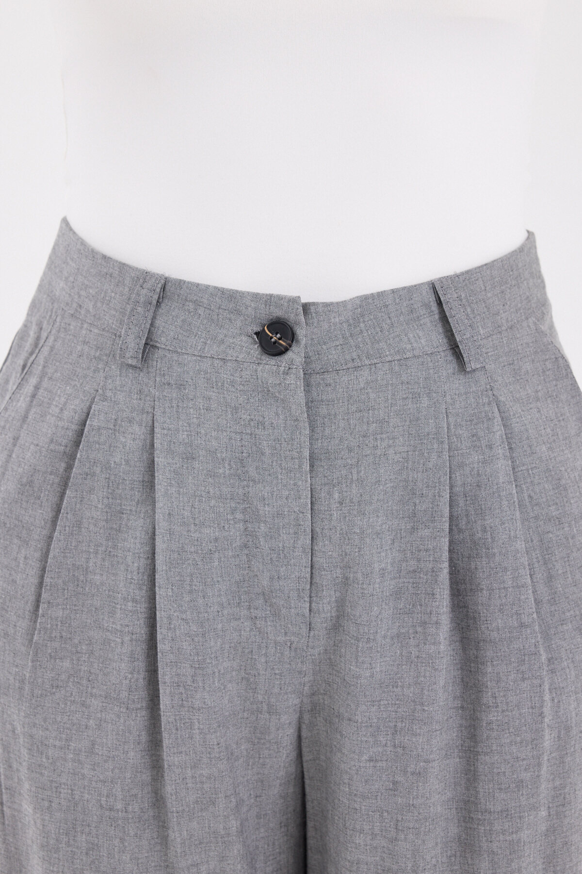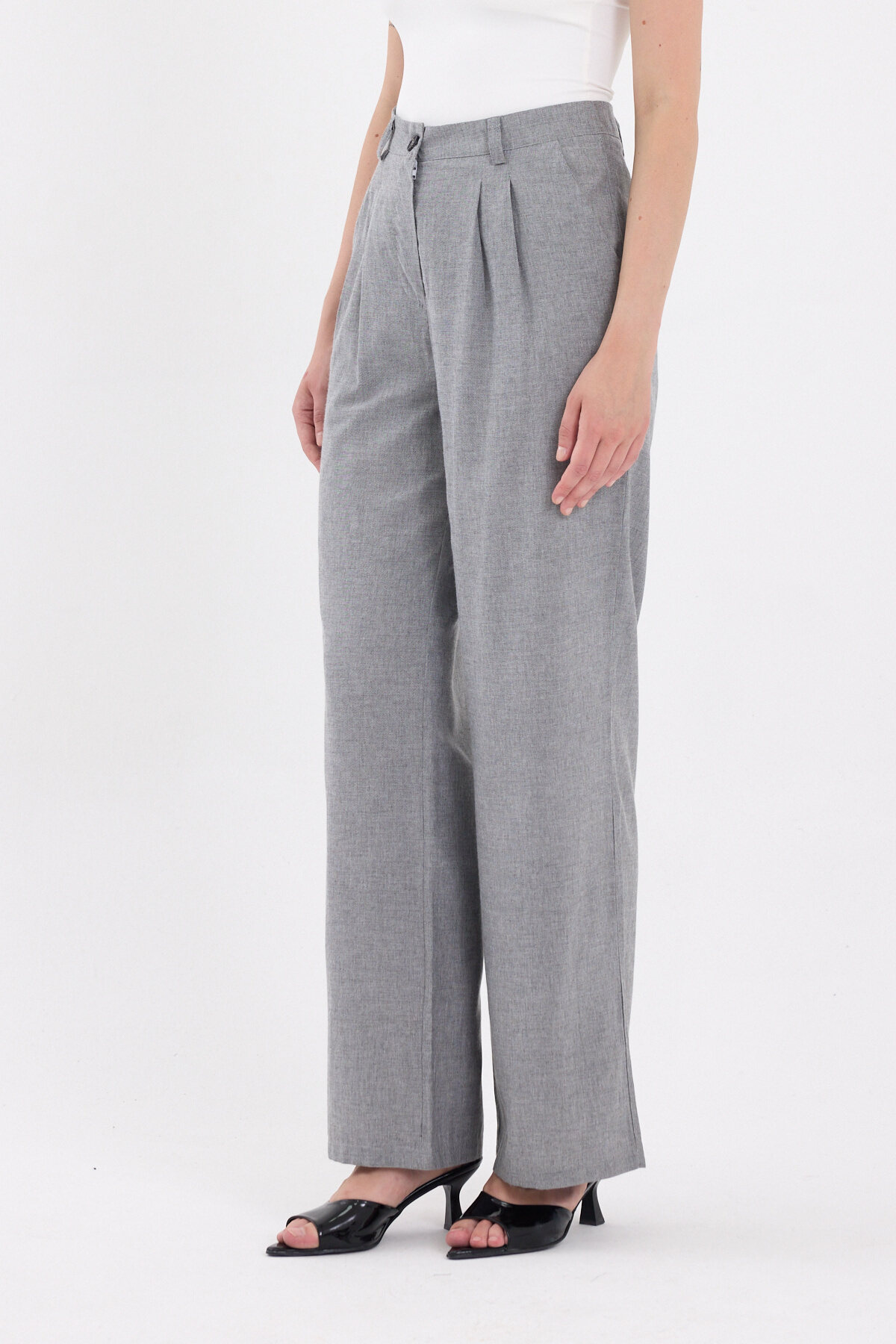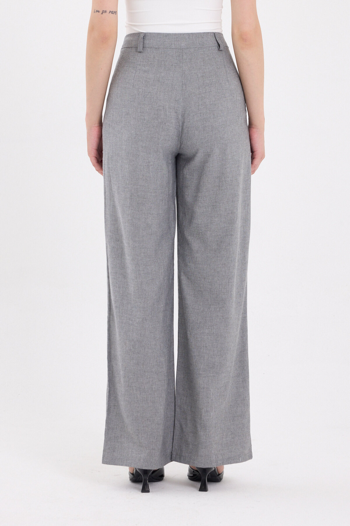 Gri Pileli Palazzo Bol Paça Kadın Pantolon 4755A