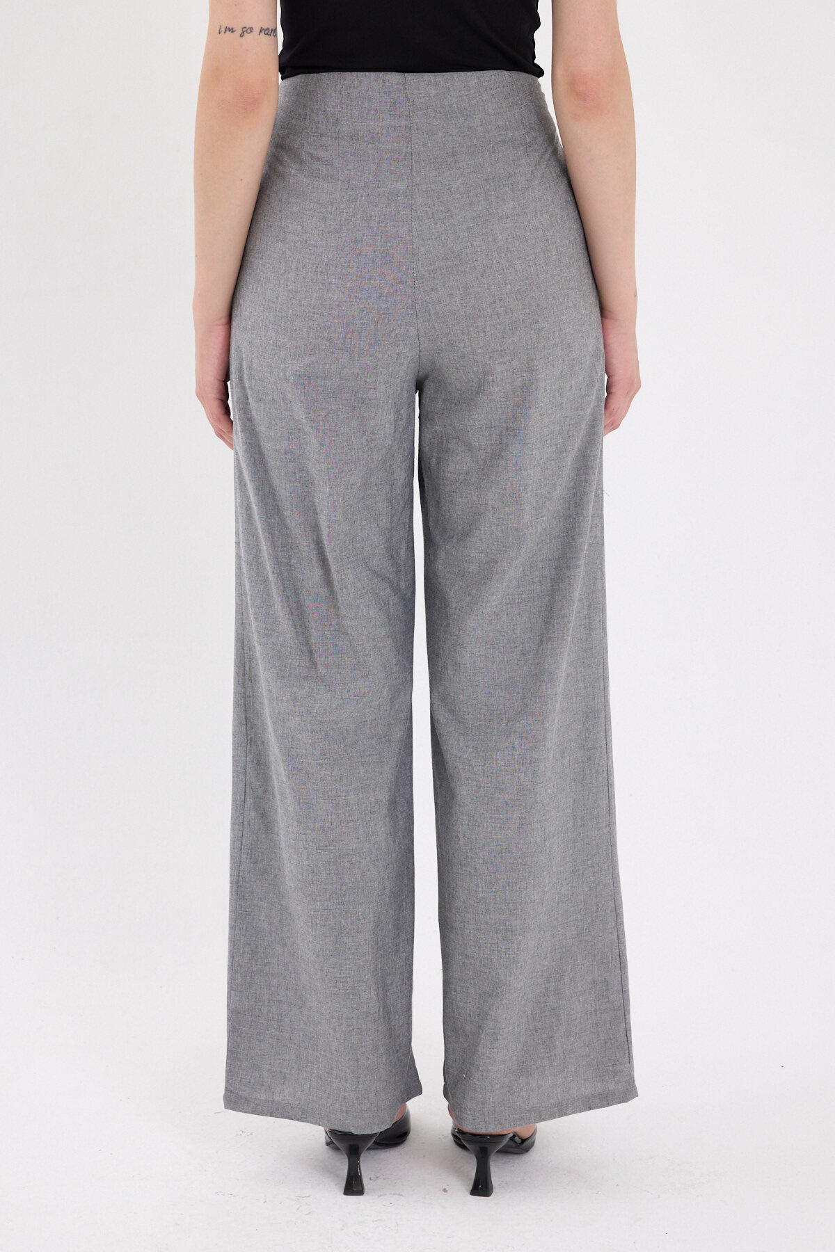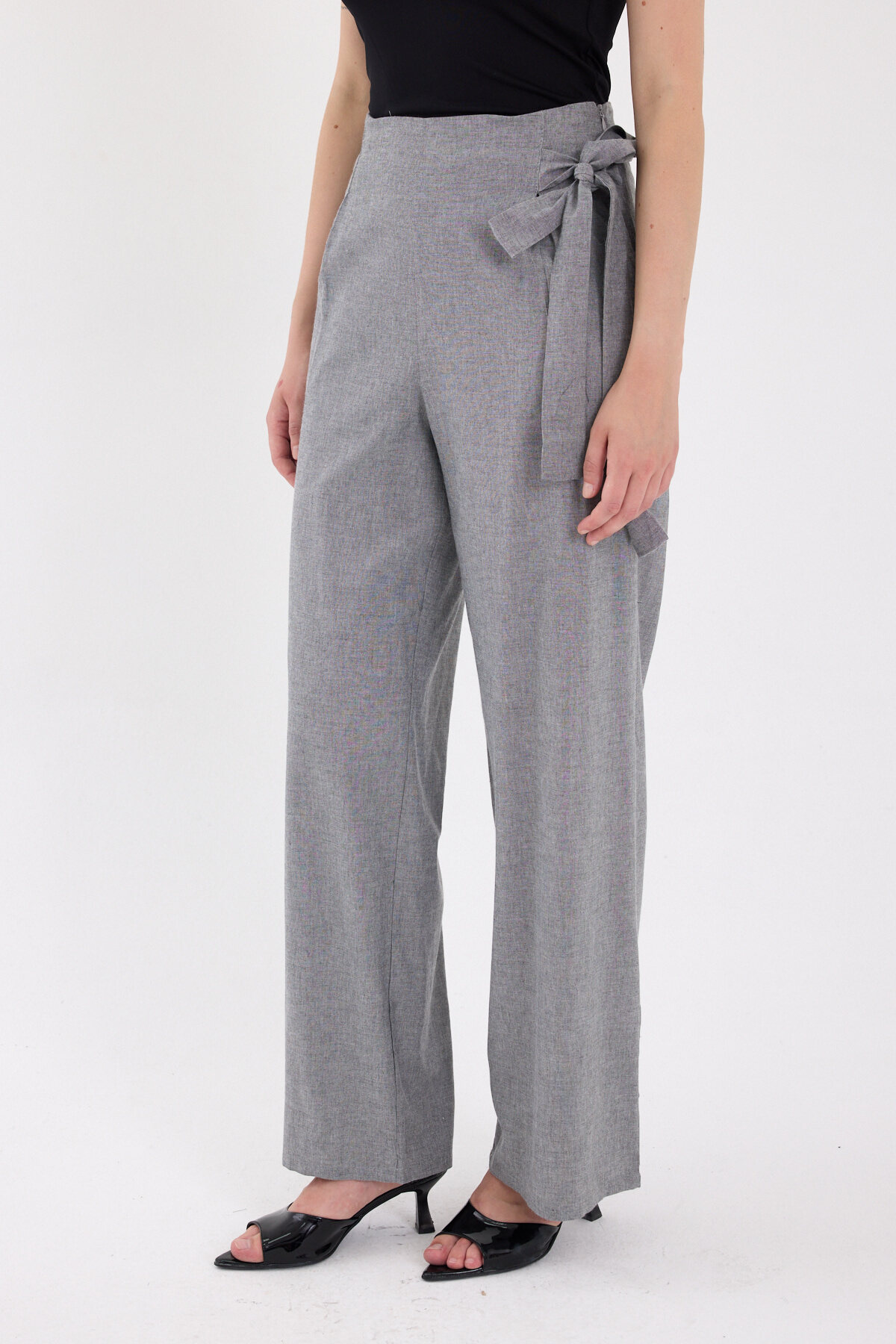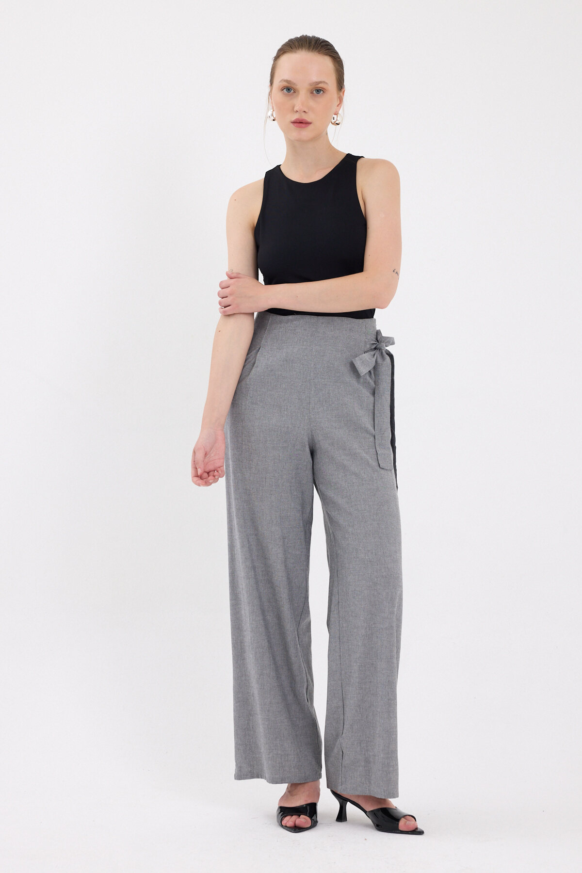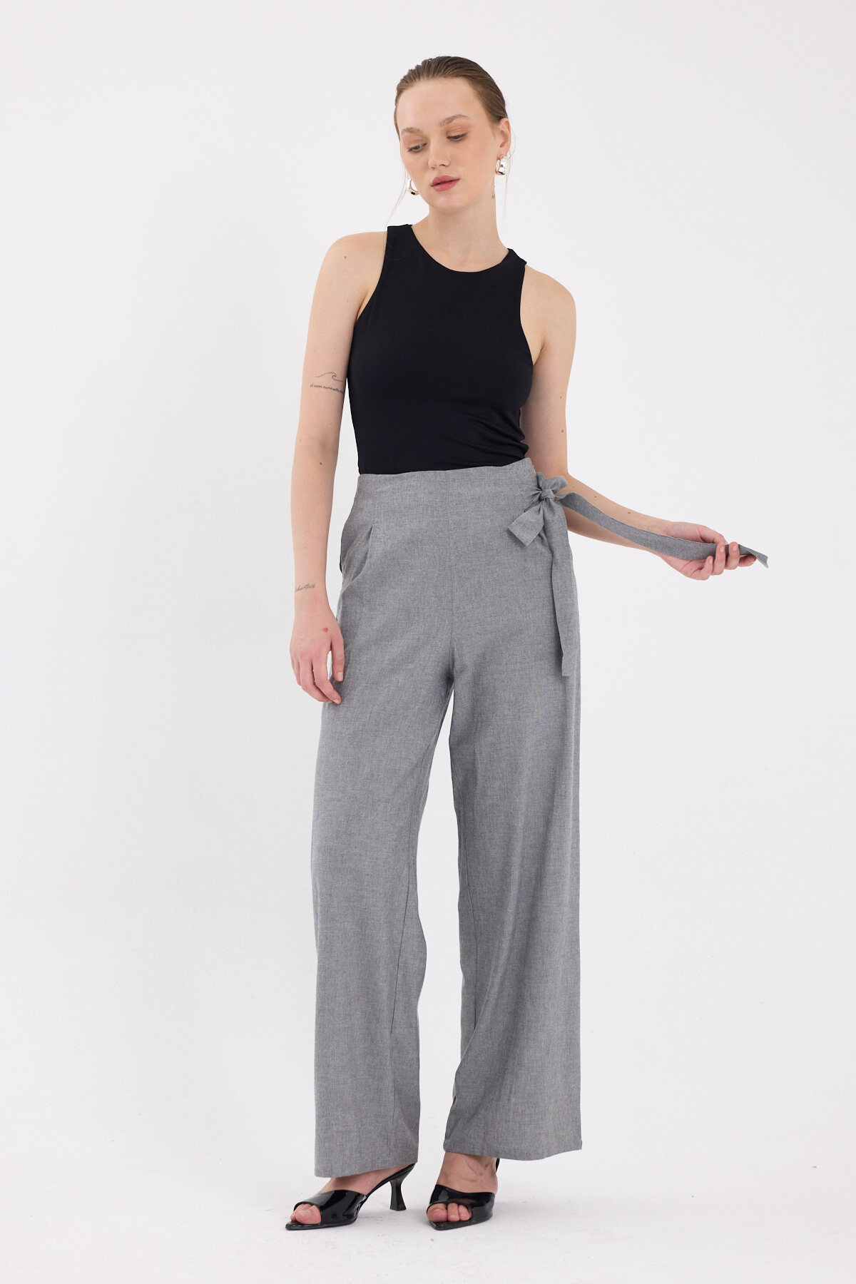 Gri Yan Bağlama Detaylı Palazzo Kadın Pantolon 4779A