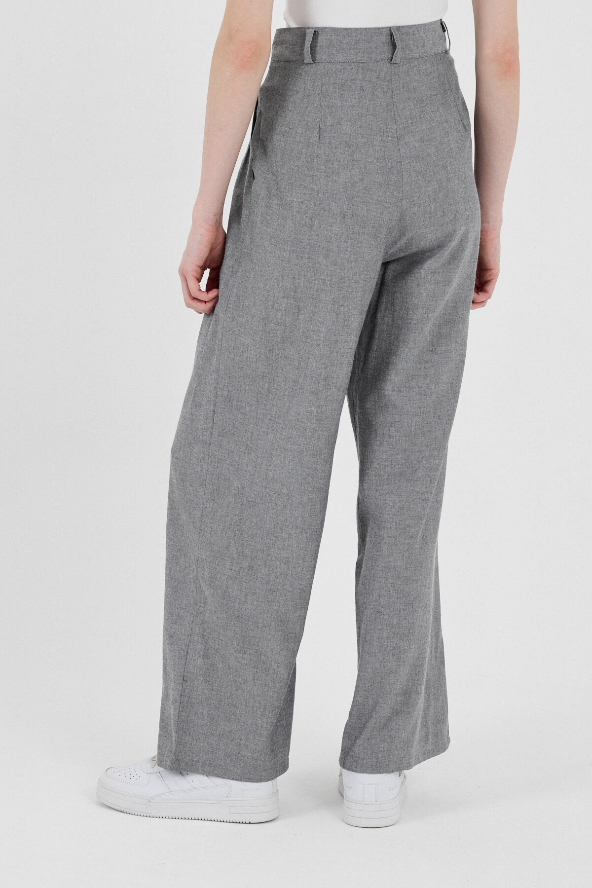 Gri Yüksek Bel Cırt Kapama Detaylı Pamuklu Palazzo Pantolon 8062A