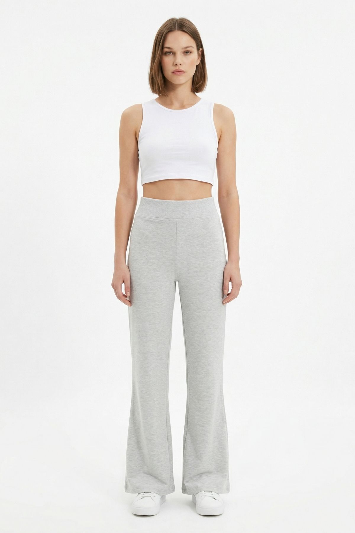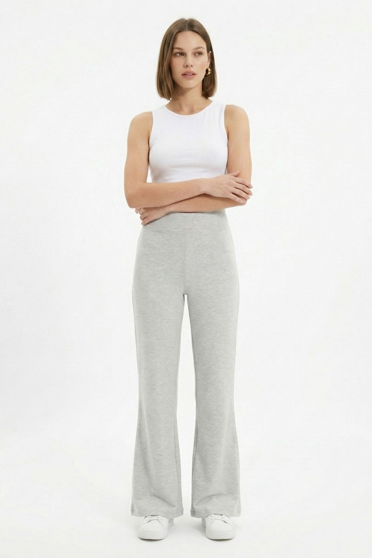 Gri Yüksek Bel İspanyol Paça Tayt 0241