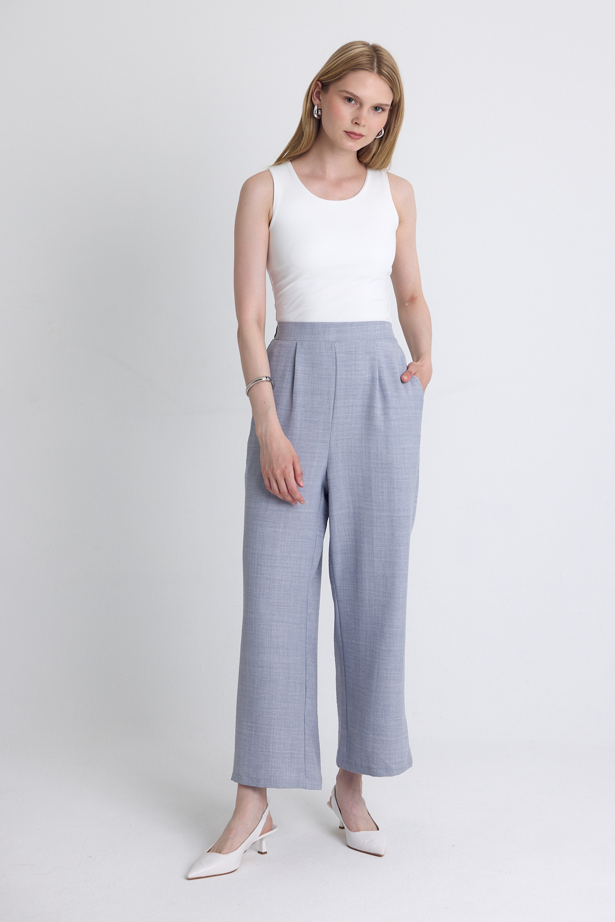 Vizon Pileli Geniş Paça Pantolon 3867