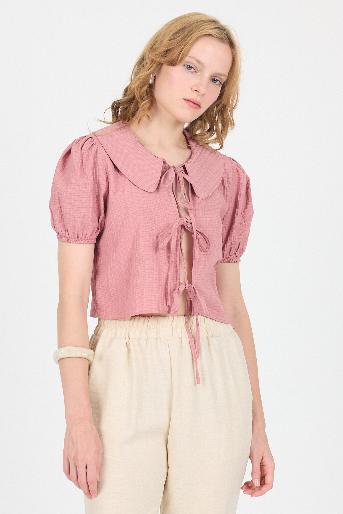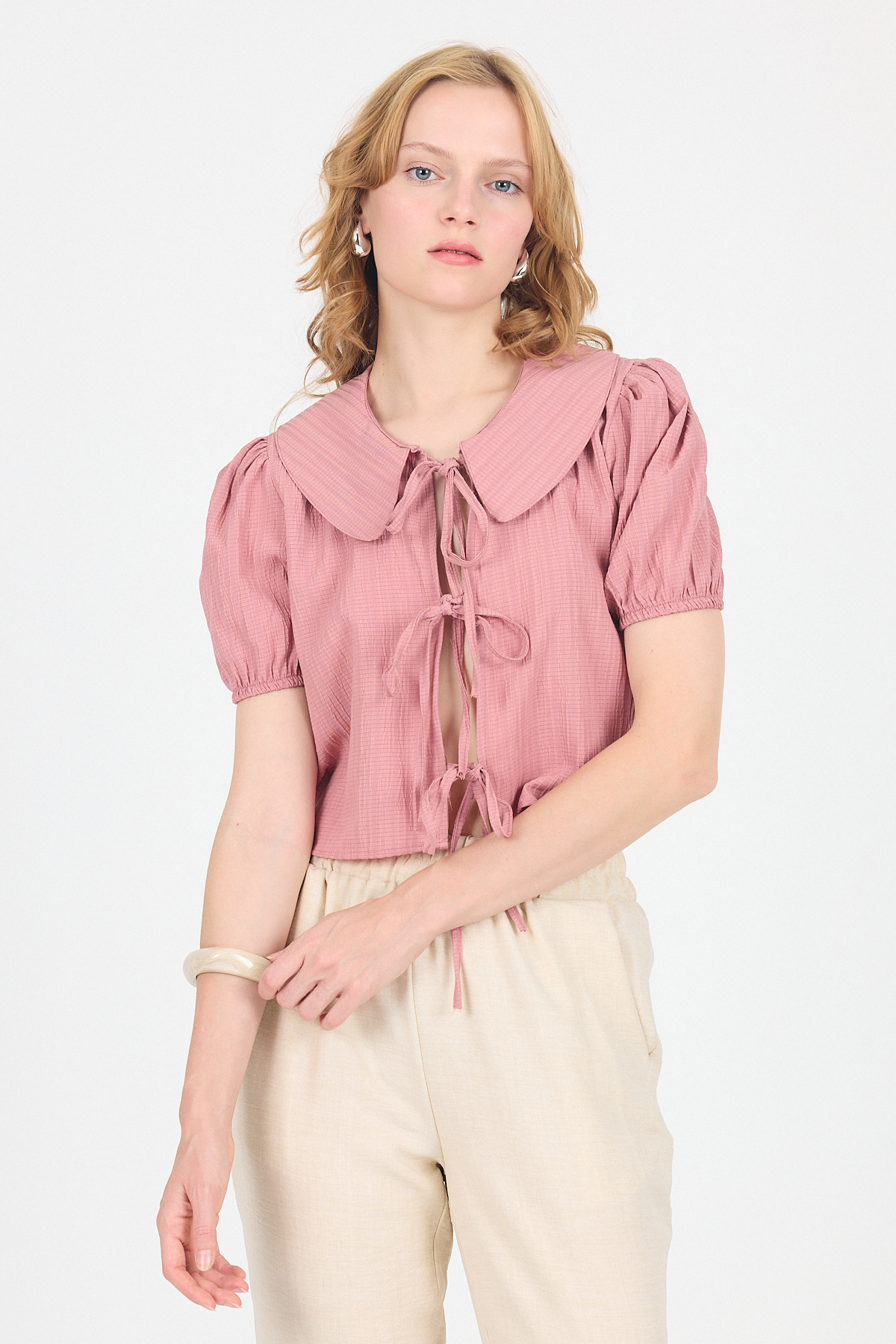 Gül Bağlama Detaylı Bebe Yaka Crop Bluz 8064