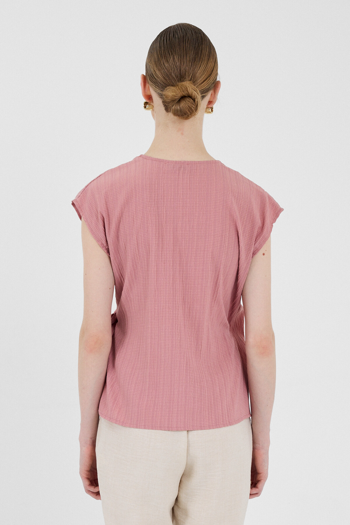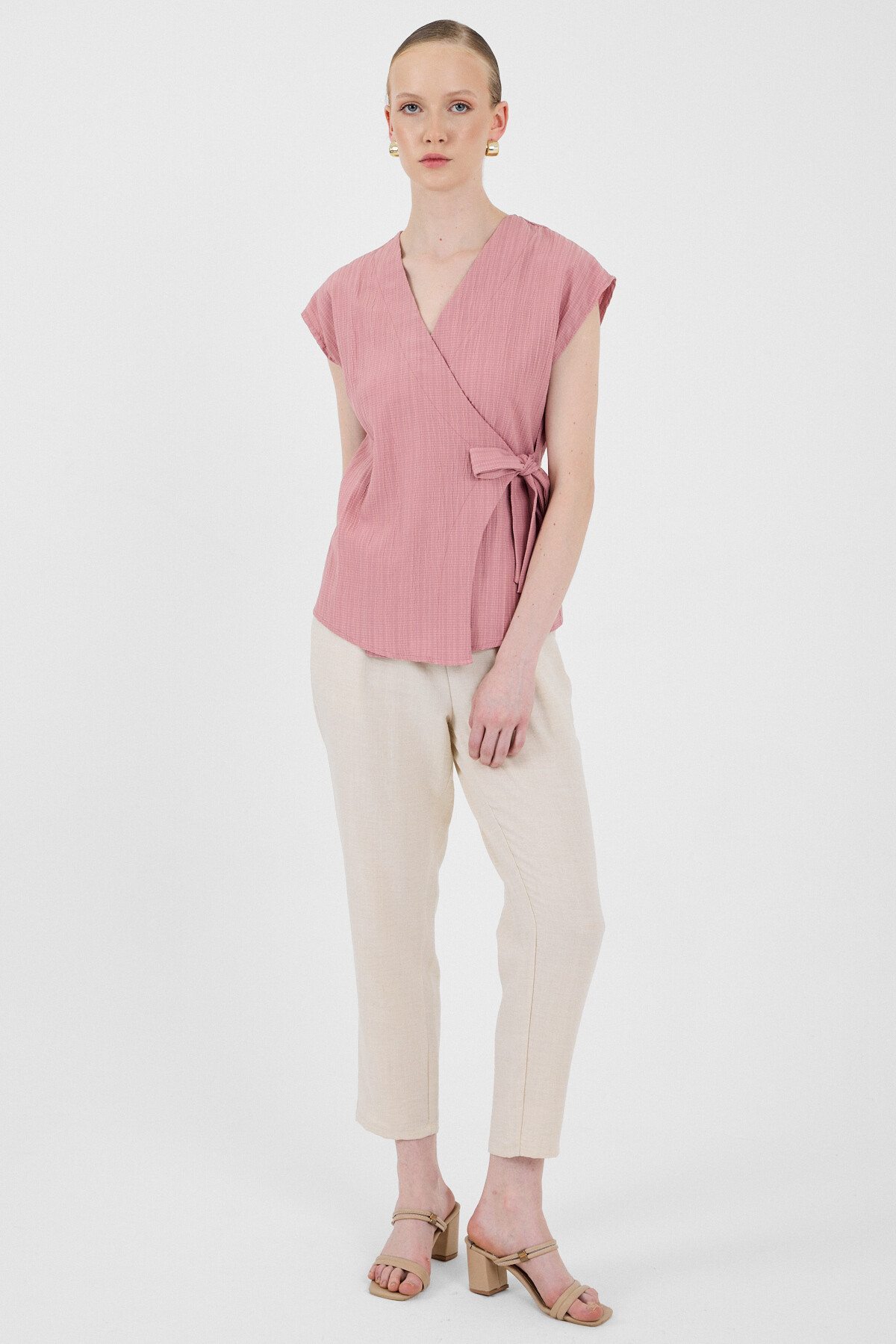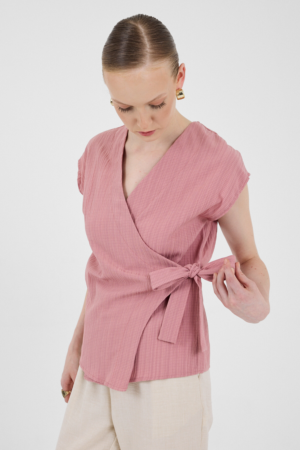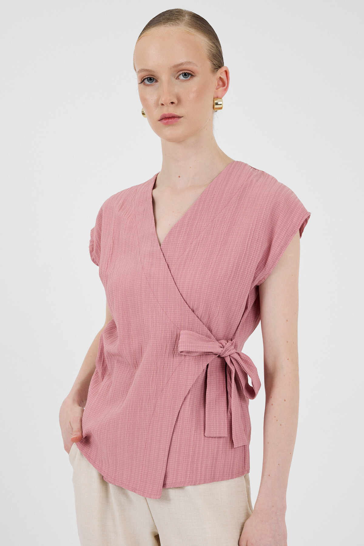 Gül Kruvaze Yaka Bağlama Detaylı Bluz 8025A