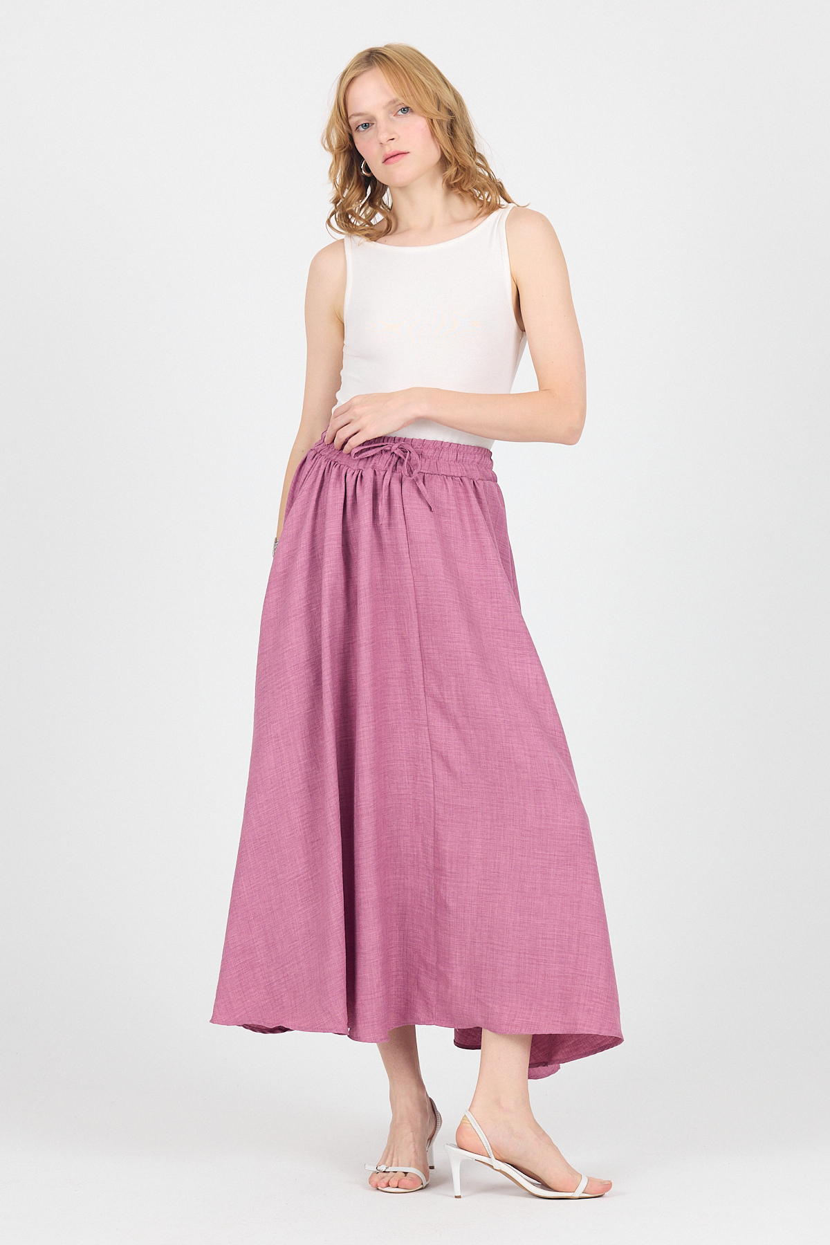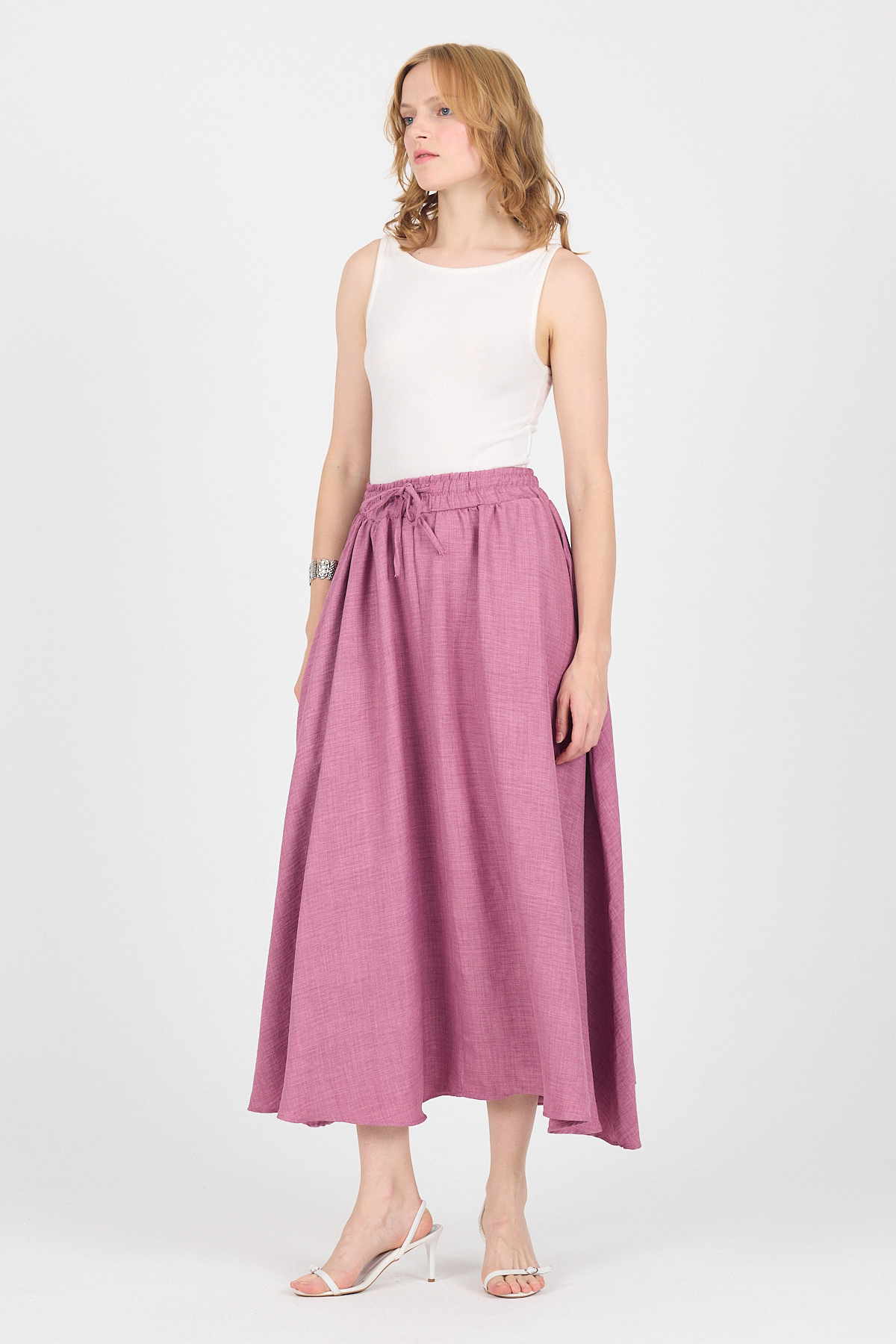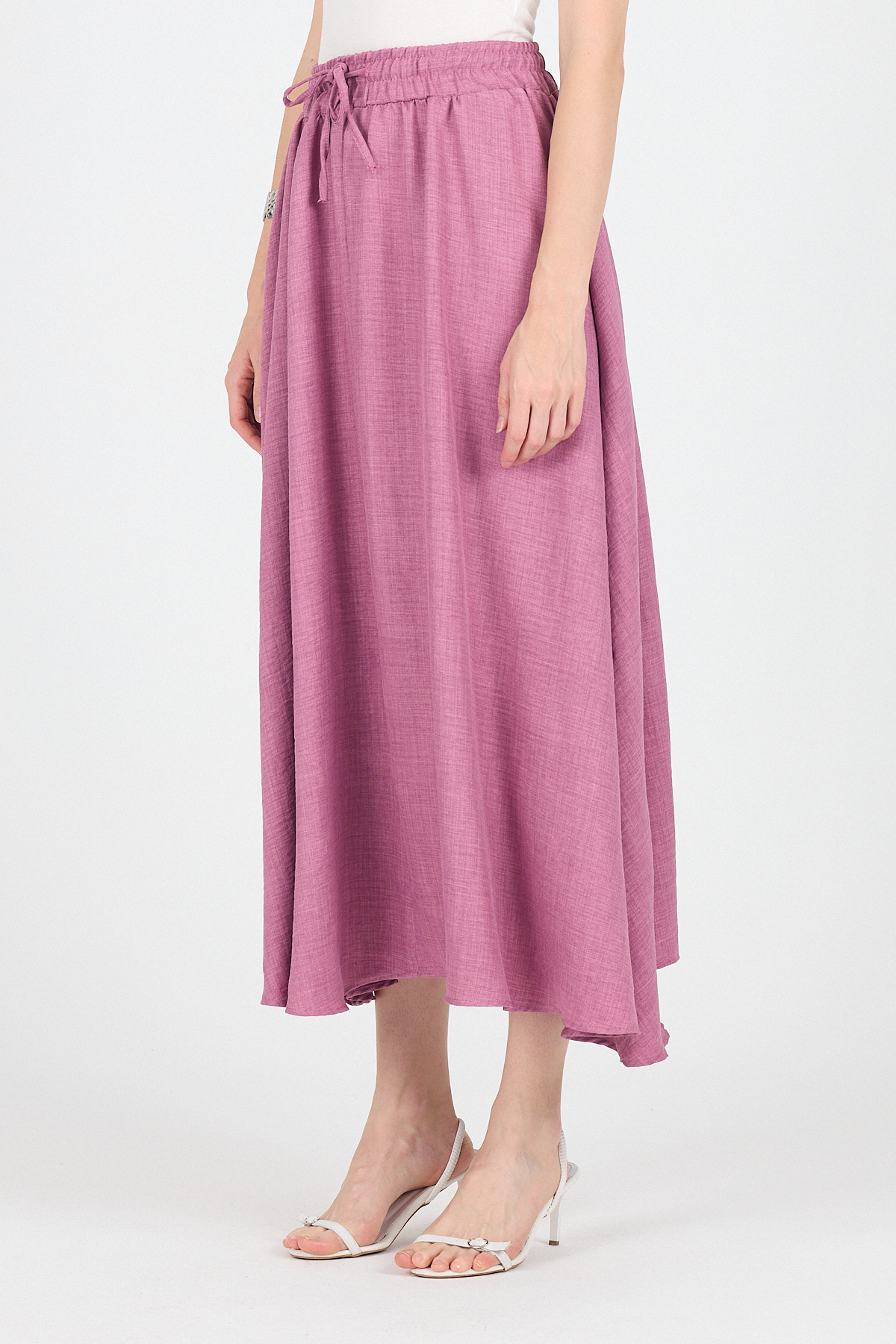 Gül Pamuklu Çan Kesim Bağcıklı Uzun Etek 8024