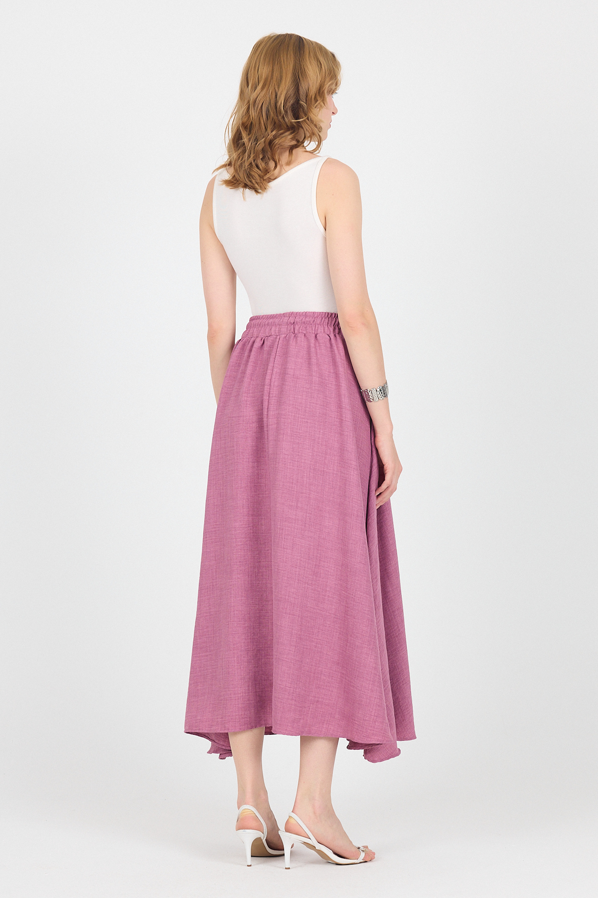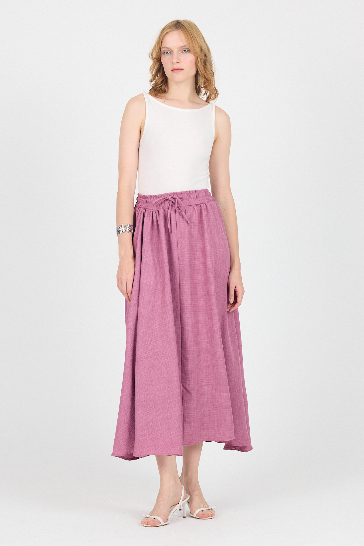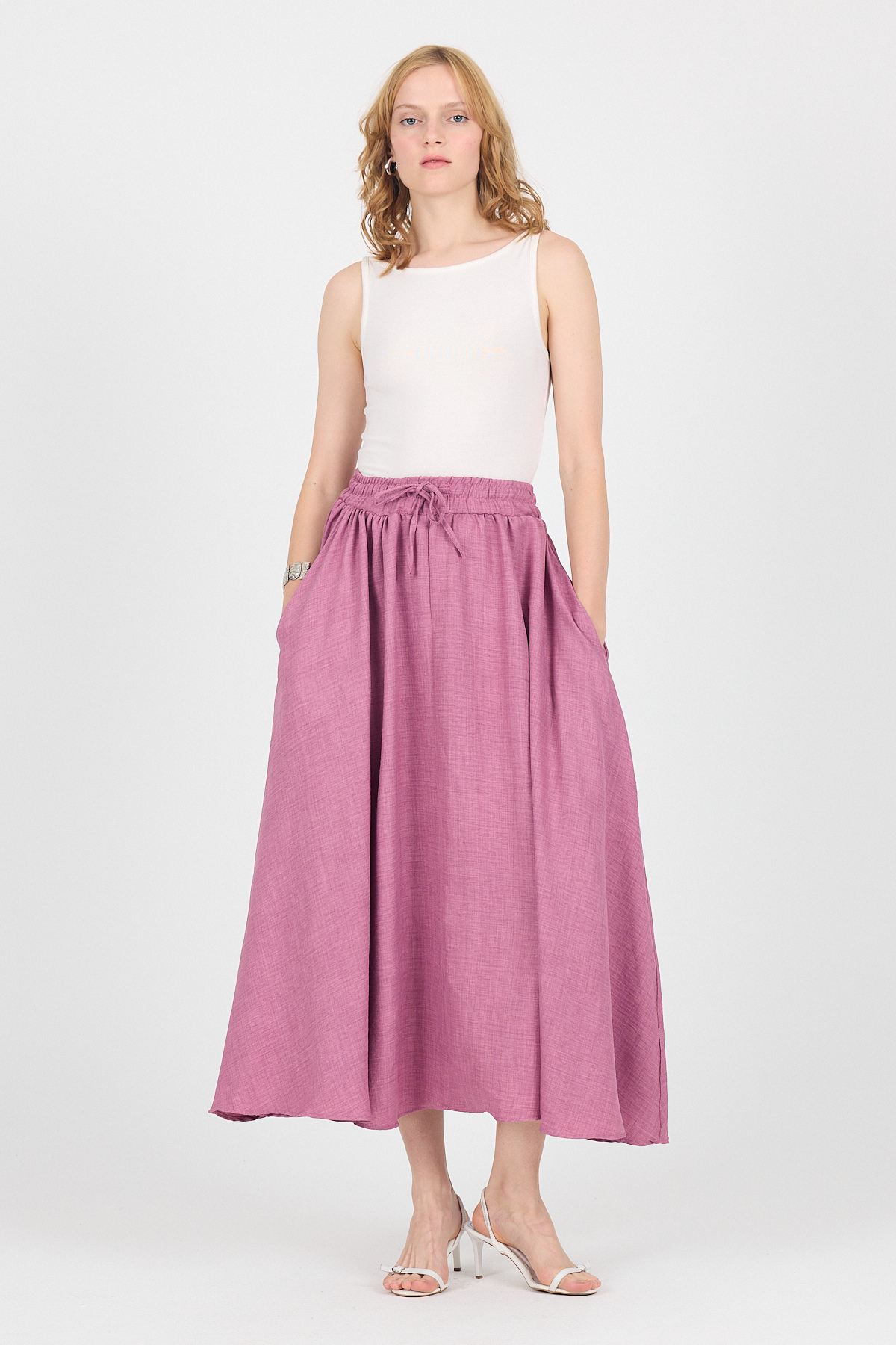 Gül Pamuklu Çan Kesim Bağcıklı Uzun Etek 8024