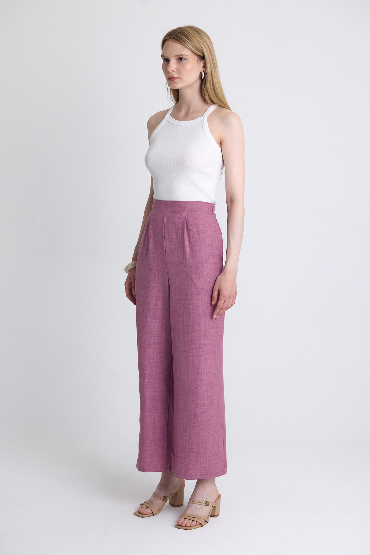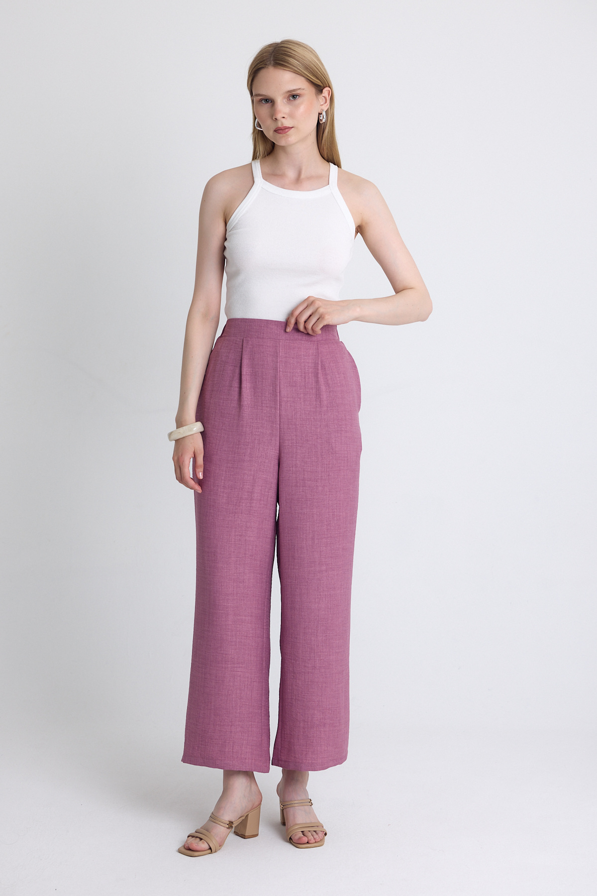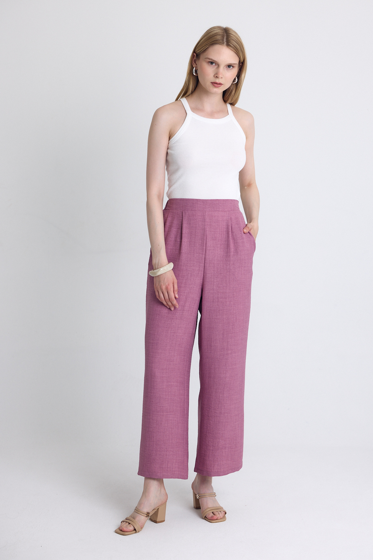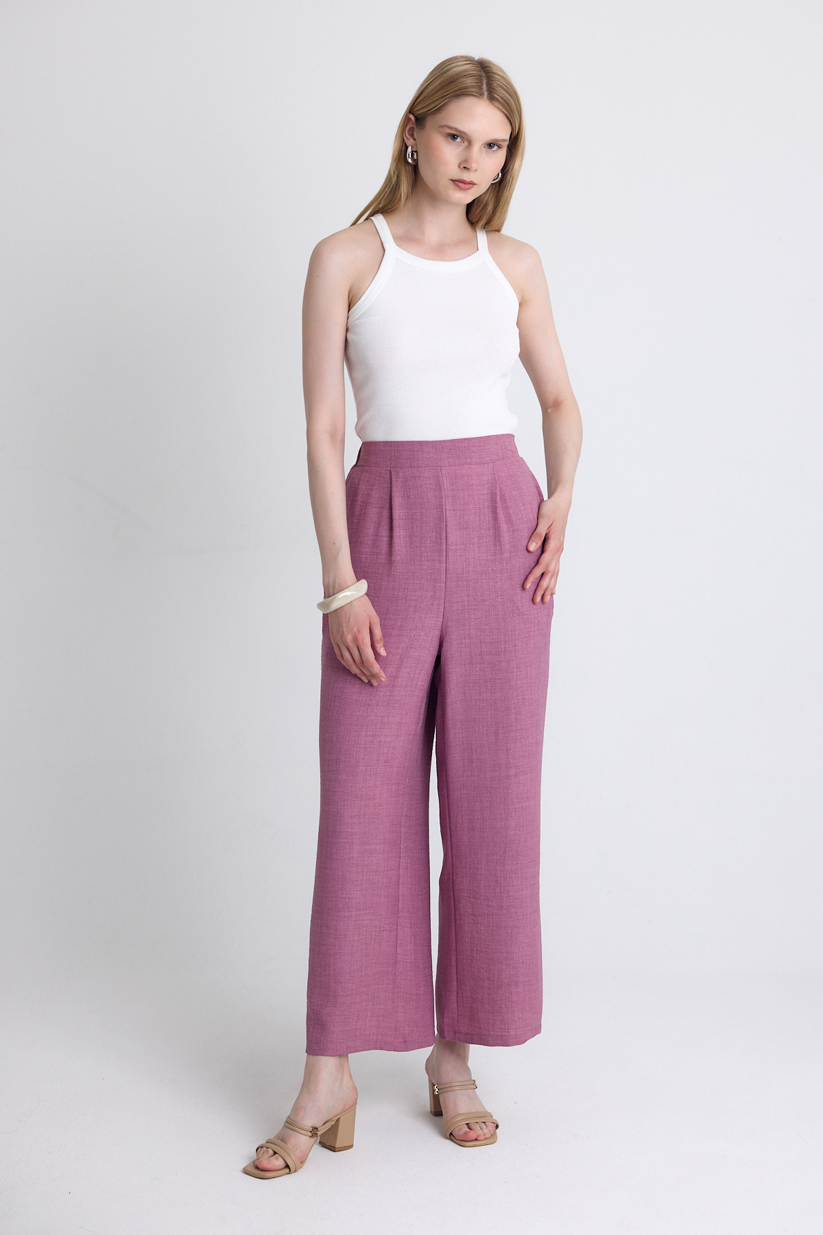 Mürdüm Pileli Geniş Paça Pantolon 3867 - RAYS Mürdüm Pileli Geniş Paça Pantolon 3867 - RAYS (1)