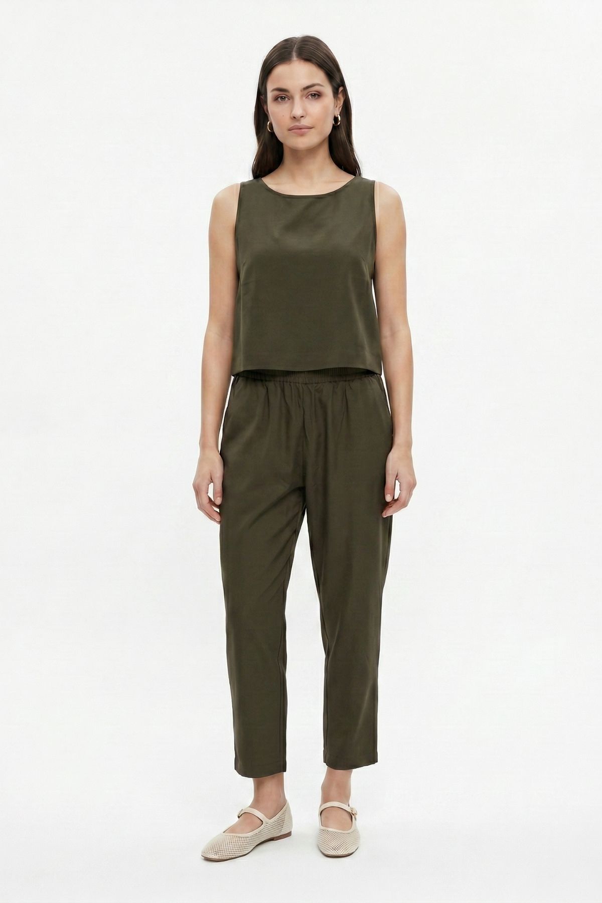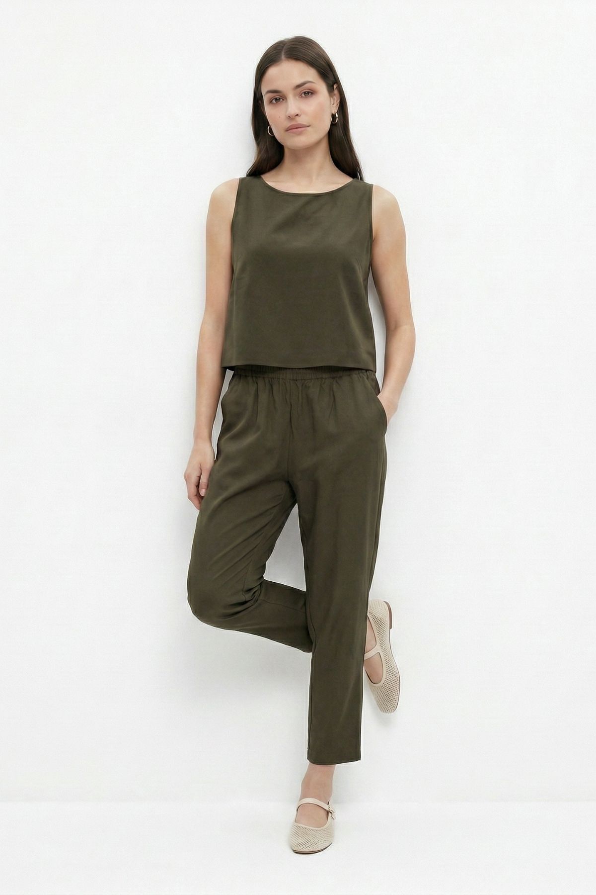 Haki 34007 Bisiklet Yaka Sıfır Kol Pantolon Takım