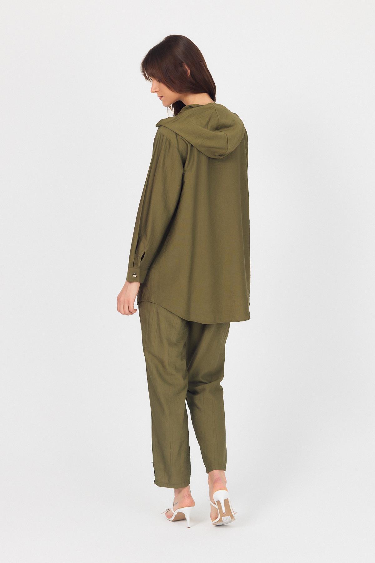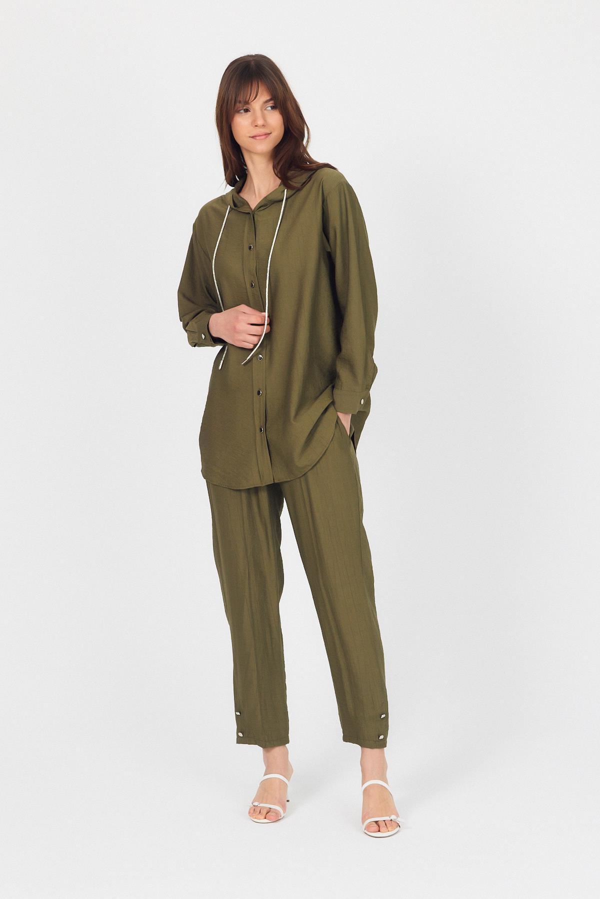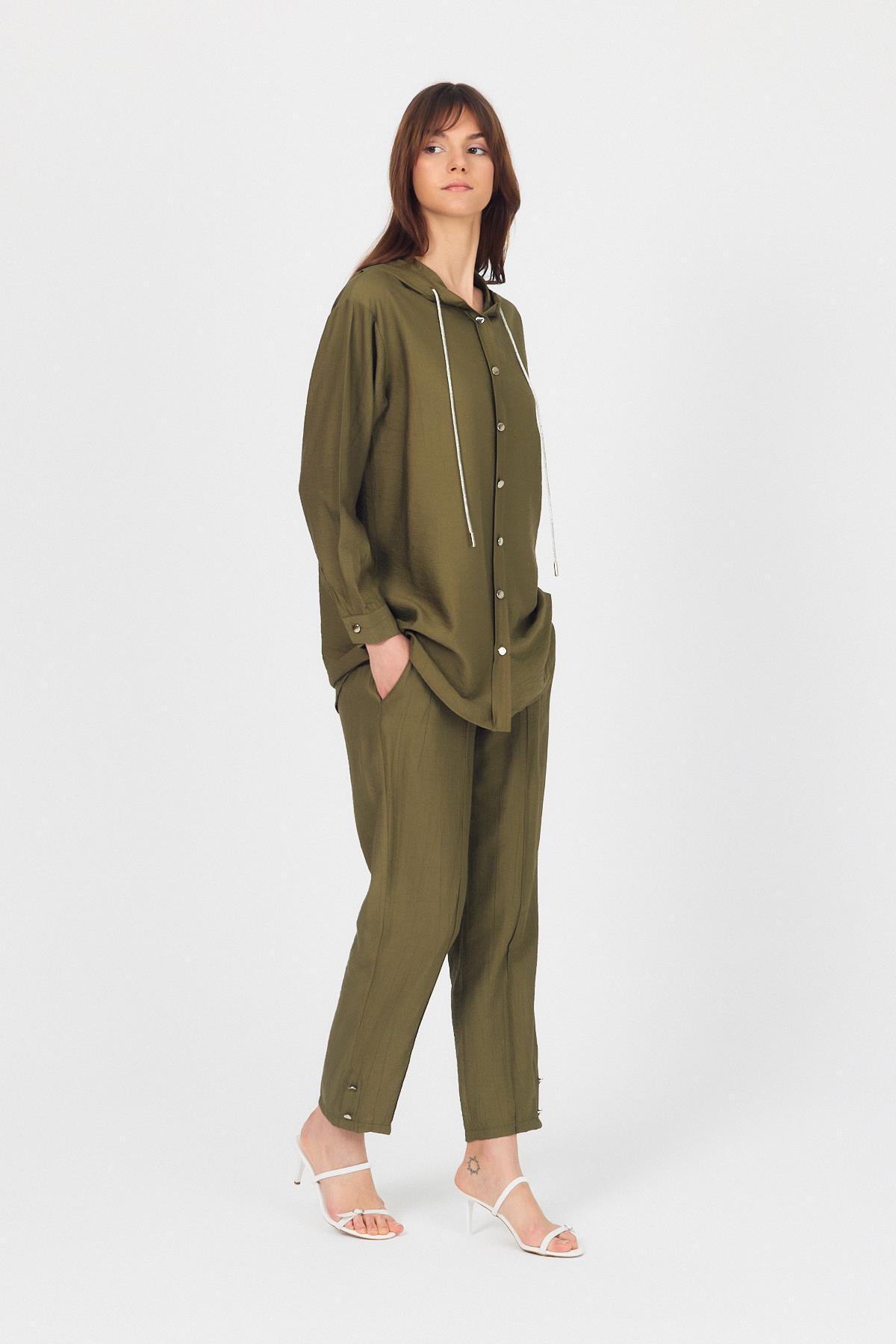 Haki Kapüşonlu Düğmeli İkili Takım 4585A