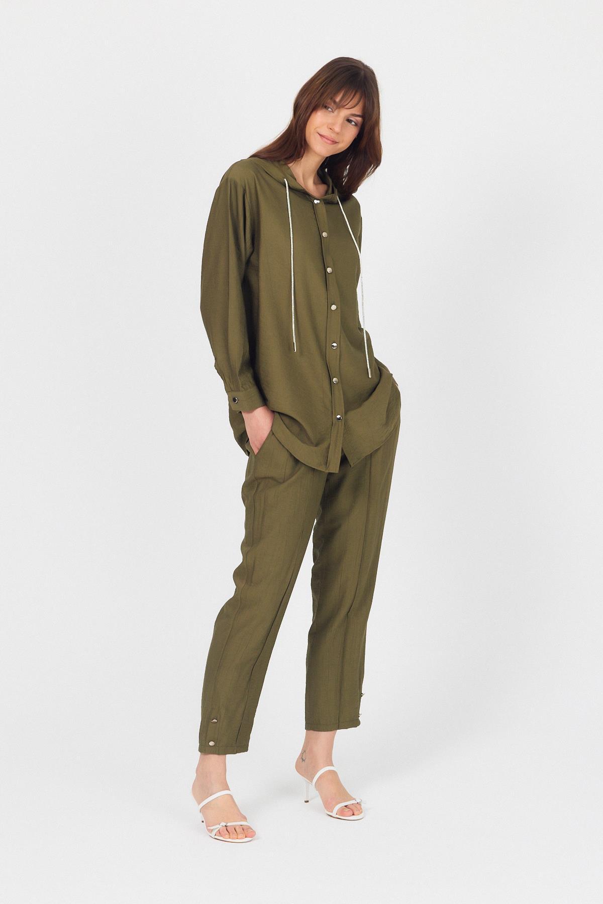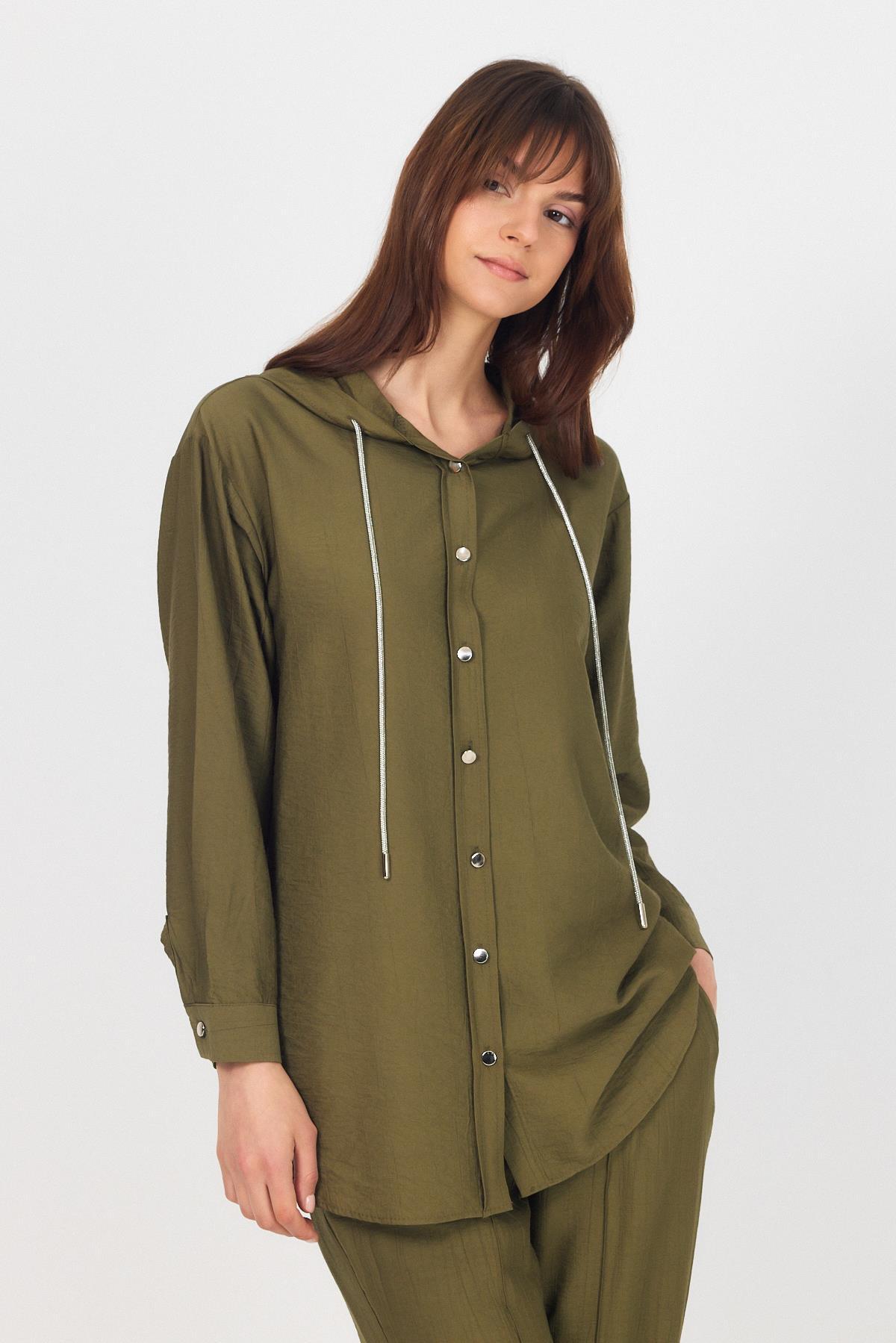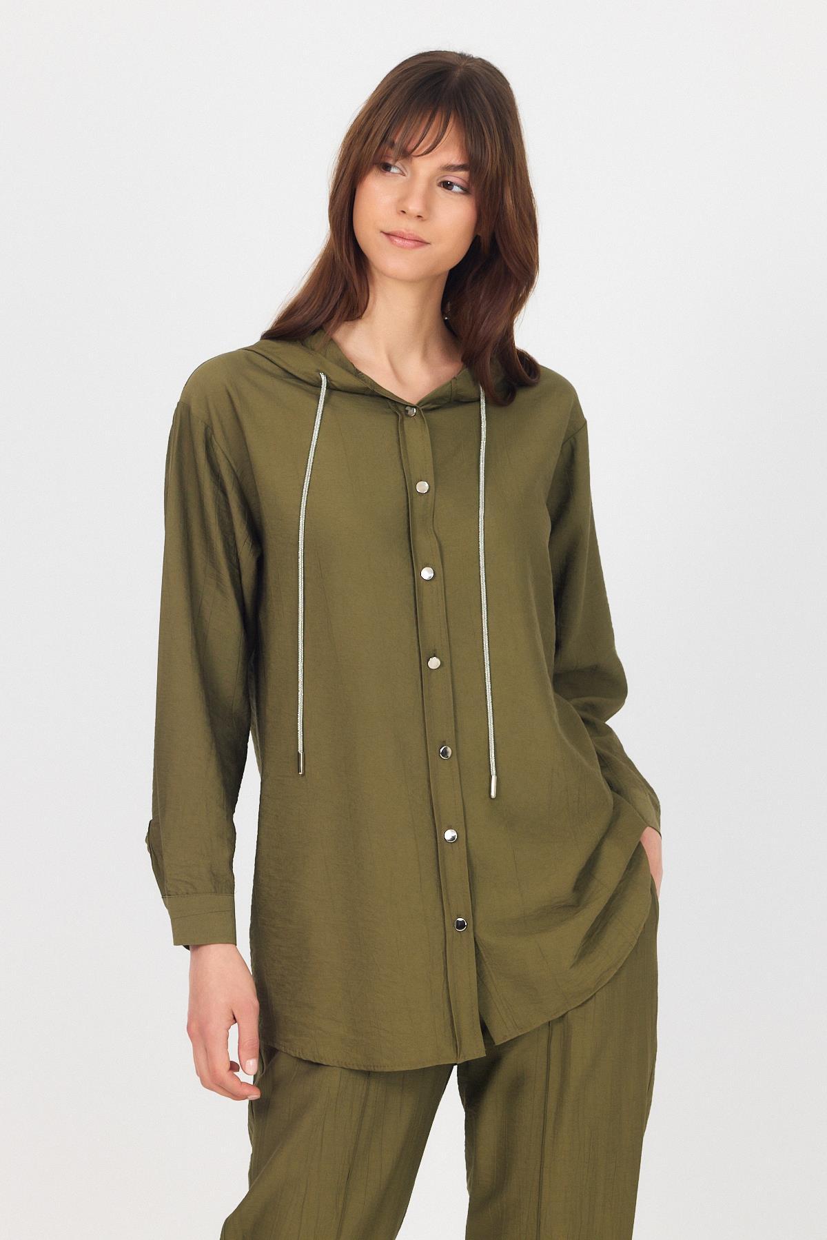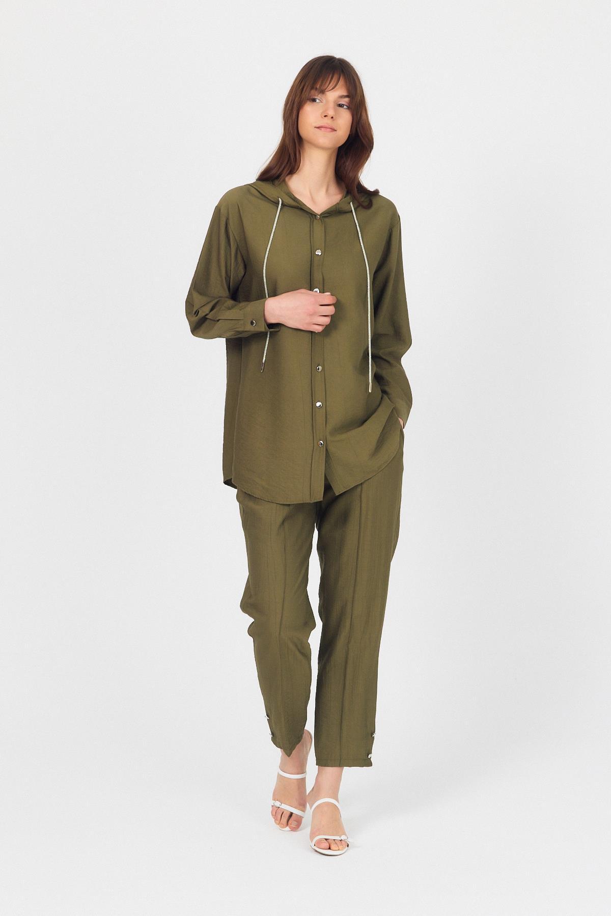 Haki Kapüşonlu Düğmeli İkili Takım 4585A