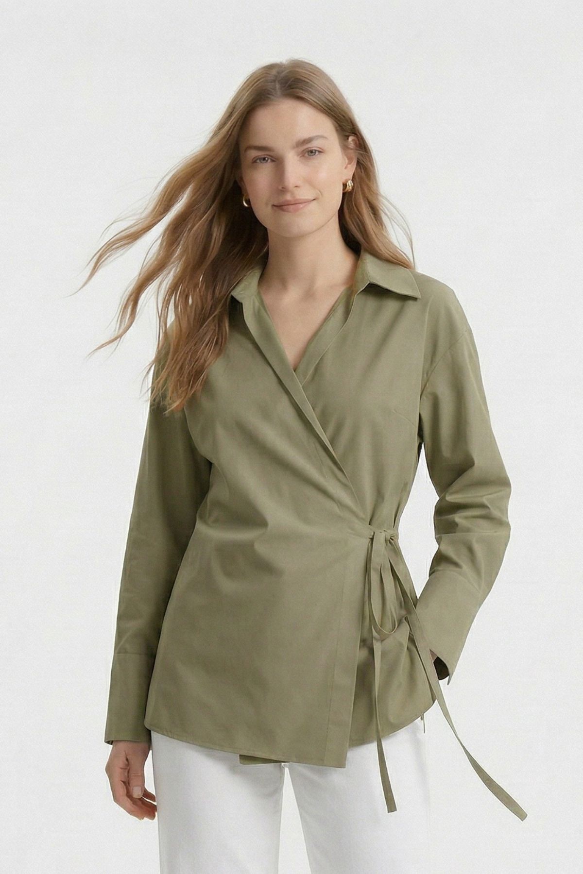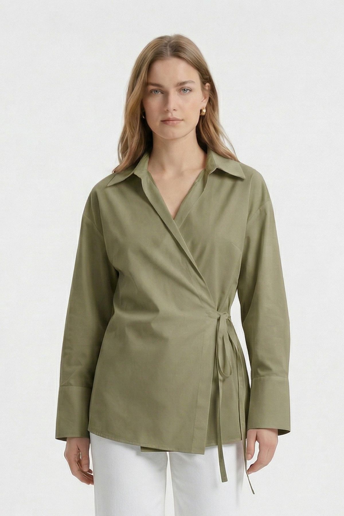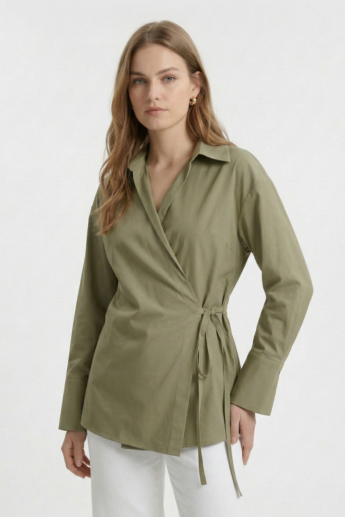Haki Kol Yırtmaçlı Yandan Bağlamalı Gömlek 5257