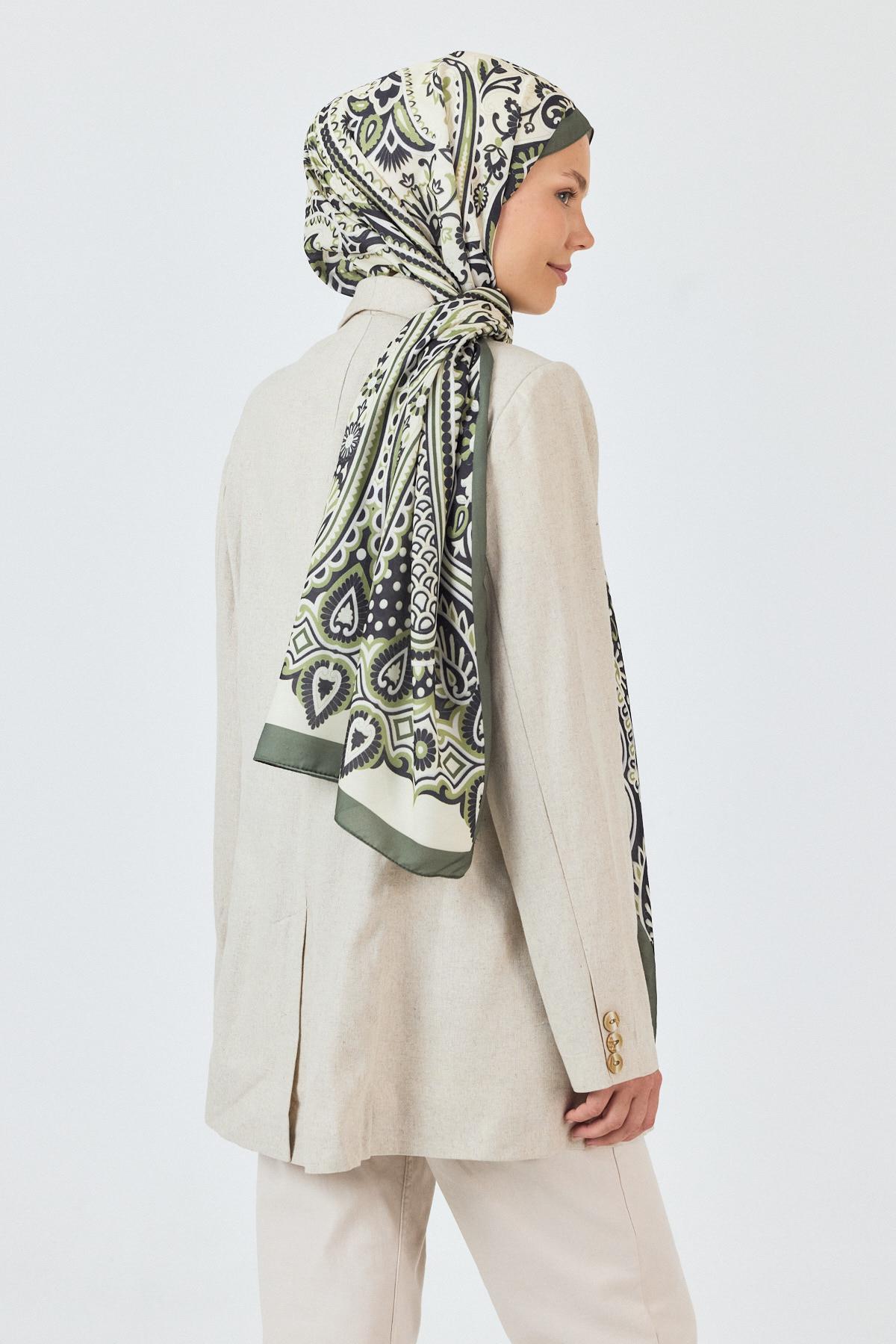 Haki-Siyah Retro Desenli Şal 5684