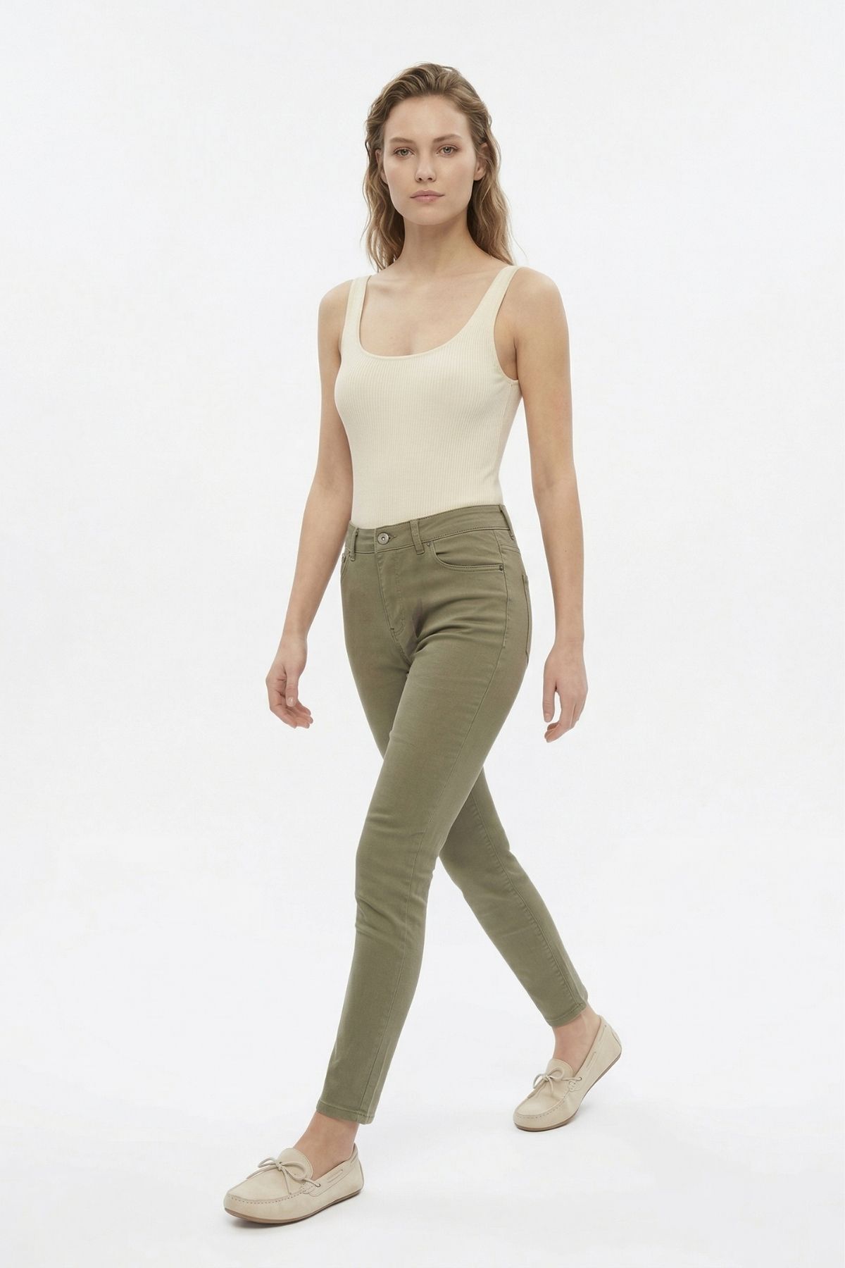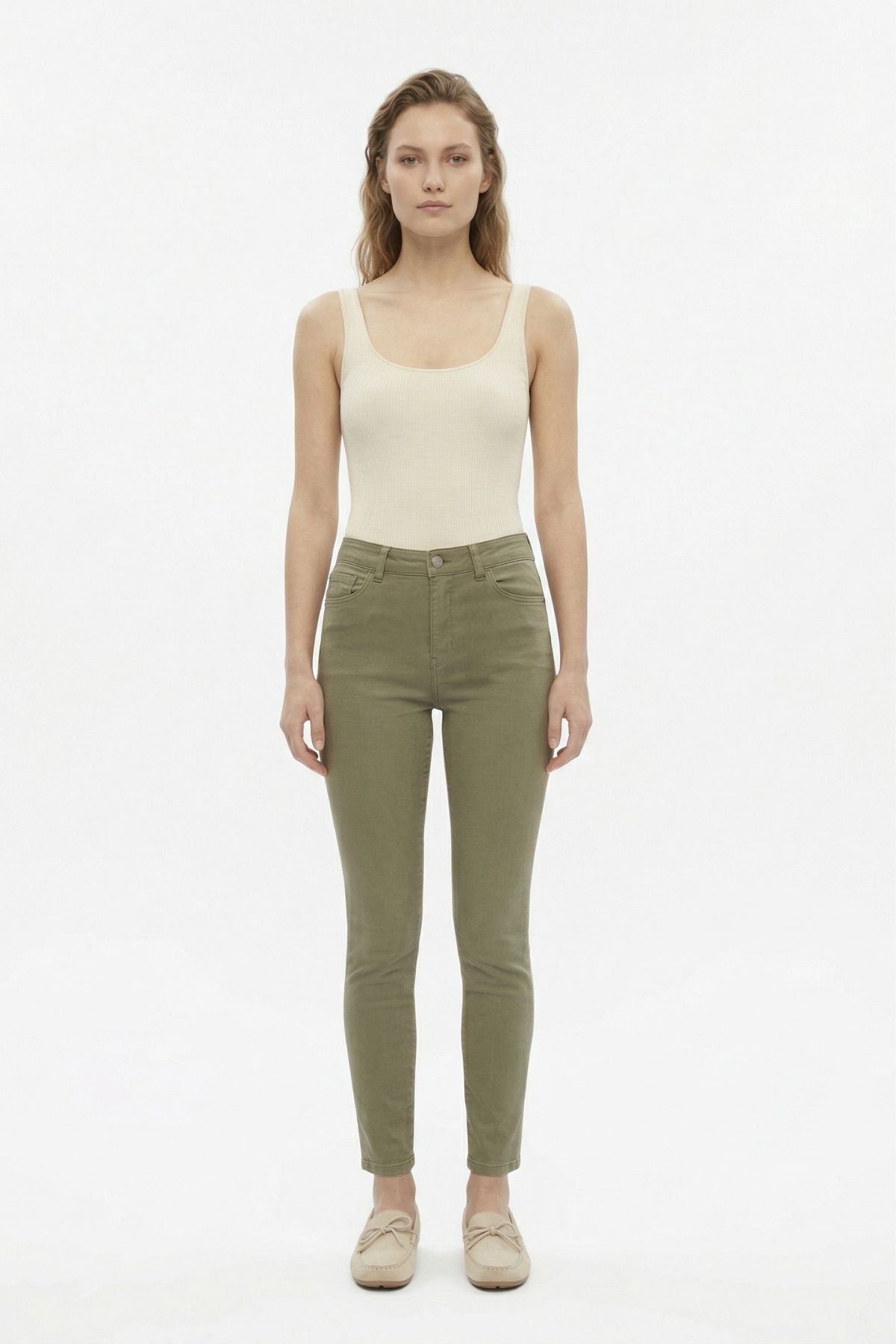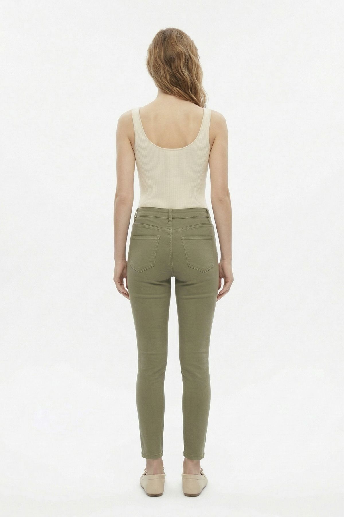 Haki Yüksek Bel Likralı Pantolon 4206