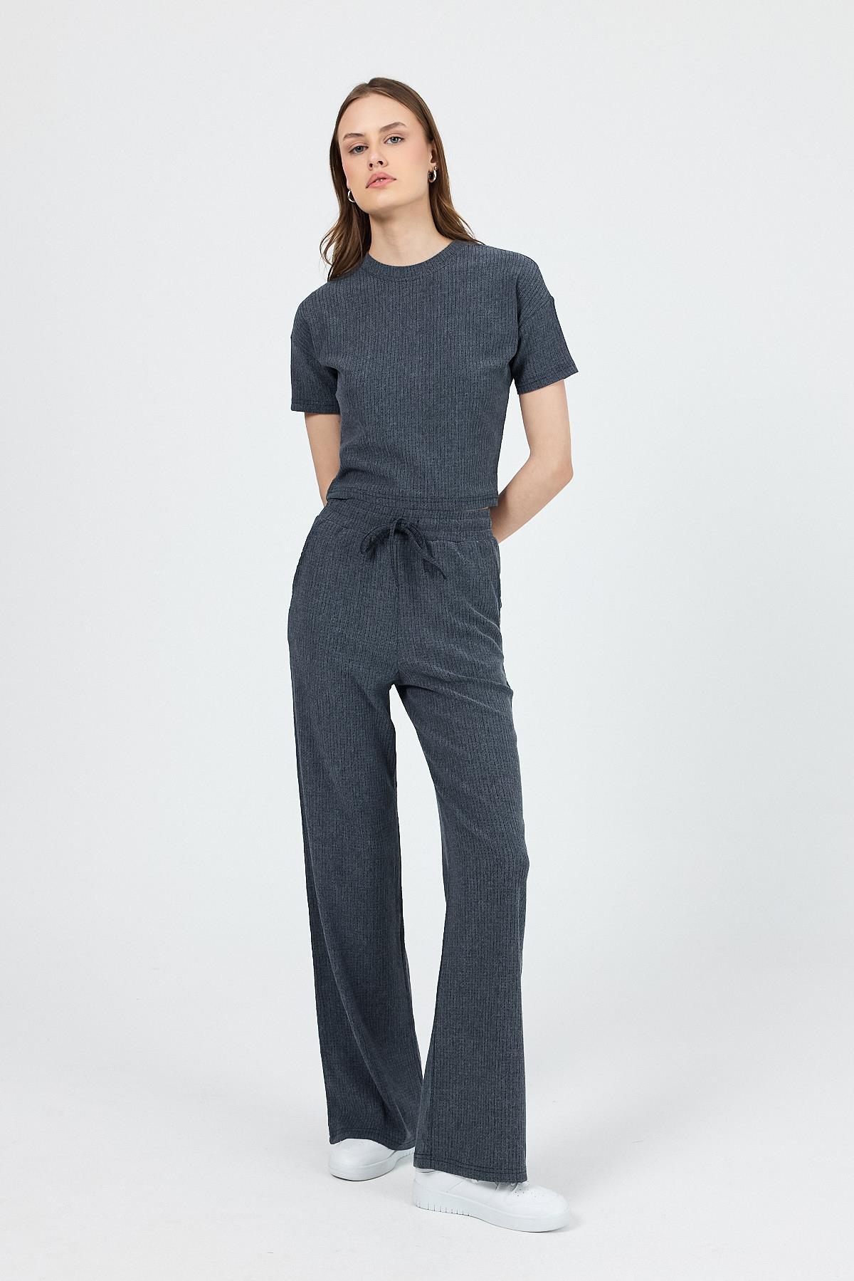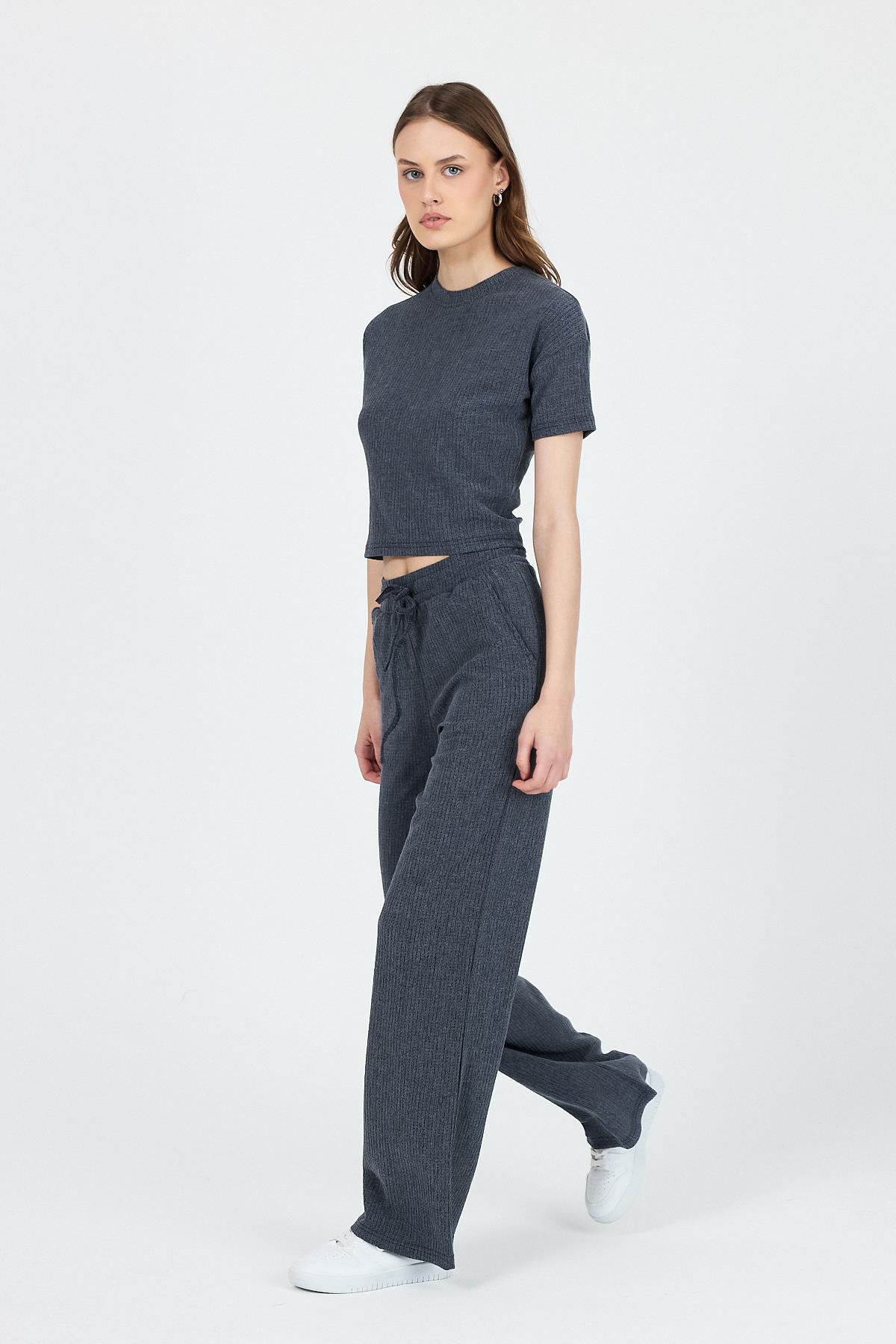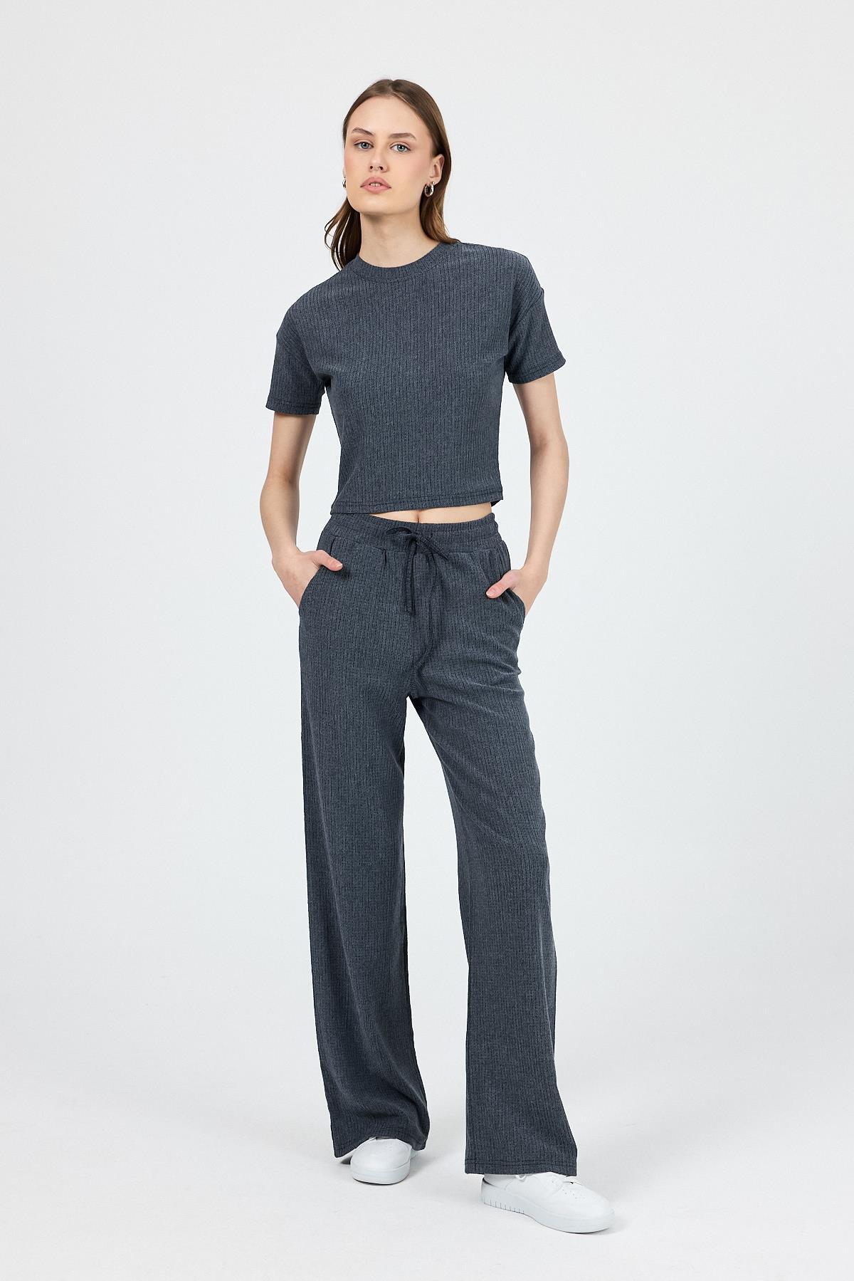 İndigo Bisiklet Yaka Bürümcük Doklu Kumaş Alt Üst Takım 1455