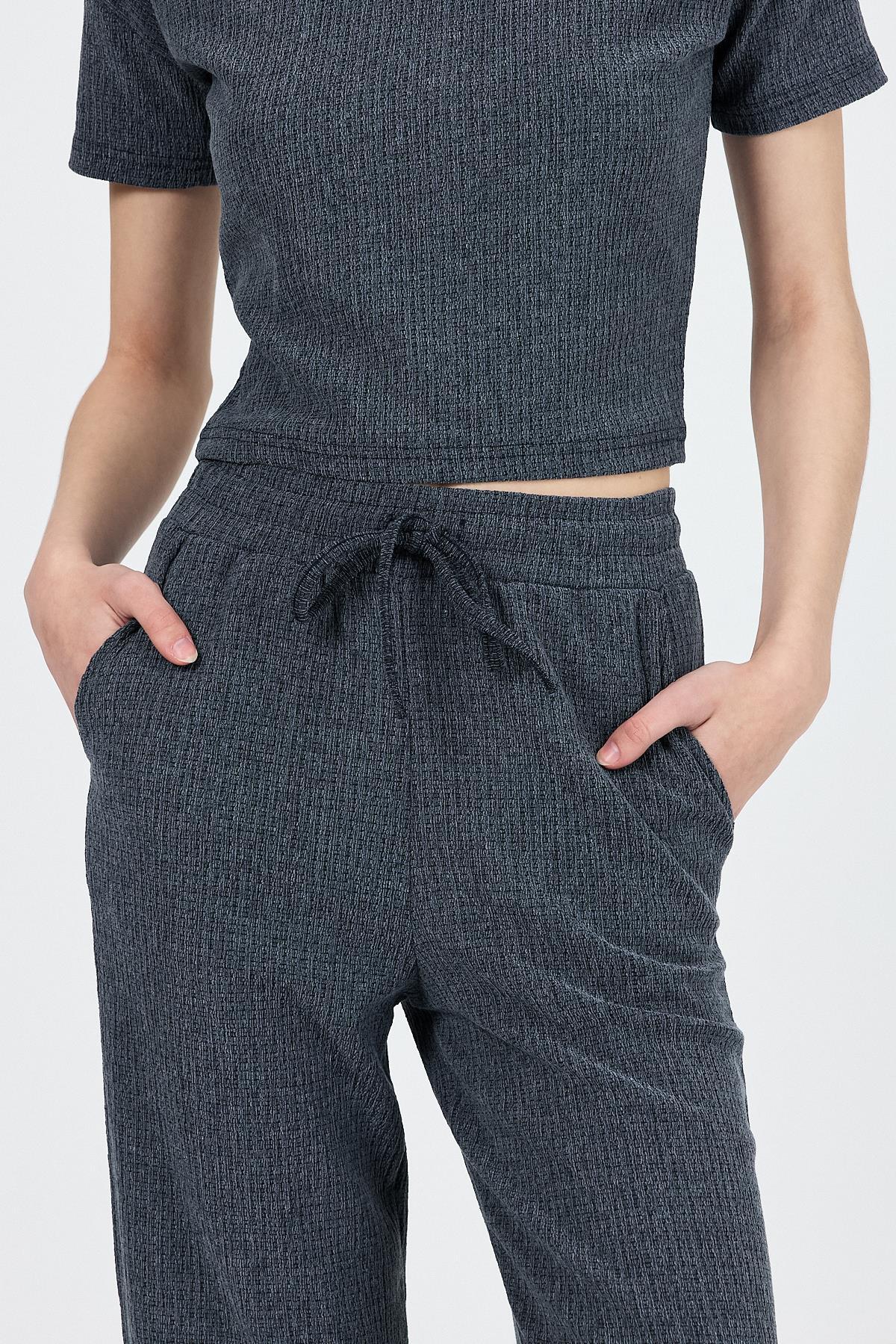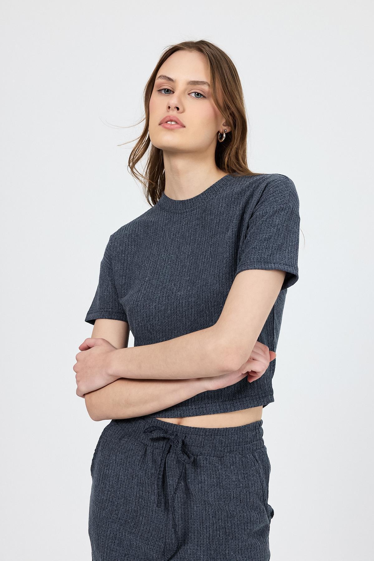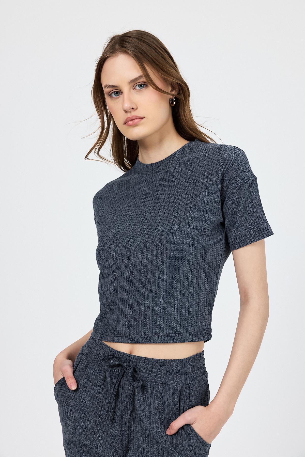 İndigo Bisiklet Yaka Bürümcük Doklu Kumaş Alt Üst Takım 1455