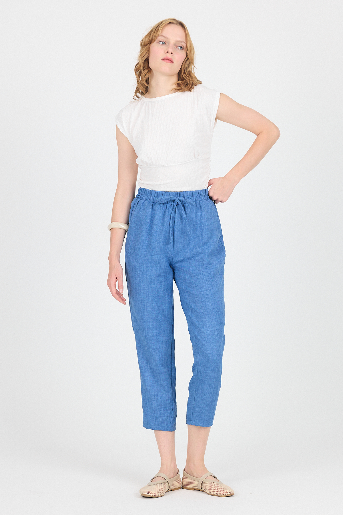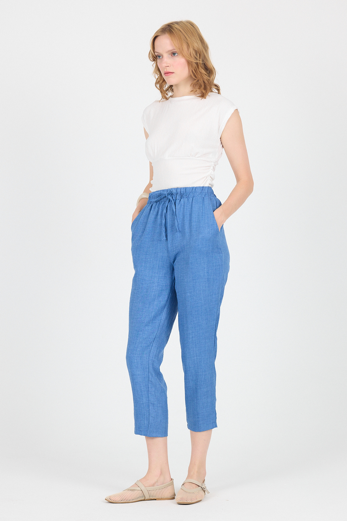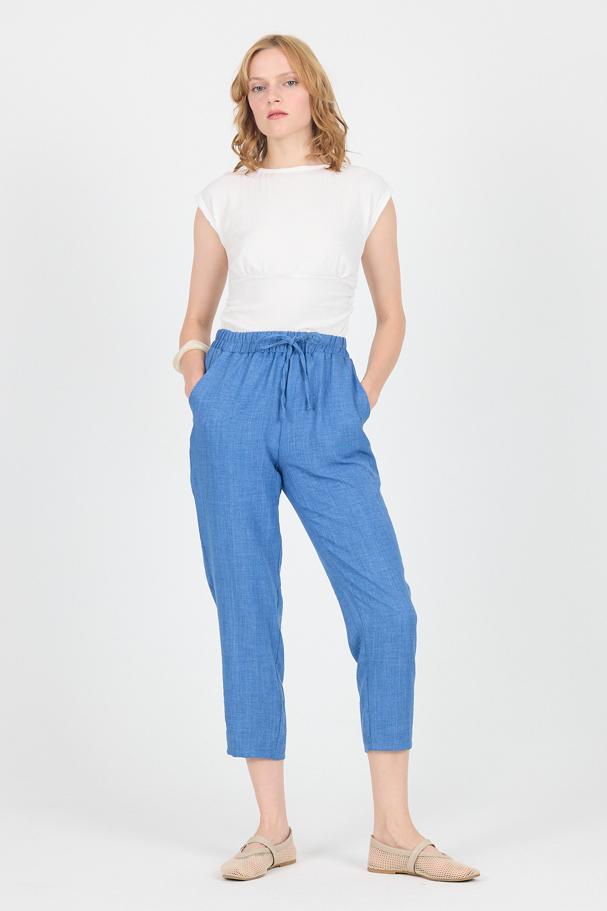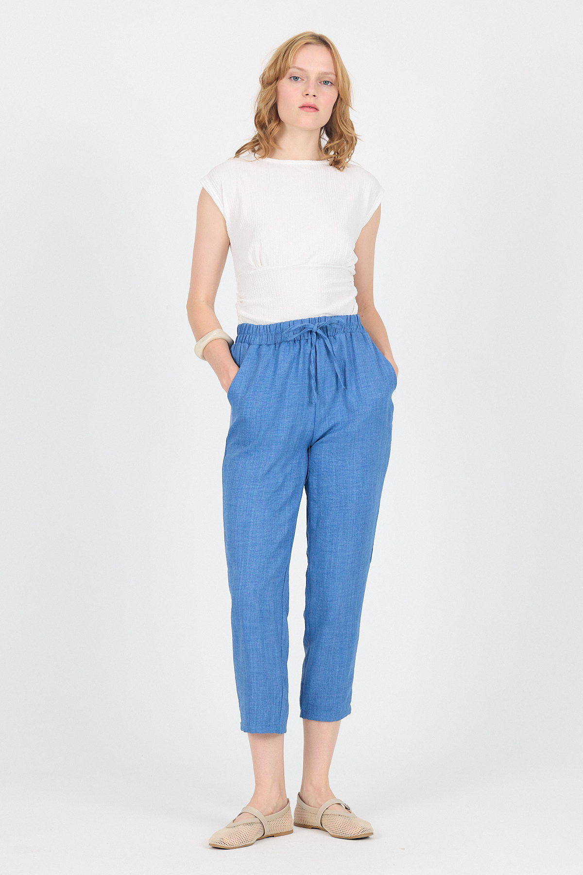 İndigo Pamuklu Bel Lastikli Düz Paça Düz Paça Pantolon 4800