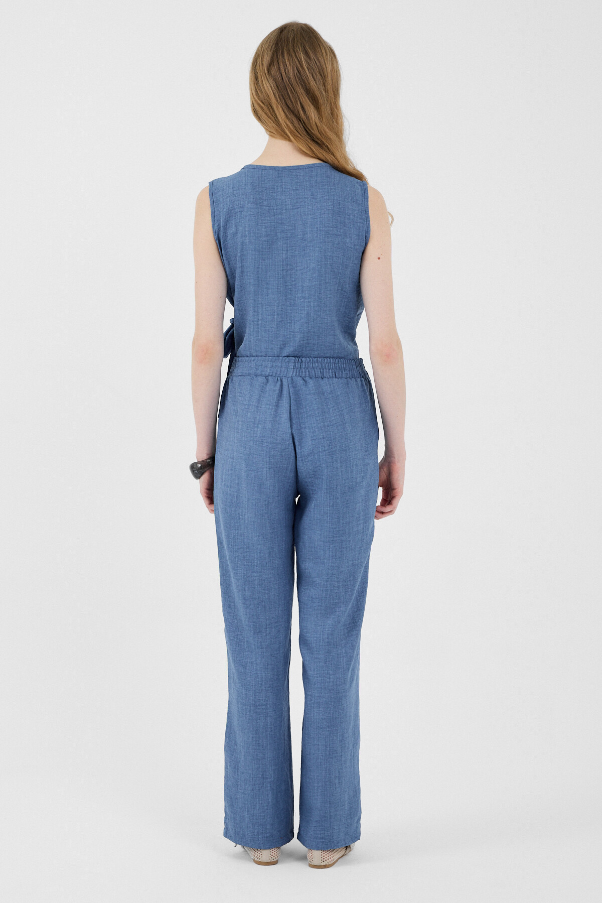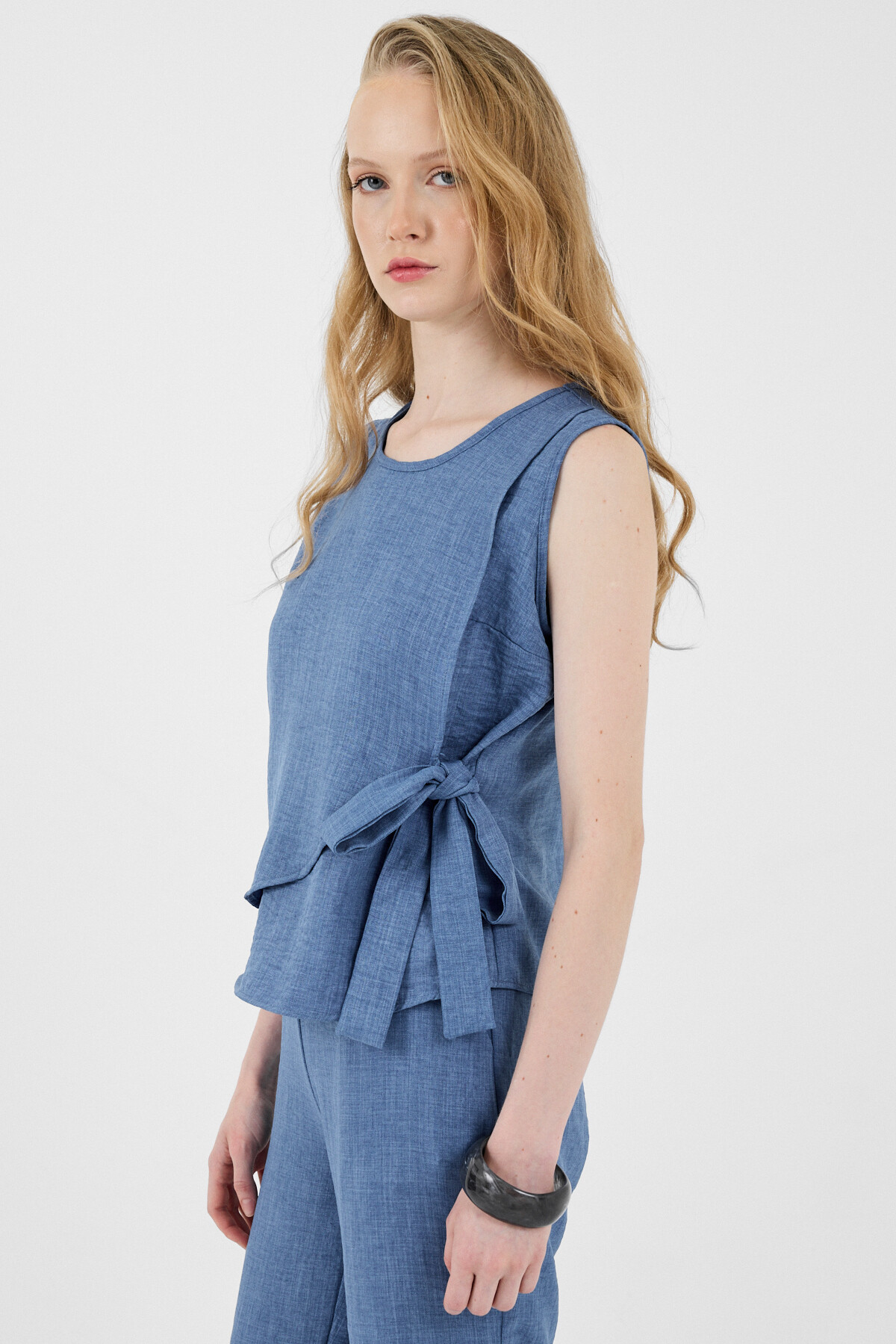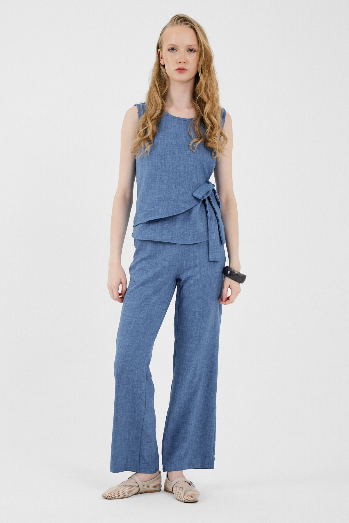 İndigo Pamuklu Yan Bağlama Detaylı İkili Takım 8079A