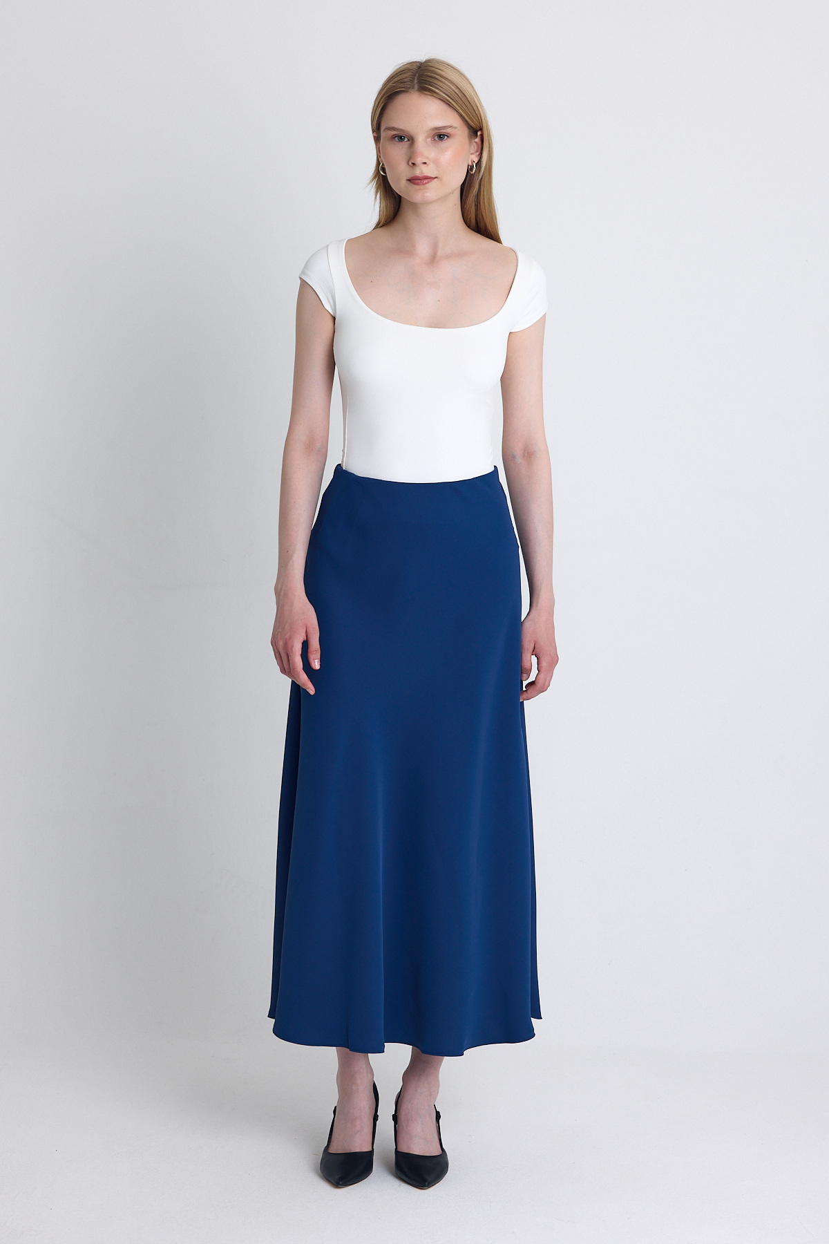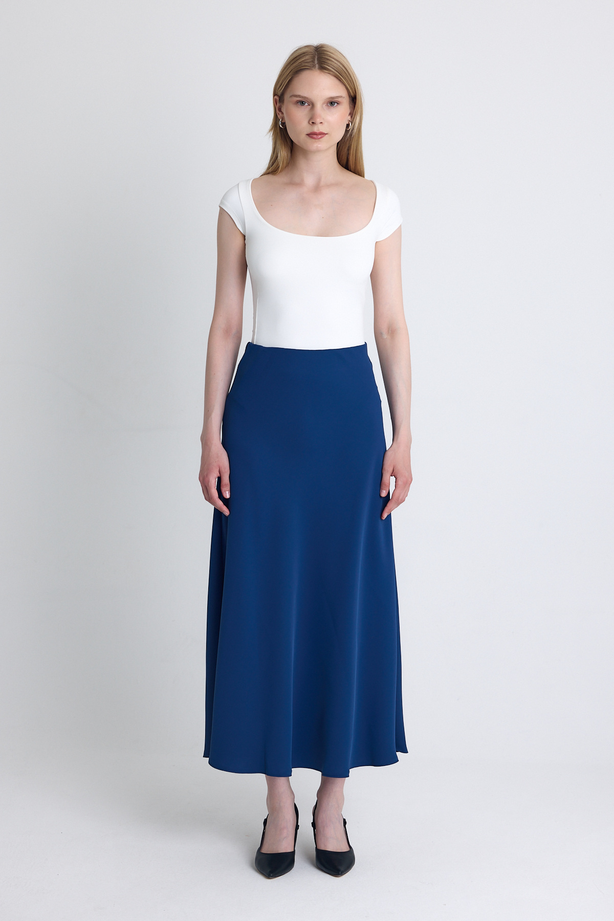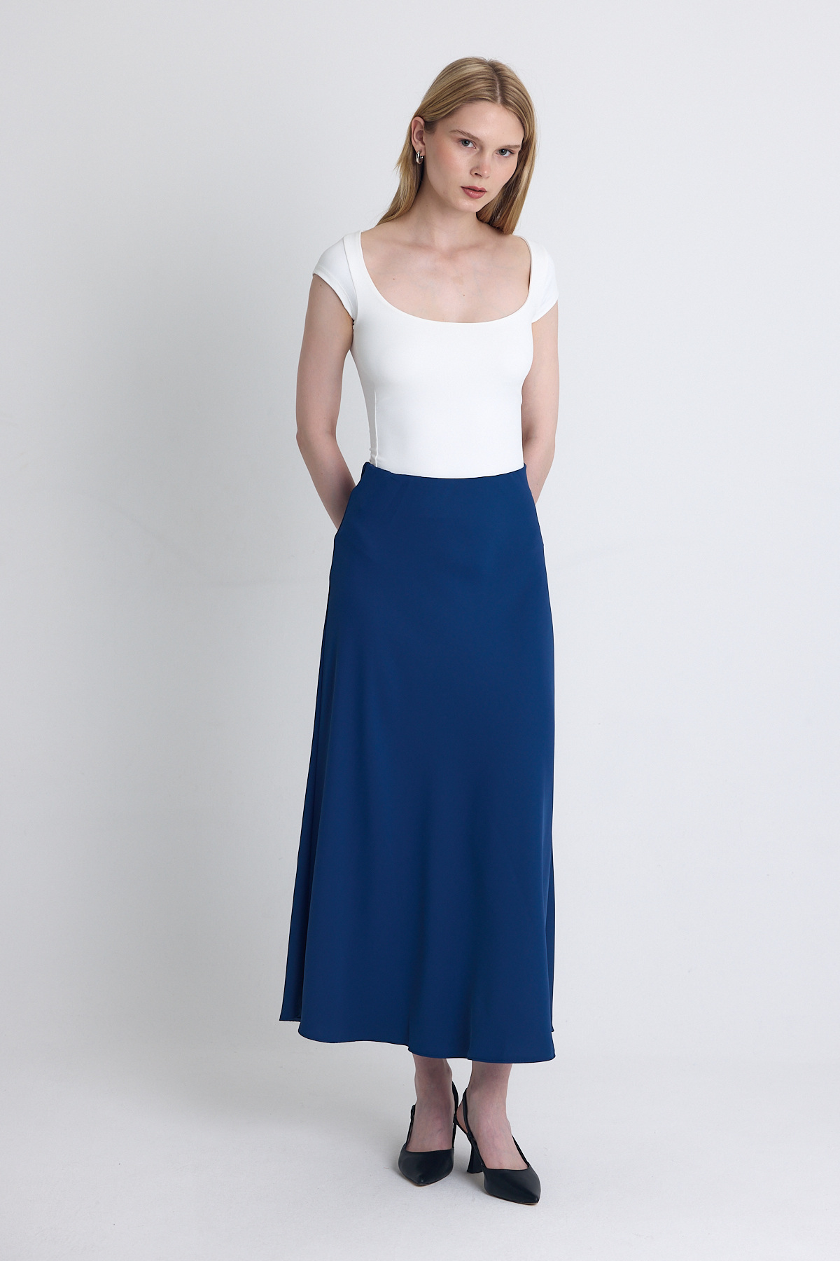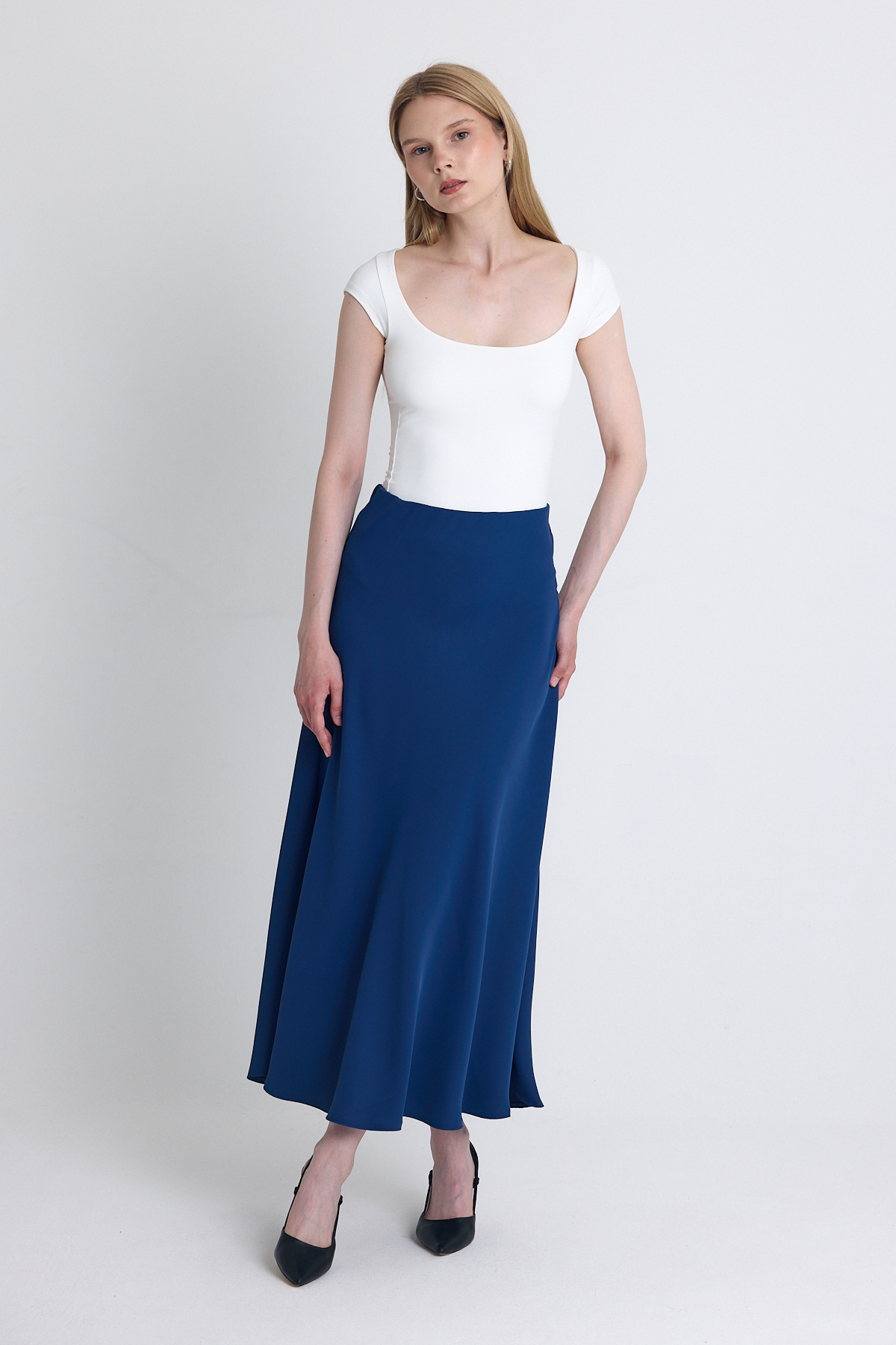 İndigo Yüksek Bel Midi A Kesim Etek 241312