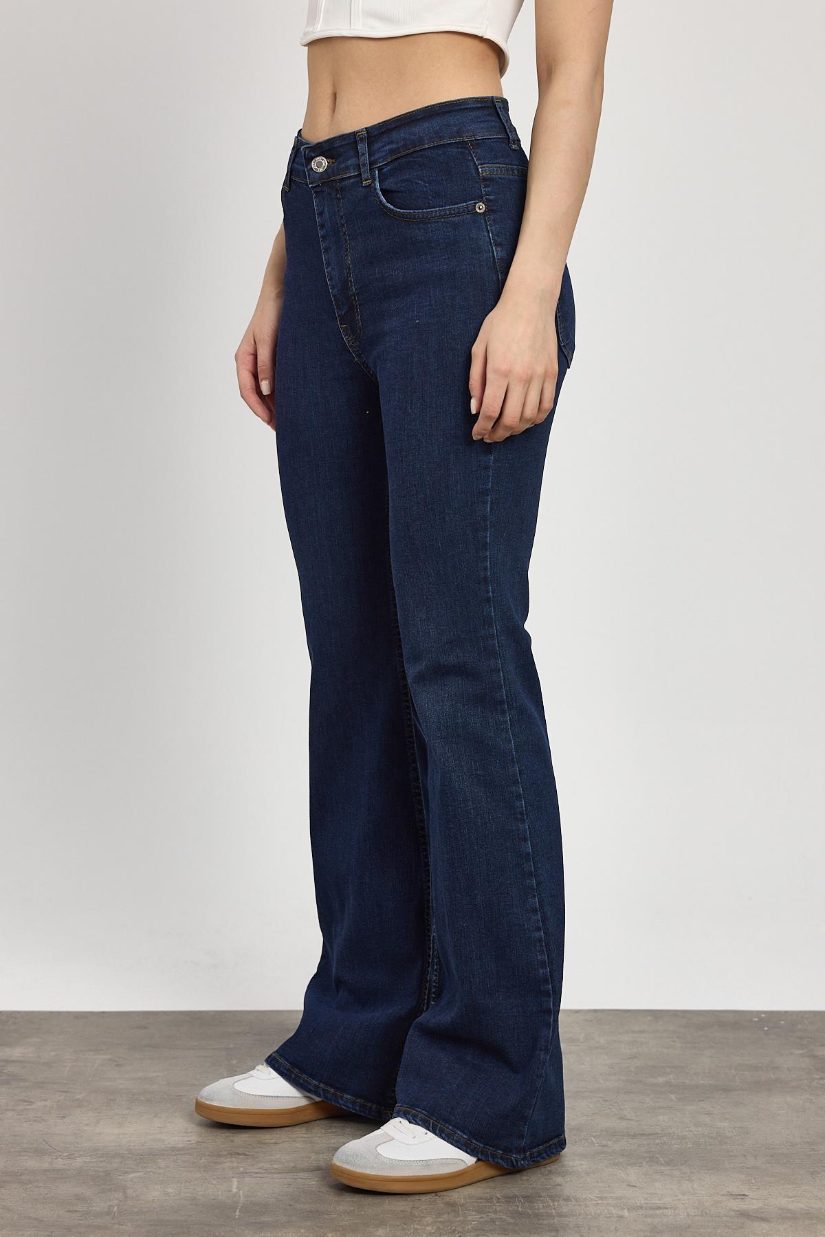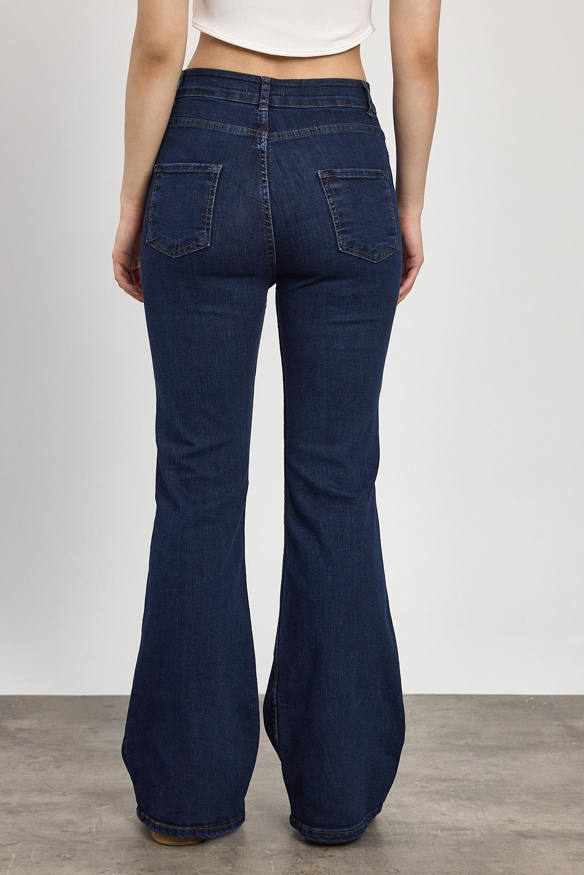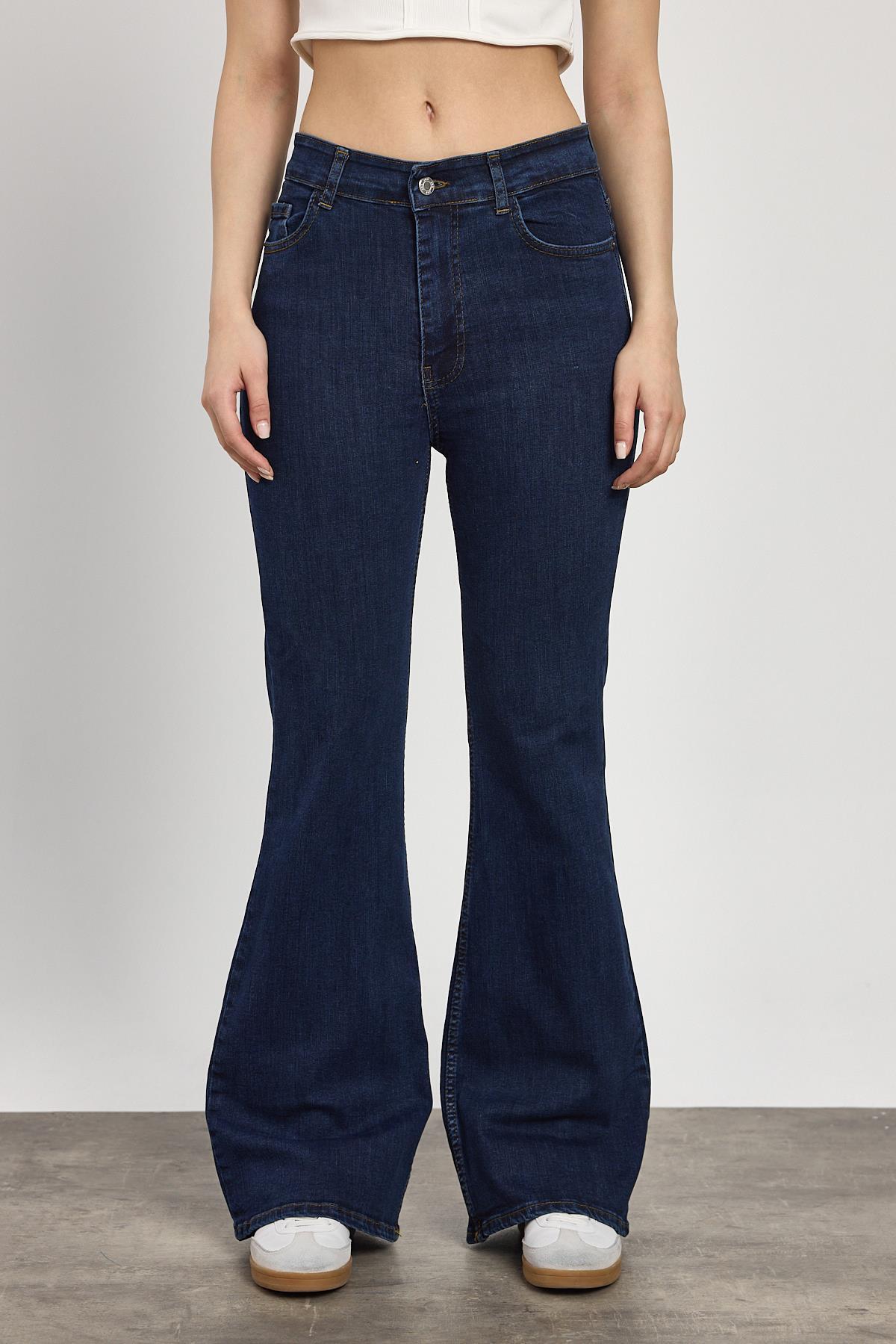Koyu Mavi Yüksek Bel Flare Kesim Kadın Jean Pantolon 12036