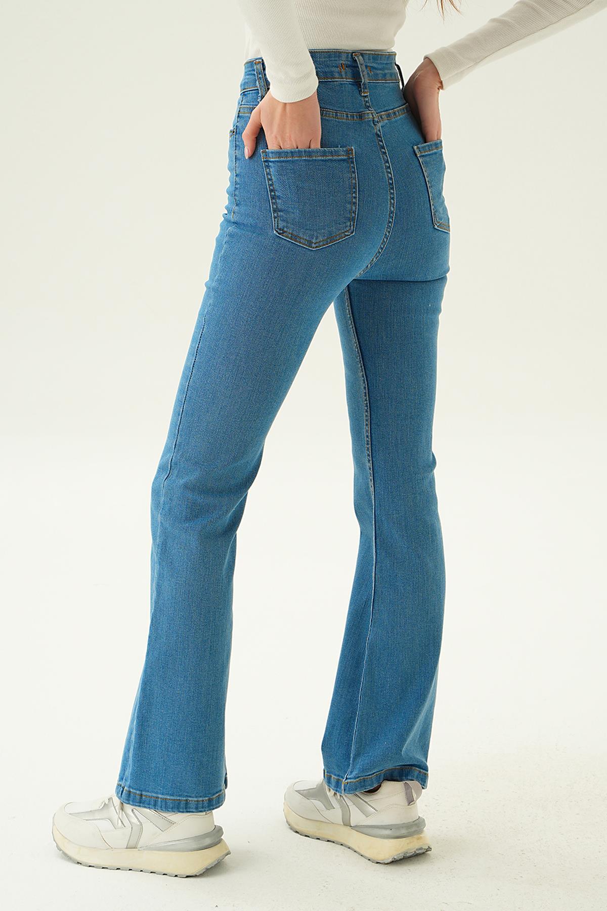 1064 İspanyol Paça Jean Ara Mavi