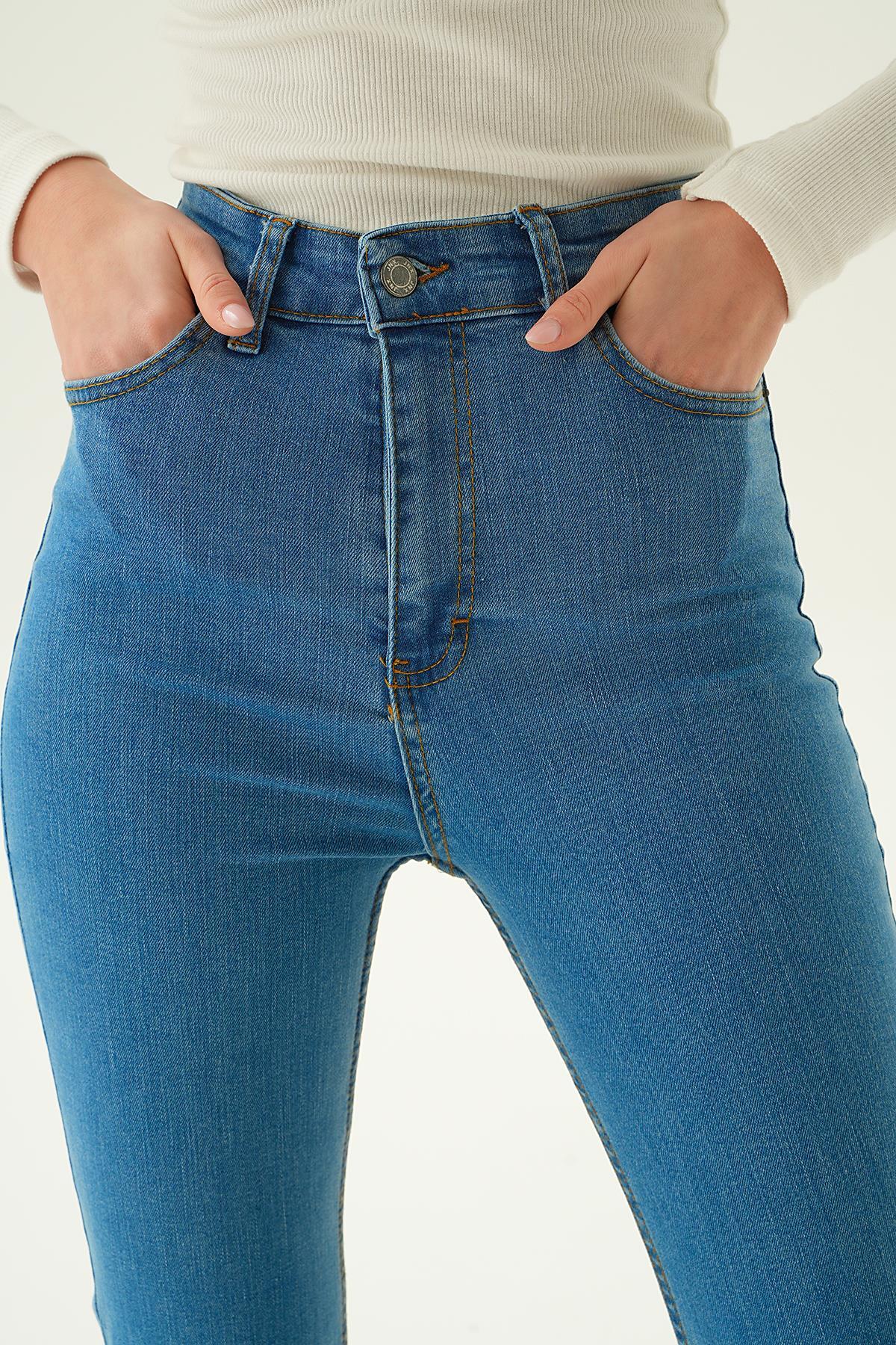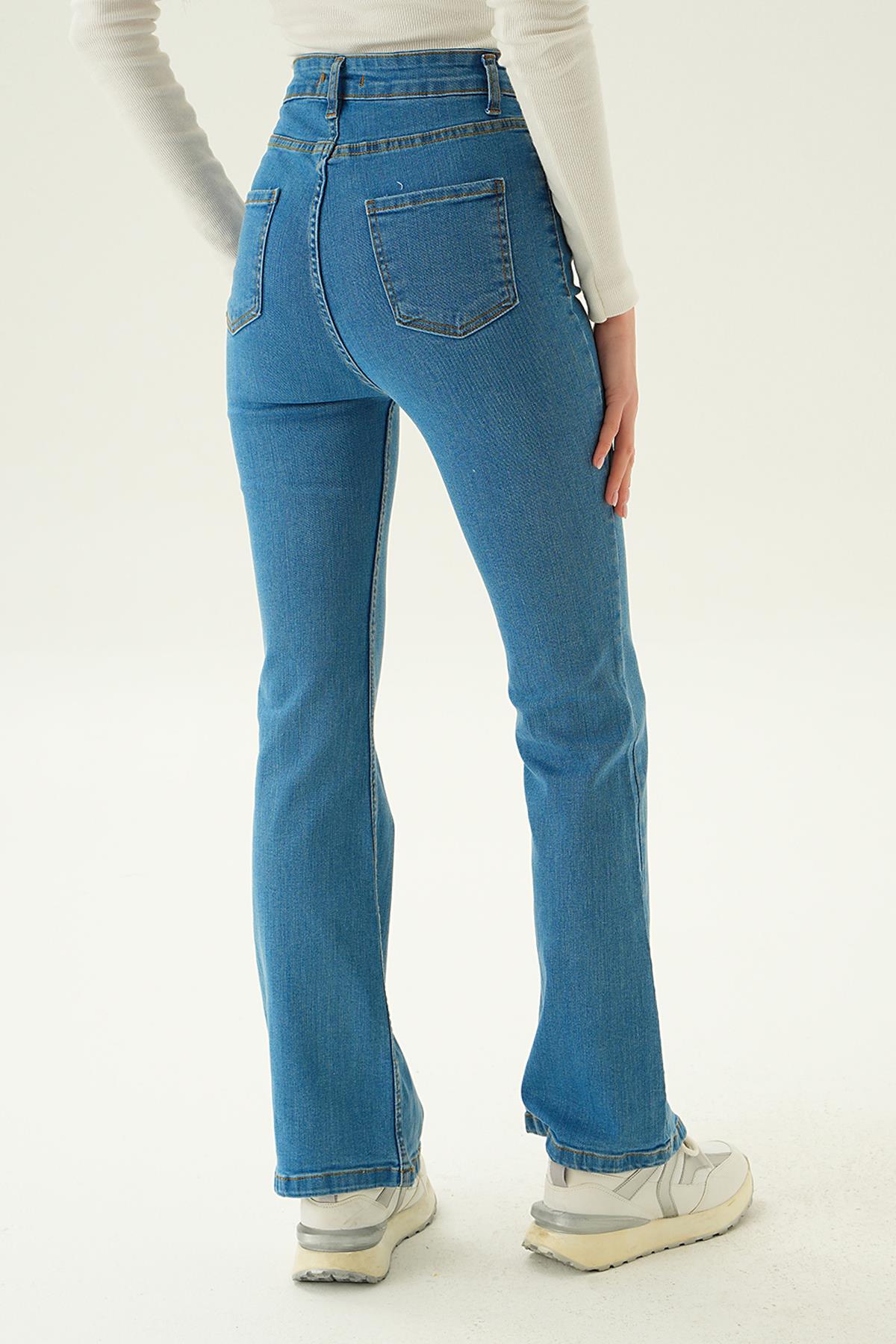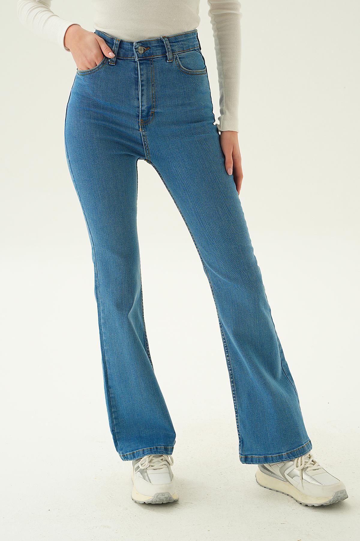 Mavi Yüksek Bel Flare Kesim Kadın Jean Pantolon 12036